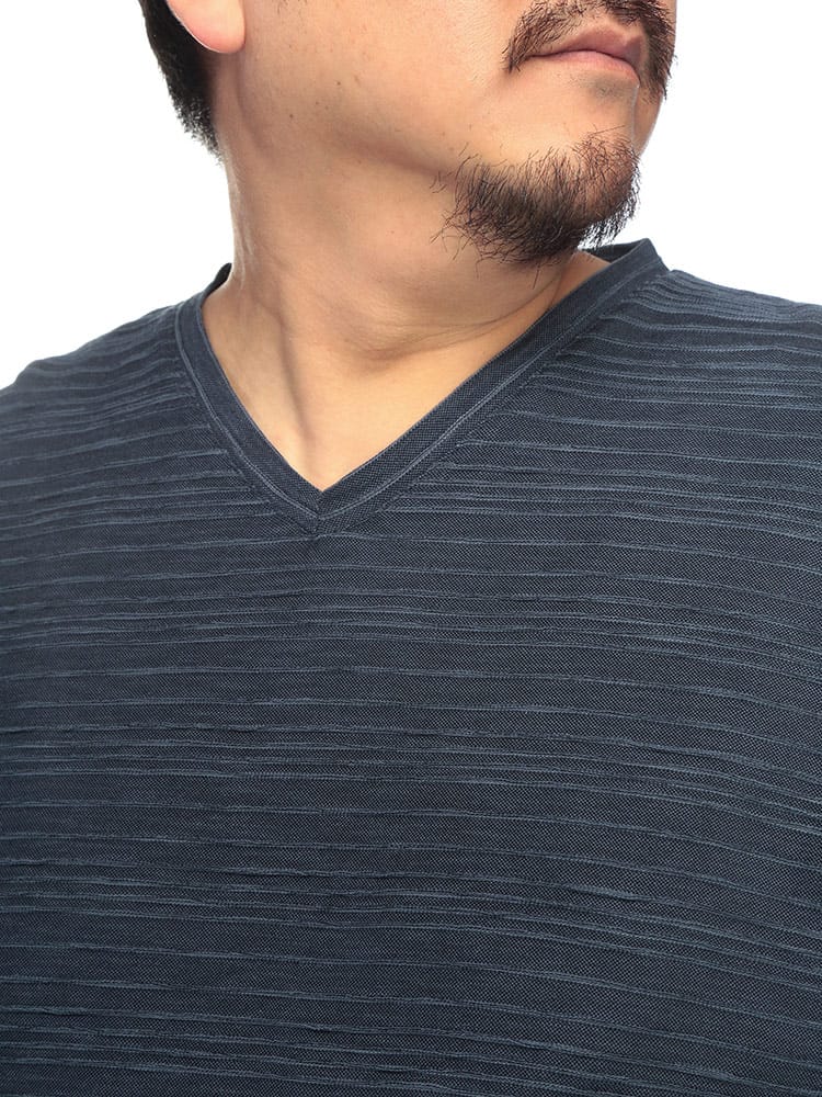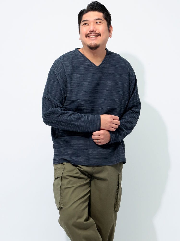 立体感のあるタックジャガード素材が特徴的なVネックTシャツです。