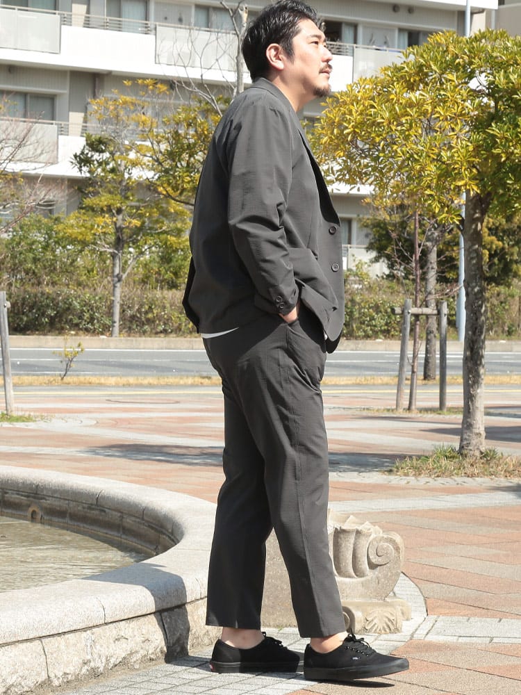 【X1着用】身長:188cm / B:112 / W:95 / H:110 / S:29.0cm 【X2着用】身長:178cm / B:128 / W:110 / H:125 / S:30.0 着用サイズ:ダークグレーX2/ネイビーX1