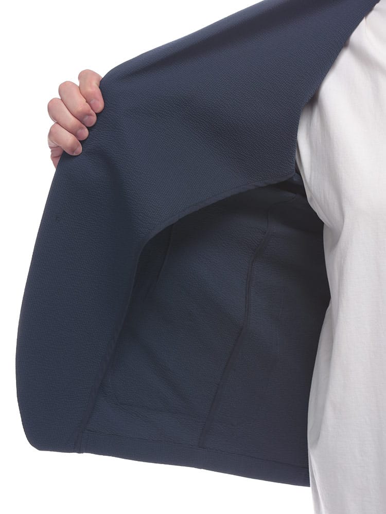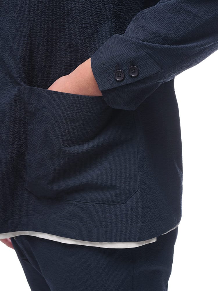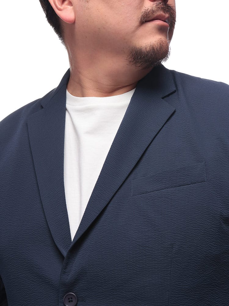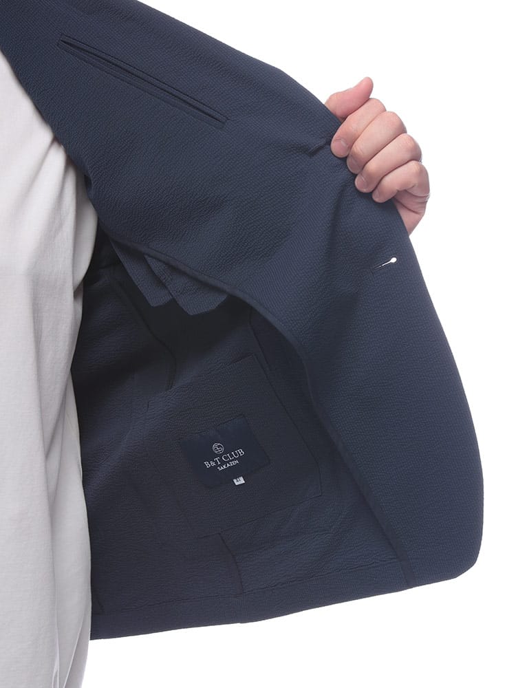 通気性の良いサーパスウェーブ素材を使用した、軽くて快適な着心地のシンプルなシングルジャケットです。