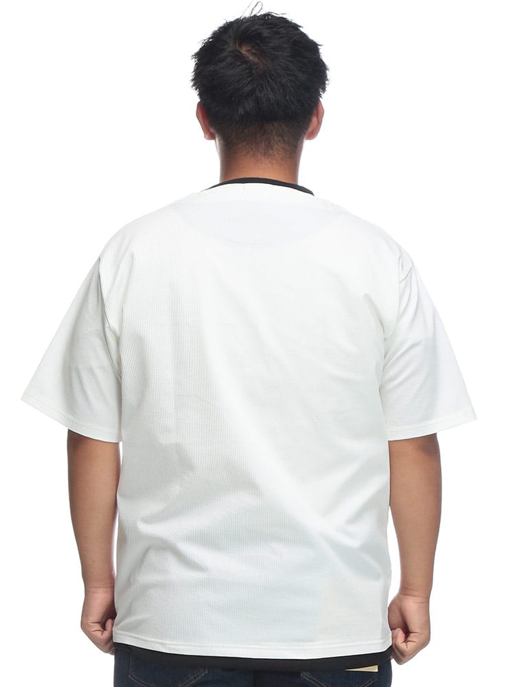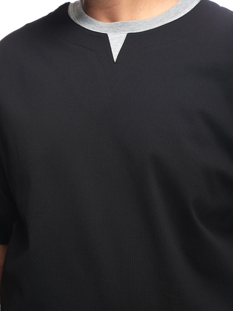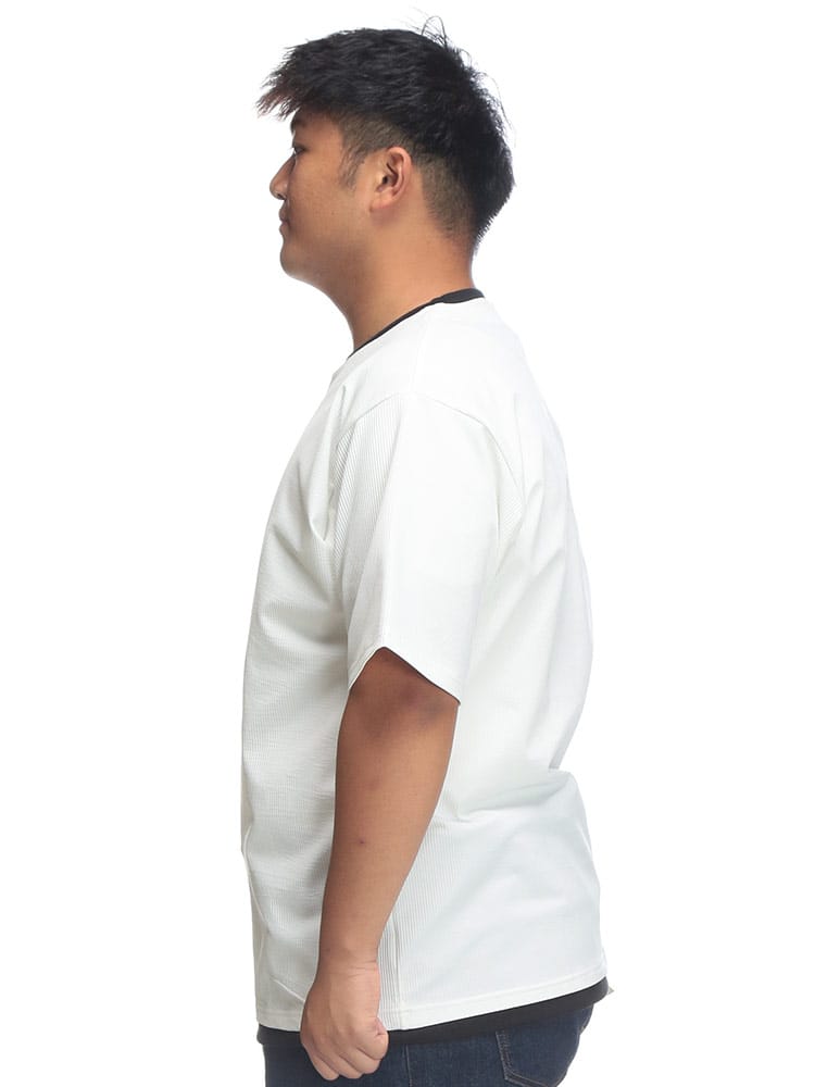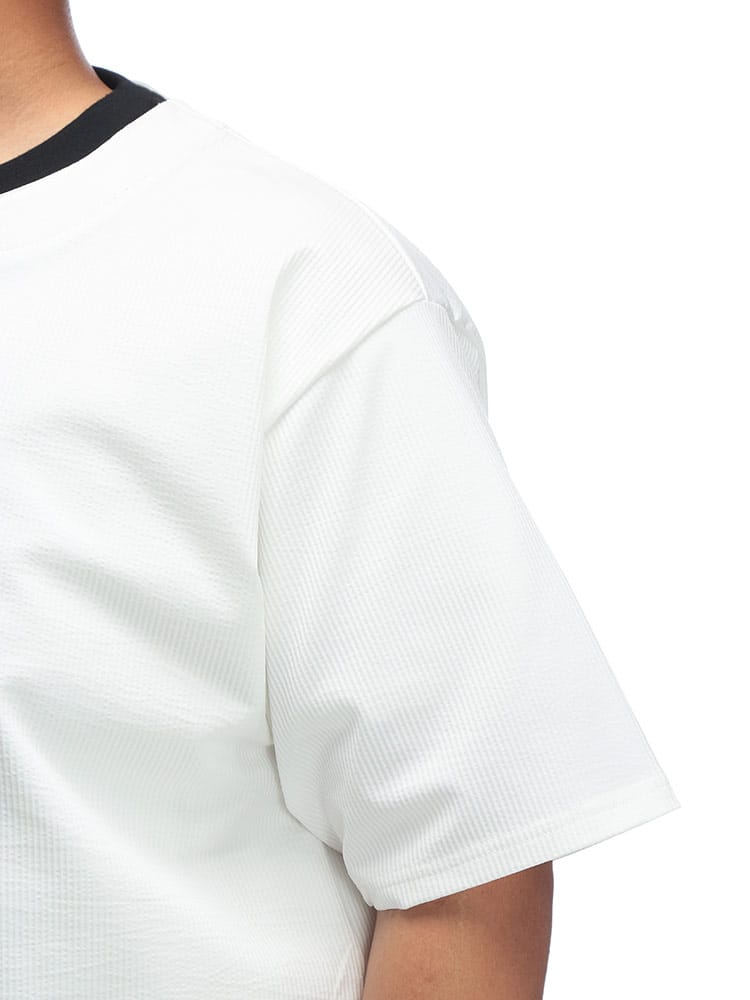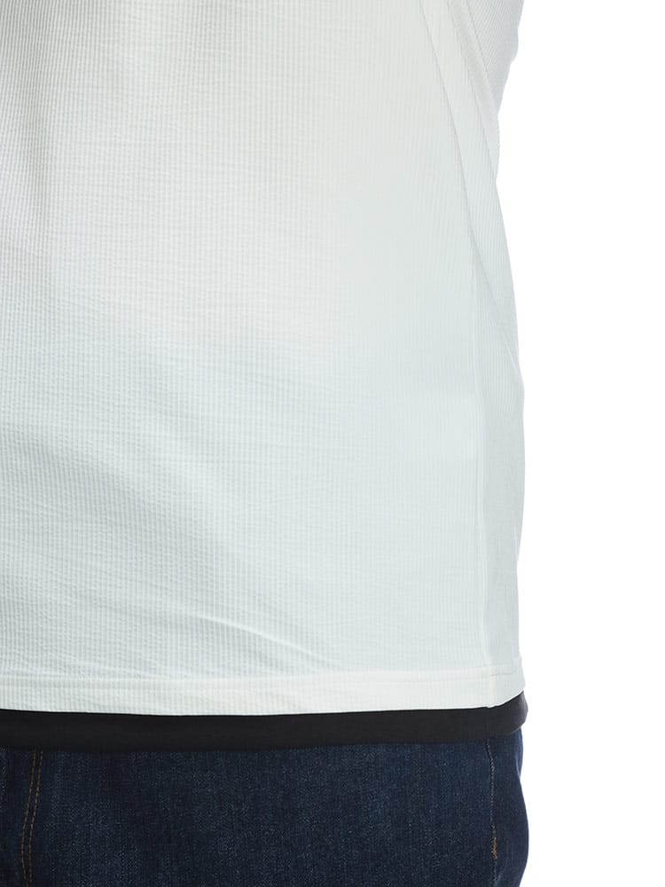 B&T CLUBのカットサッカー フェイクレイヤード キーネック半袖Tシャツは、清涼感とこなれ感を両立するアイテムです。サッカー生地特有の凹凸が肌への接点を減らし、さらりとした快適な着心地を提供。キーネックのデザインが首元に抜け感を演出し、フェイクレイヤード仕様で一枚でもおしゃれに決まります。カジュアルながらも上品な印象で、普段使いはもちろん、ちょっとしたお出かけにも最適。夏の着こなしを軽快かつスタイリッシュにアップデートしてくれる一着です。