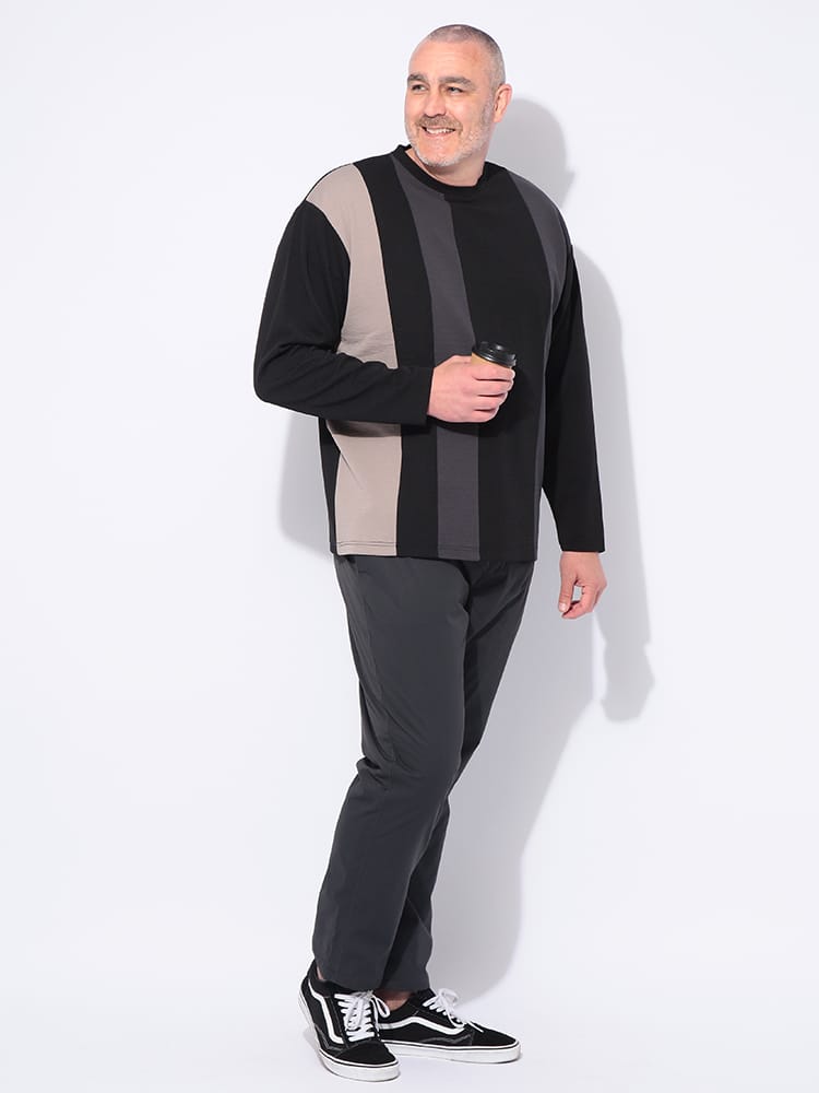 B&T CLUB ストレッチ 裏シャギー ロングパンツは、寒い季節に手放せない暖かさと快適さを兼ね備えた一本です。肌触り抜群の裏シャギー素材が、まるで毛布に包まれているような暖かさを実現。さらに、ストレッチが効いているので、どんな動きも妨げず、ストレスフリーな穿き心地が続きます。