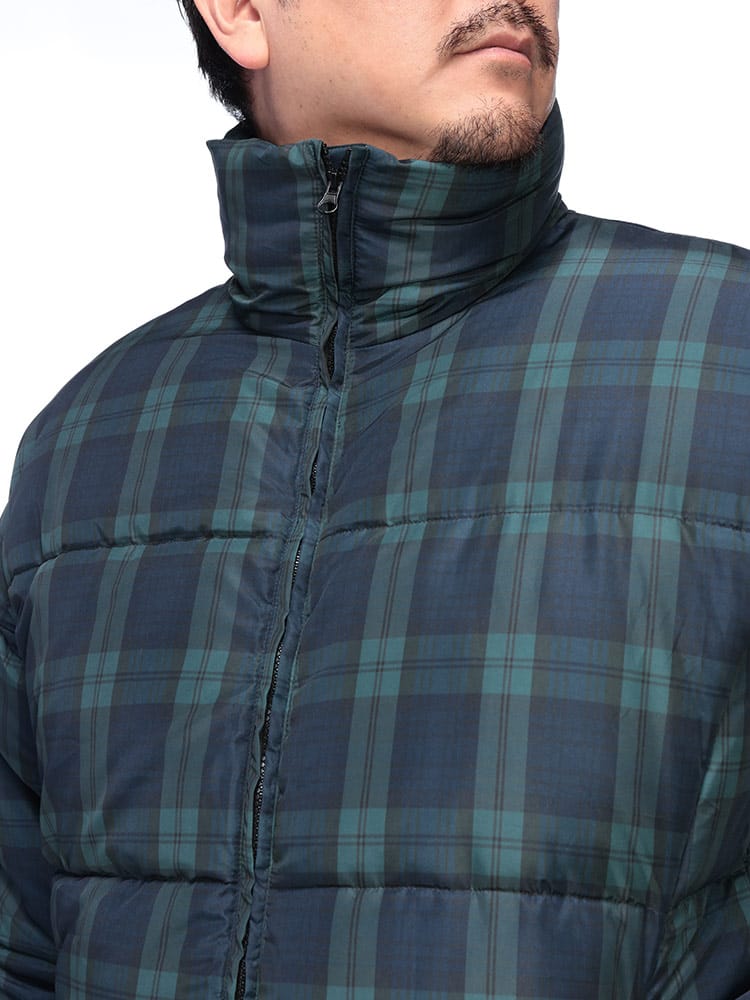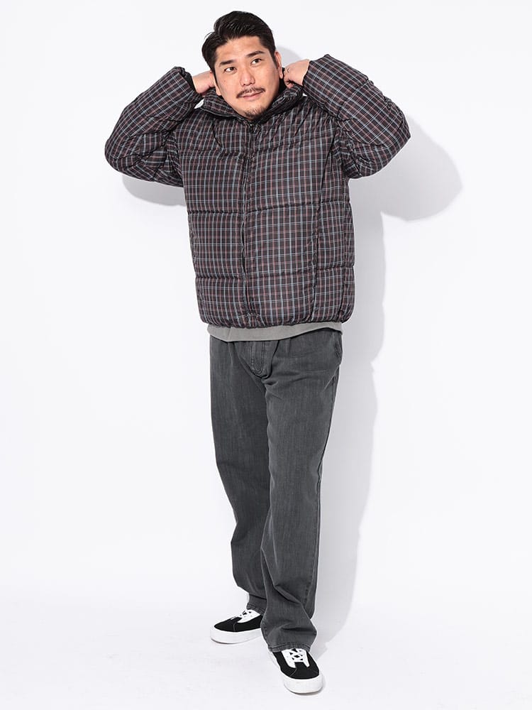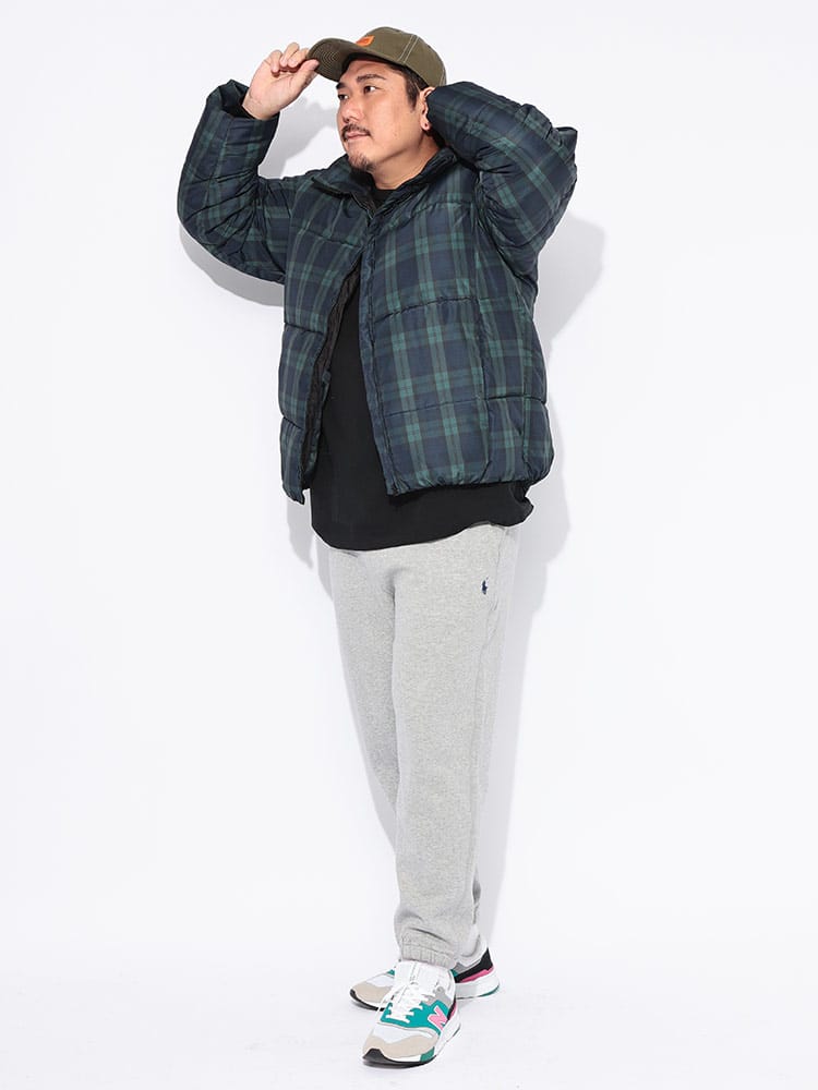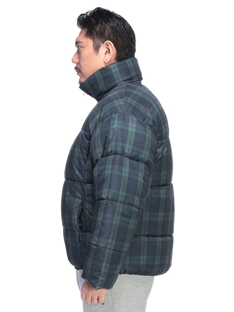 B&T CLUBのプリントチェック フルジップ 中綿 ボリューム ブルゾンは、目を引くチェック柄とふっくらとした中綿で、着るだけで暖かくトレンド感のあるスタイルが完成します。フルジップで着脱しやすく、冬のカジュアルな着こなしの主役として活躍。大きいサイズ展開も魅力です。