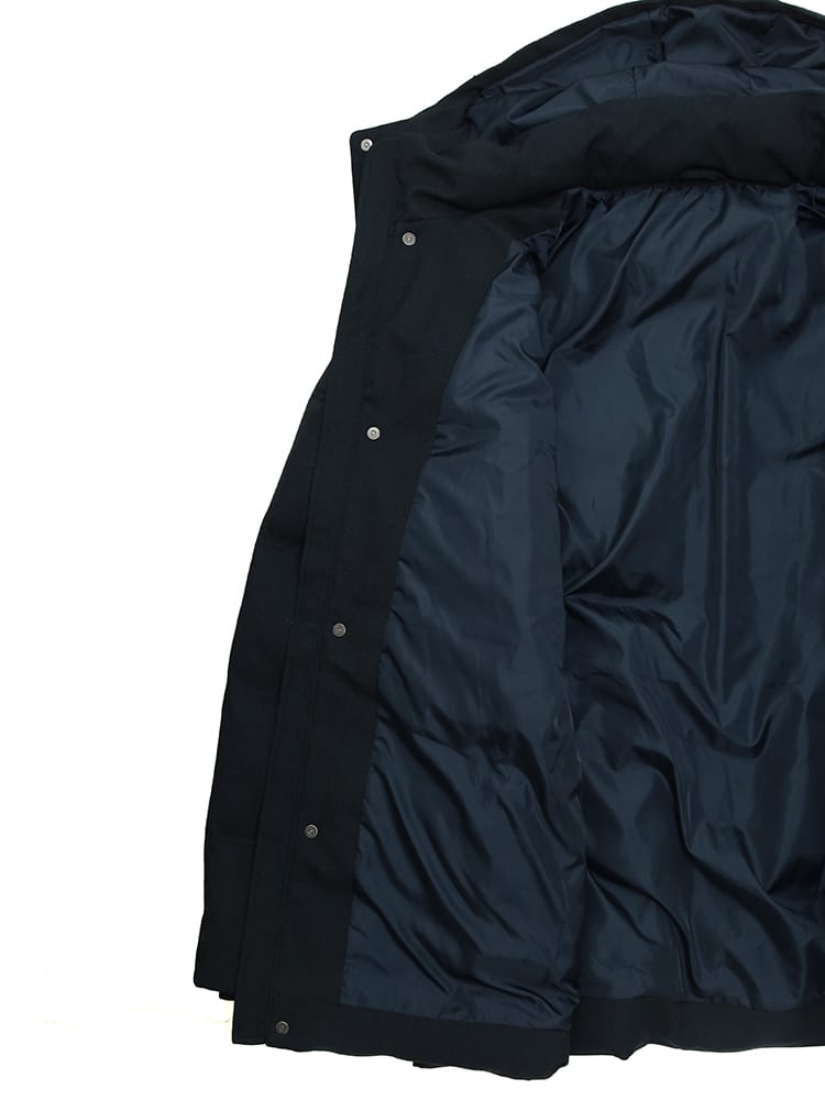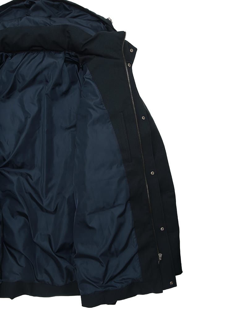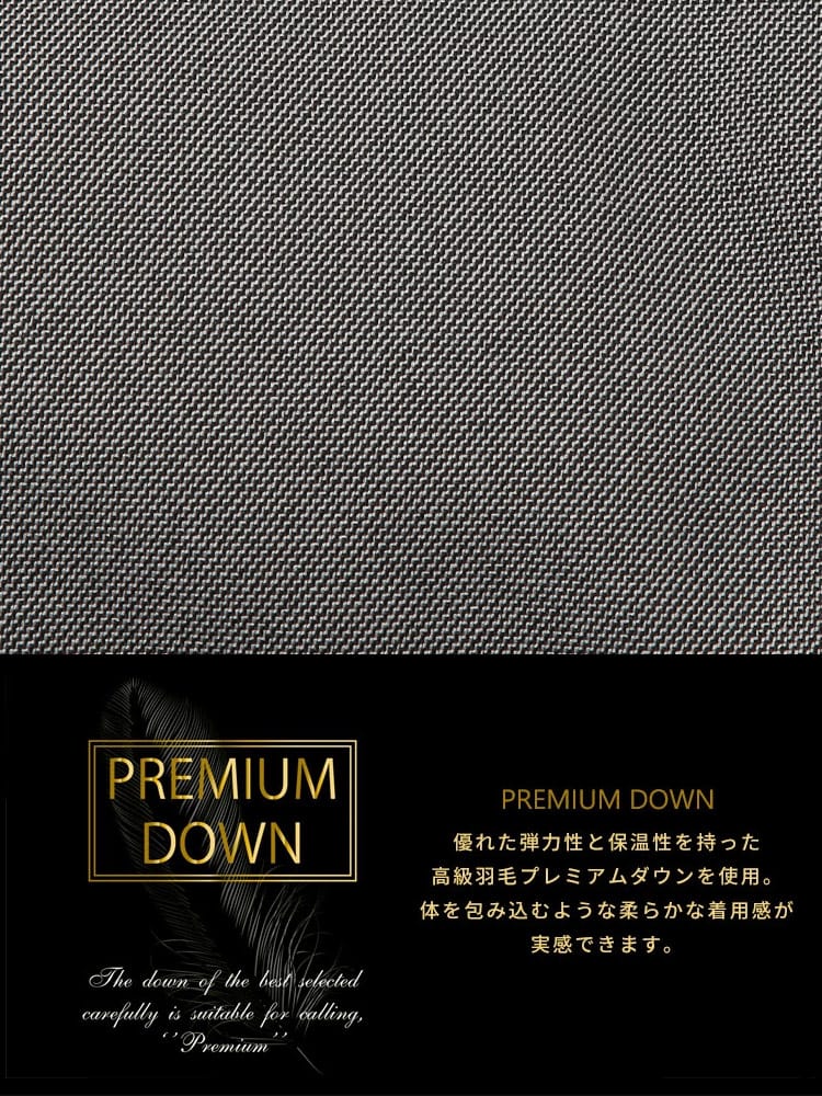 素材 :[表地]ポリエステル100%(裏側 ポリウレタン樹脂コーティング加工) [中綿]ダウン80% フェザー20% [裏地]ポリエステル100%