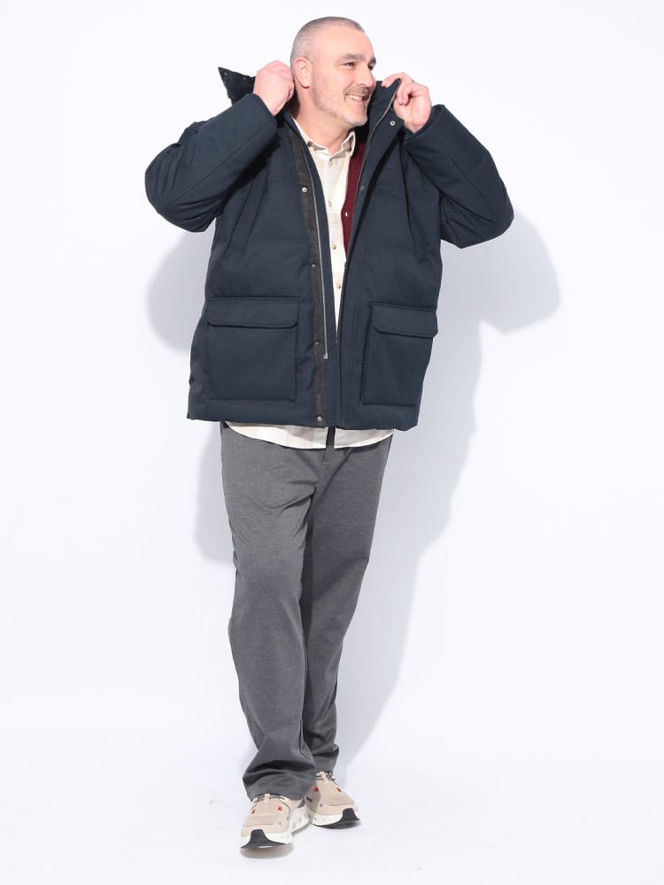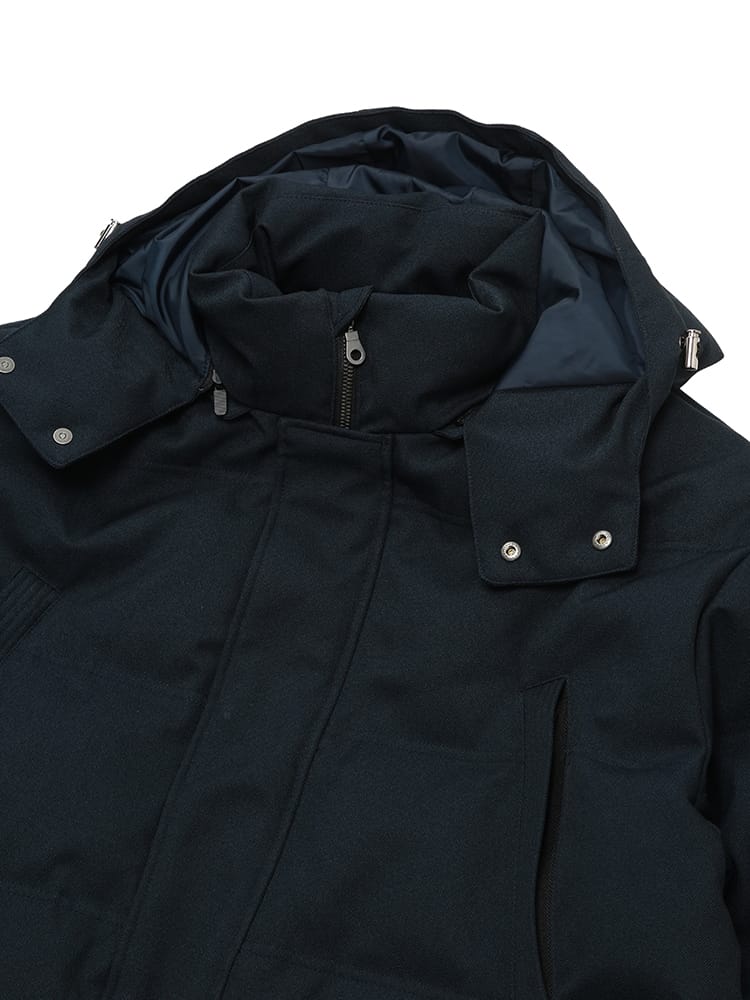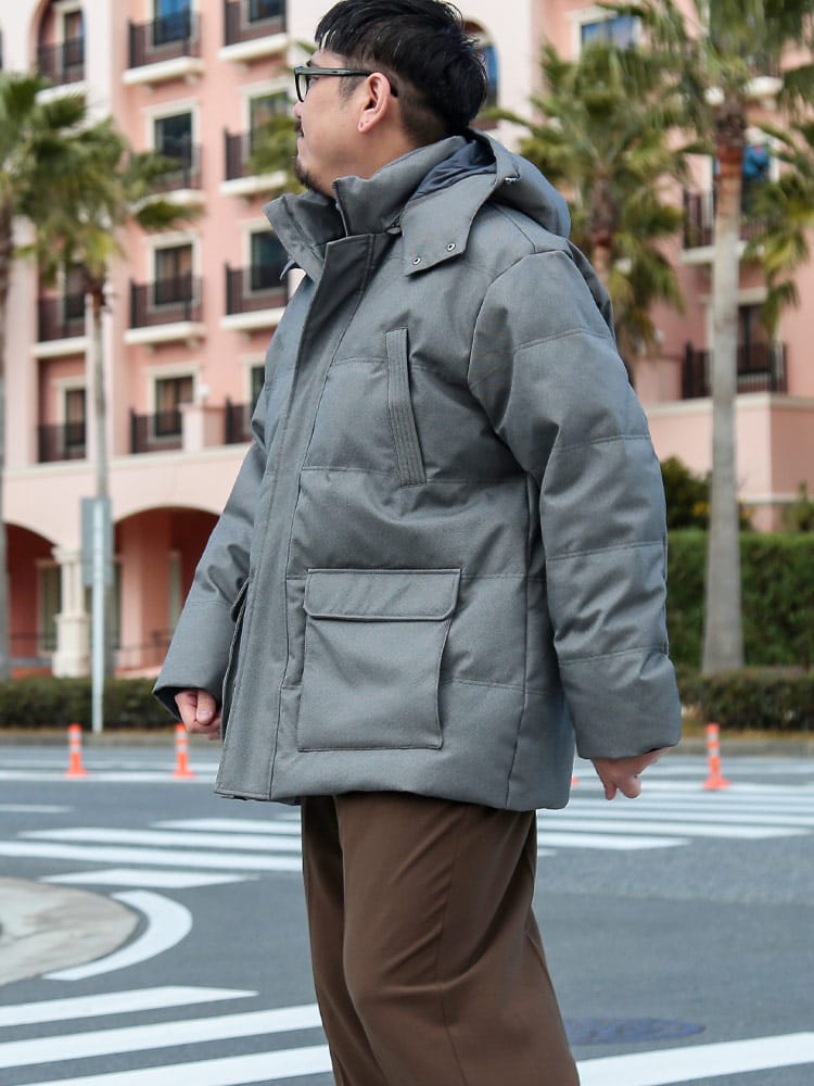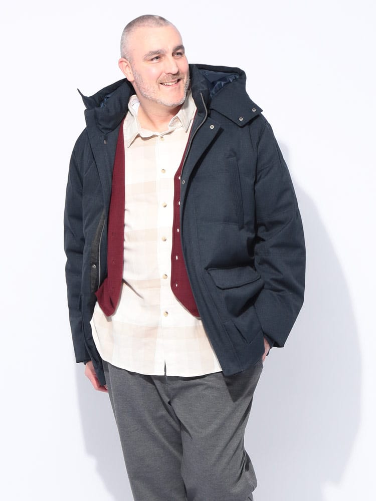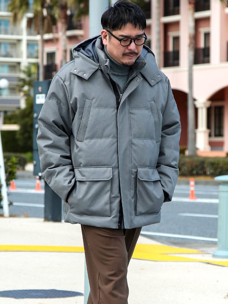 上品なシャークスキン柄が洗練された印象を与える、B&T CLUBのダウンジャケット。フードは着脱可能なため、ビジネスシーンではすっきりと、オフの日にはカジュアルにと、幅広いスタイルに対応します。ダウン80%・フェザー20%の中綿が、優れた保温性を発揮しながらも驚くほどの軽さを実現。また、耐久性と耐水性を備えているため、急な天候の変化にも安心して対応できます。合計7つのポケットを装備しており、収納力も抜群。機能性とデザイン性を両立させた、この冬の主力アウターとなる一着です。