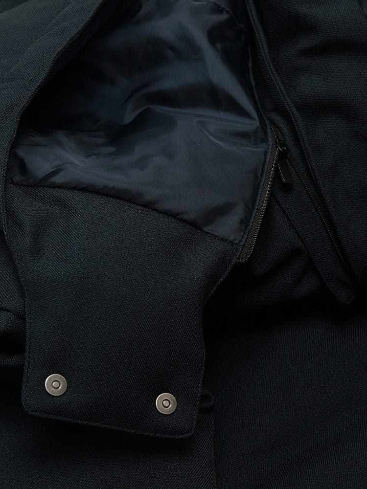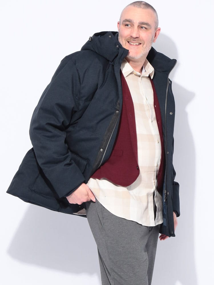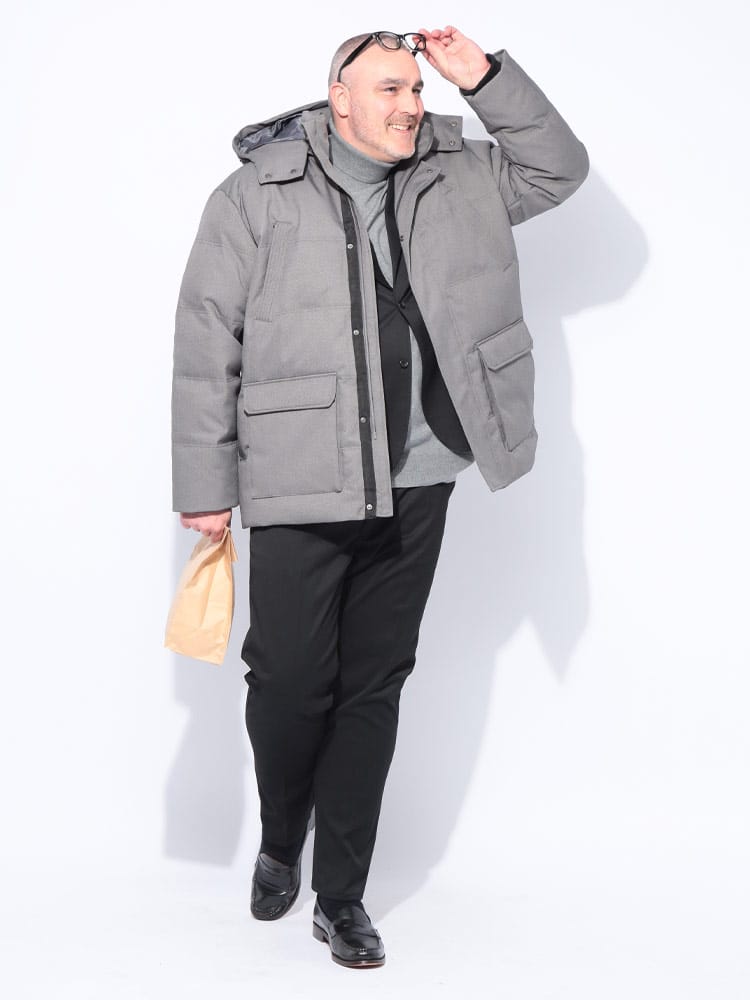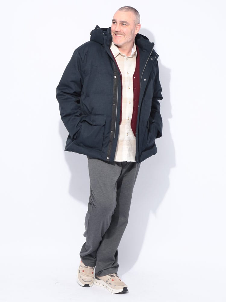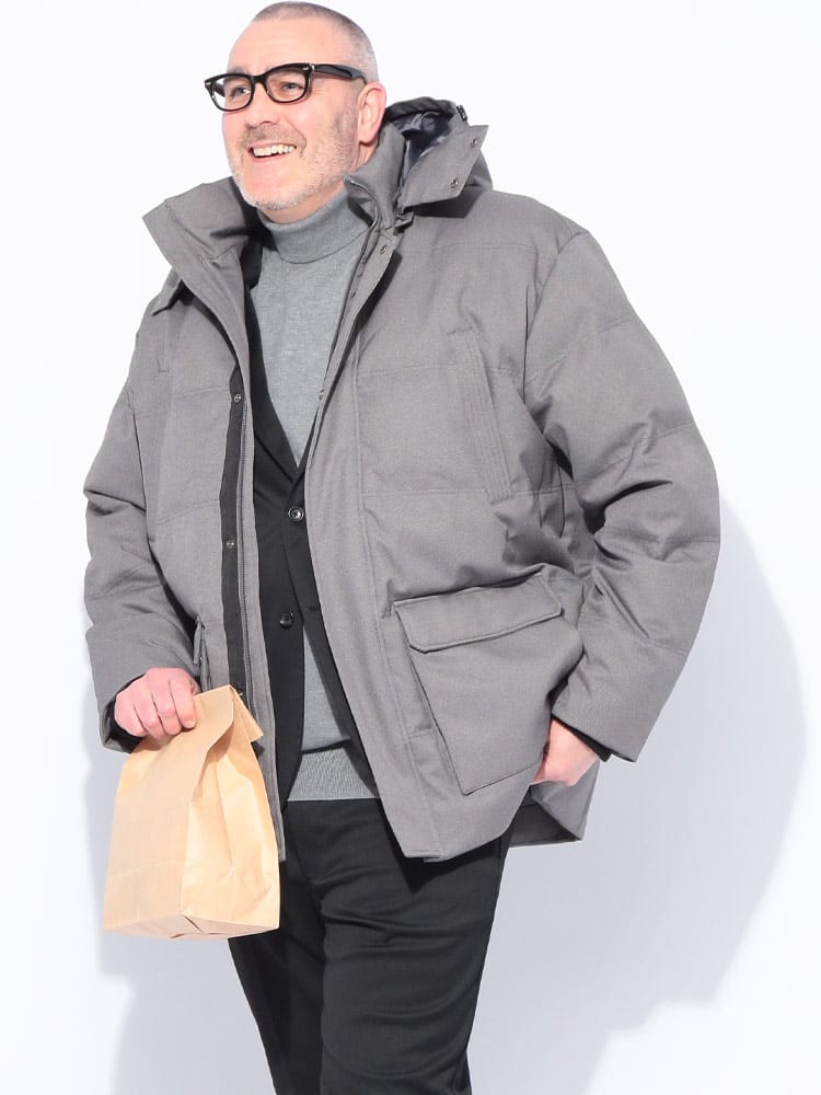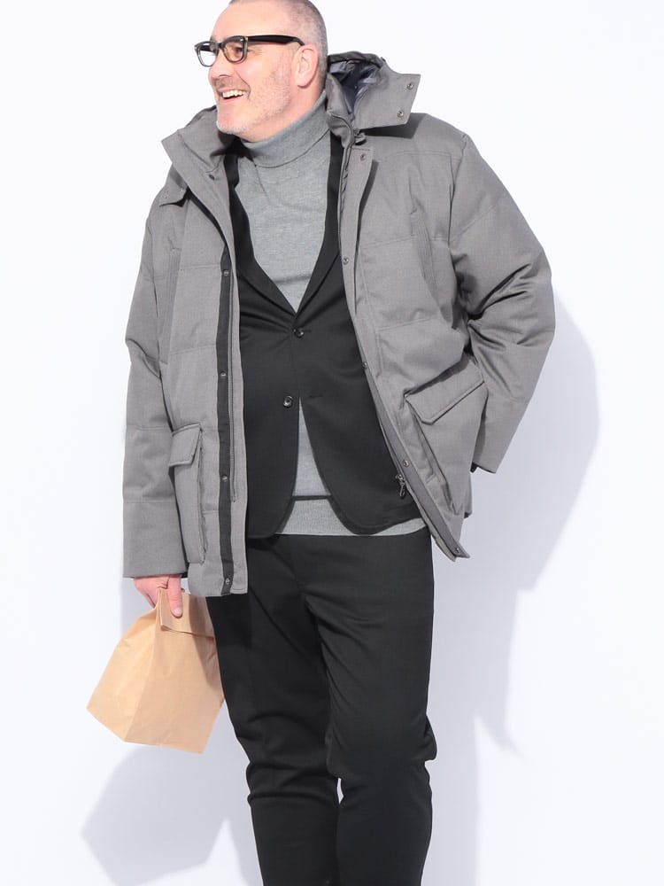 上品なシャークスキン柄が洗練された印象を与える、B&T CLUBのダウンジャケット。フードは着脱可能なため、ビジネスシーンではすっきりと、オフの日にはカジュアルにと、幅広いスタイルに対応します。ダウン80%・フェザー20%の中綿が、優れた保温性を発揮しながらも驚くほどの軽さを実現。また、耐久性と耐水性を備えているため、急な天候の変化にも安心して対応できます。合計7つのポケットを装備しており、収納力も抜群。機能性とデザイン性を両立させた、この冬の主力アウターとなる一着です。