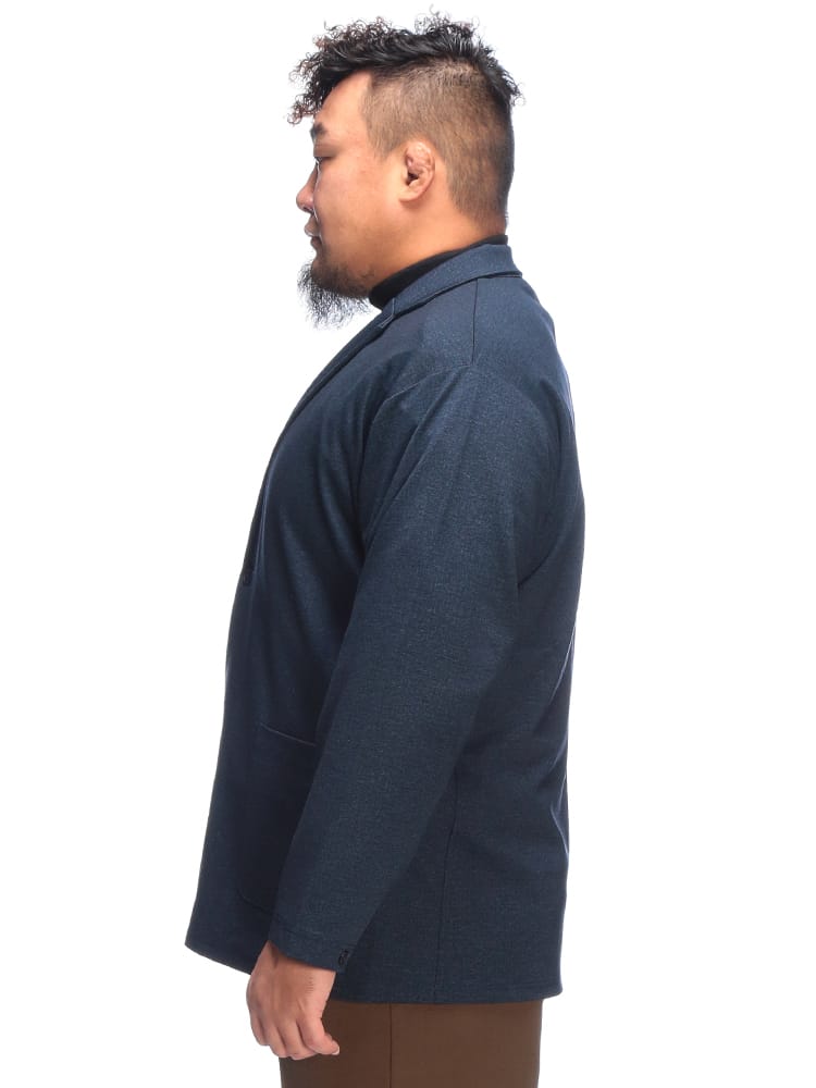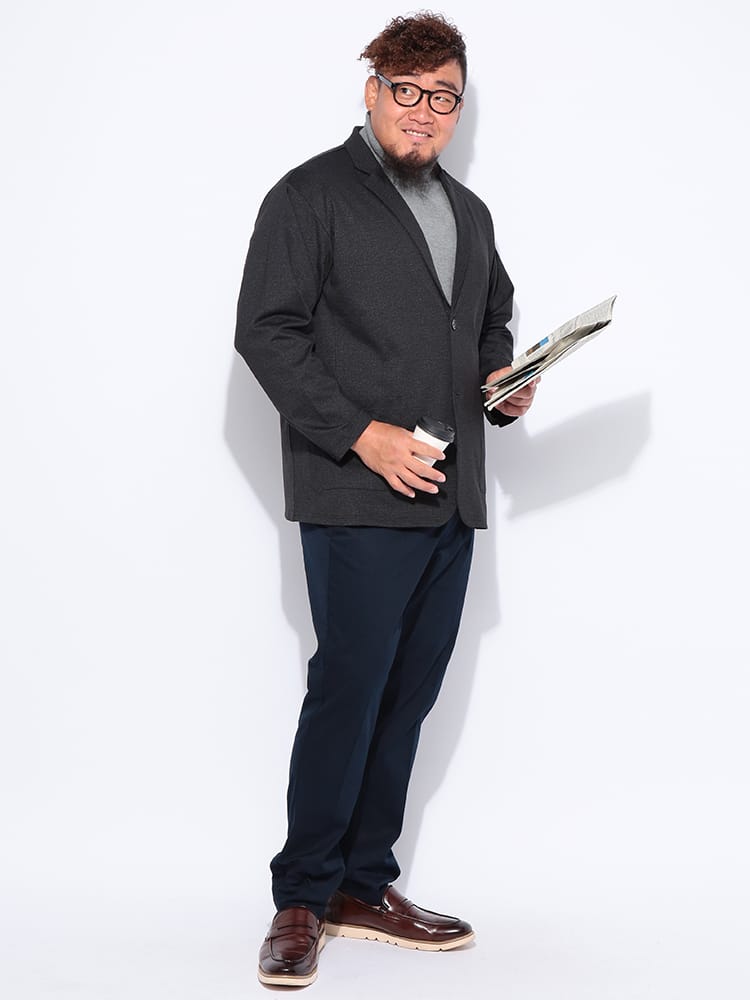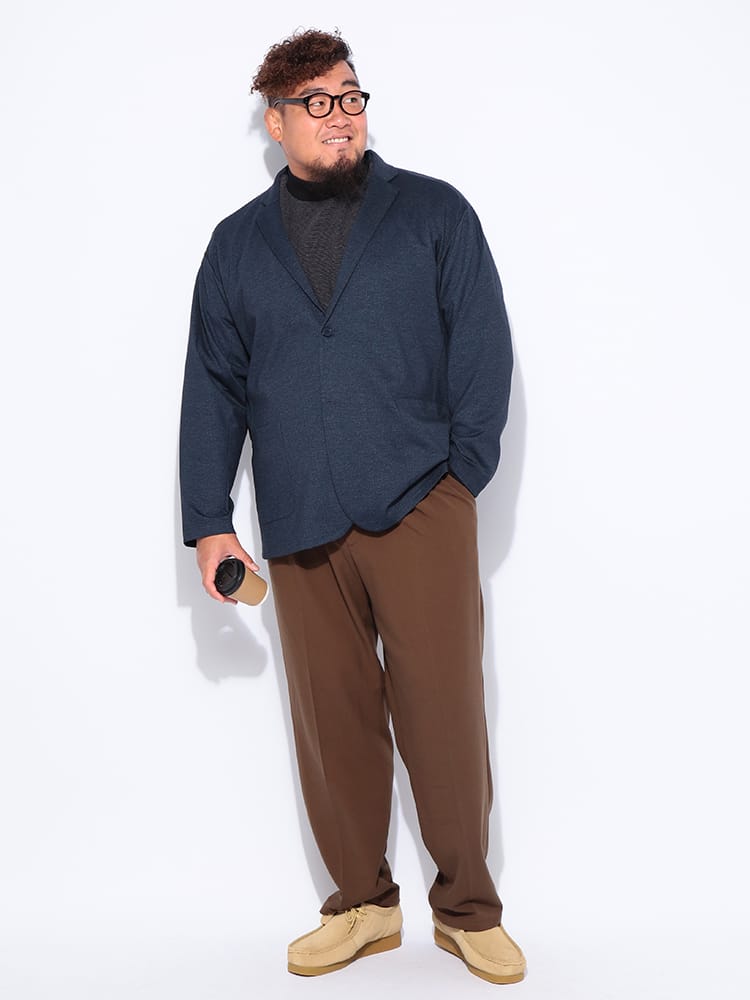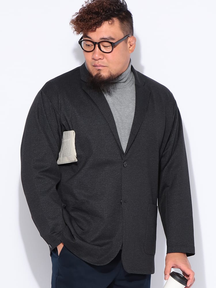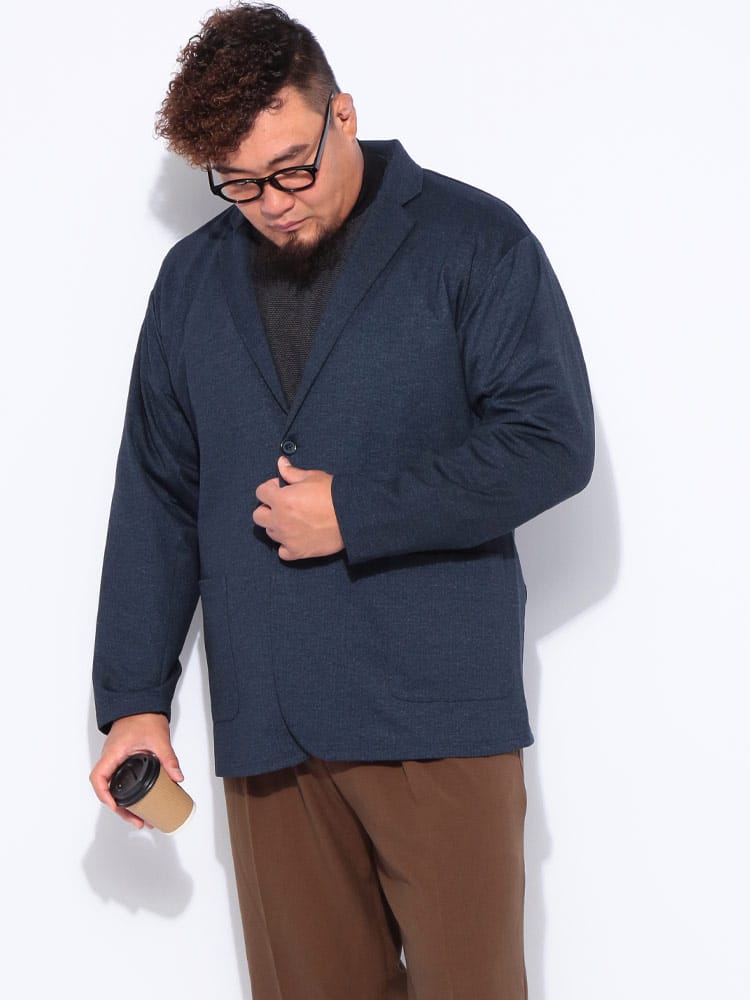 「楽」と「きちんと感」を両立させた大人のための新定番。一見するとデニムのような風合いながら、素材はレーヨン・ナイロンなどをブレンドしたポンチ素材。驚くほどのストレッチ性と、まるでカーディガンを着ているかのような軽快な着心地が魅力です。大きめサイズでも身体に心地よくフィットし、長時間の着用もストレスフリー。外側ポケットは2つ。Tシャツの上に羽織るだけで、リラックススタイルを上品なビジカジスタイルへと昇華させる、まさに「快ラクWEAR」です。