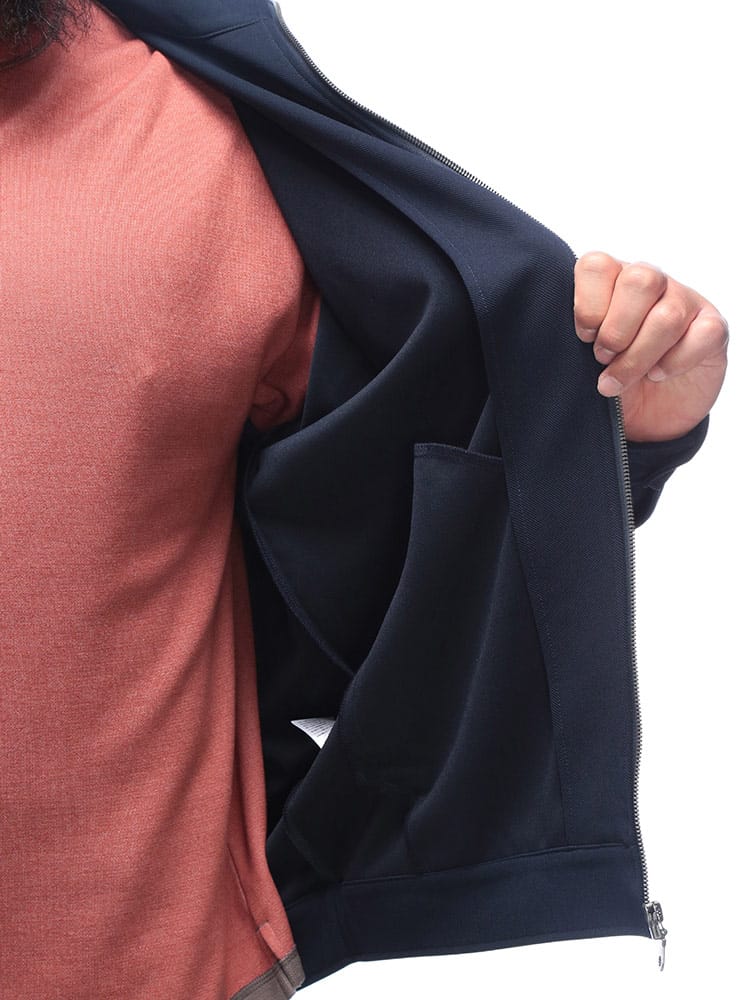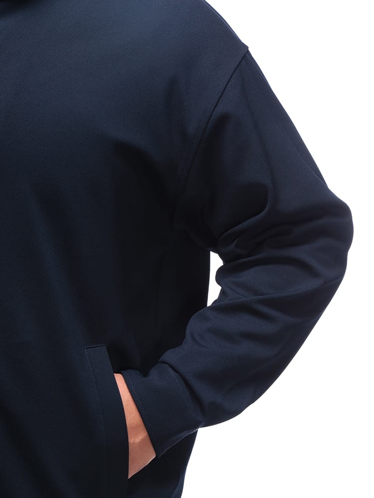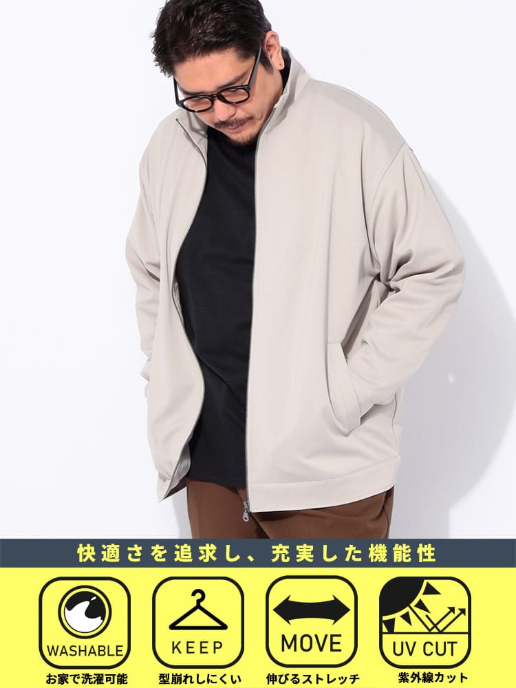 「きちんと感」とジャージの「快適さ」を見事に融合させた「快ラクWEAR」の傑作です。ジャージツイル素材を採用し、驚異的なストレッチ性(ポリウレタン3%)を実現。タイトすぎず、ゆとりを持たせた大きいサイズの設計ながら、型崩れしにくく、いつでもスマートな印象をキープします。さらに、ウォッシャブル仕様でお手入れ簡単、紫外線カット機能も搭載。シングルジップと袖口ボタンで調整も自在です。テレワークからアクティブな休日まで、毎日ヘビーユースできる多機能アウターです。