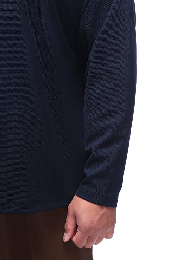 スポーツウェアの快適さと、きれいめな表情を融合! B&T CLUBが贈る、大人のための新定番ロンTです。素材には、しなやかな肌触りと美しい光沢が特徴のジャージツイル生地を採用。ポリエステルにポリウレタンを混紡することで、驚きのストレッチ性を実現し、あなたの動きにストレスなくフィットします。特徴的なクロスネックデザインと、調整可能なドローコードが、シンプルながらも洗練されたアクセントに。さらに紫外線カット、ウォッシャブル、型崩れしにくいという多機能性で、お手入れのしやすさも抜群。