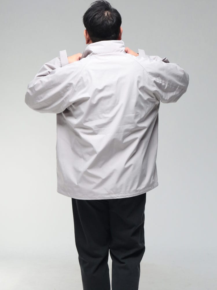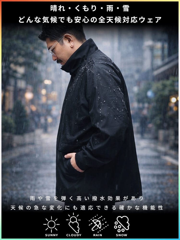 機能性と洗練されたデザインが融合した、B&T CLUBの「EVOL-TEX」スタンドカラーブルゾン。最大の特徴は、撥水・防風・防花粉・UVカットを網羅した圧倒的なマルチスペックです。裏面に施されたポリウレタンコーティングが風を防ぎ、急な雨や花粉の付着もシャットアウト。抜群のストレッチ性により、大きいサイズながらも軽快な動きをサポートします。スッキリとしたスタンドカラーは首元に品を与え、スポーツから休日のお出かけまで万能に活躍。内ポケットを含む3つのポケットを完備し、実用性も追求しました。春や秋の変わりやすい天候下で、一着あれば間違いのない、大人のアクティブライフを支えるハイスペックアウターです。