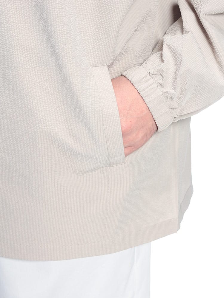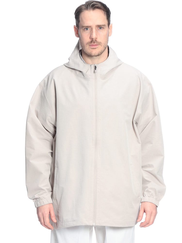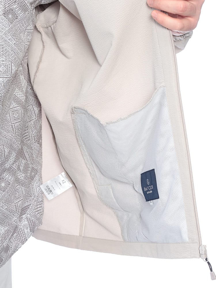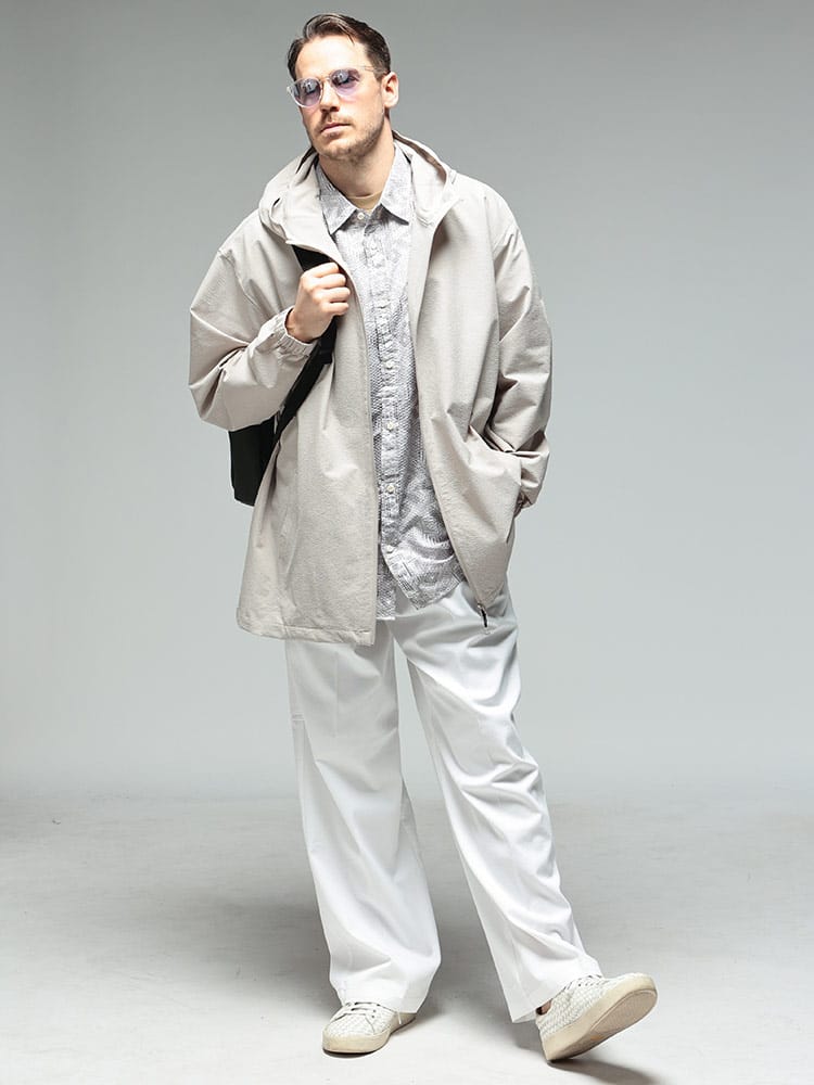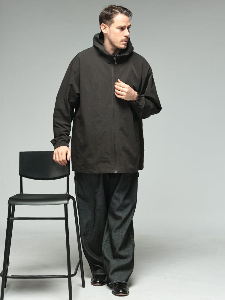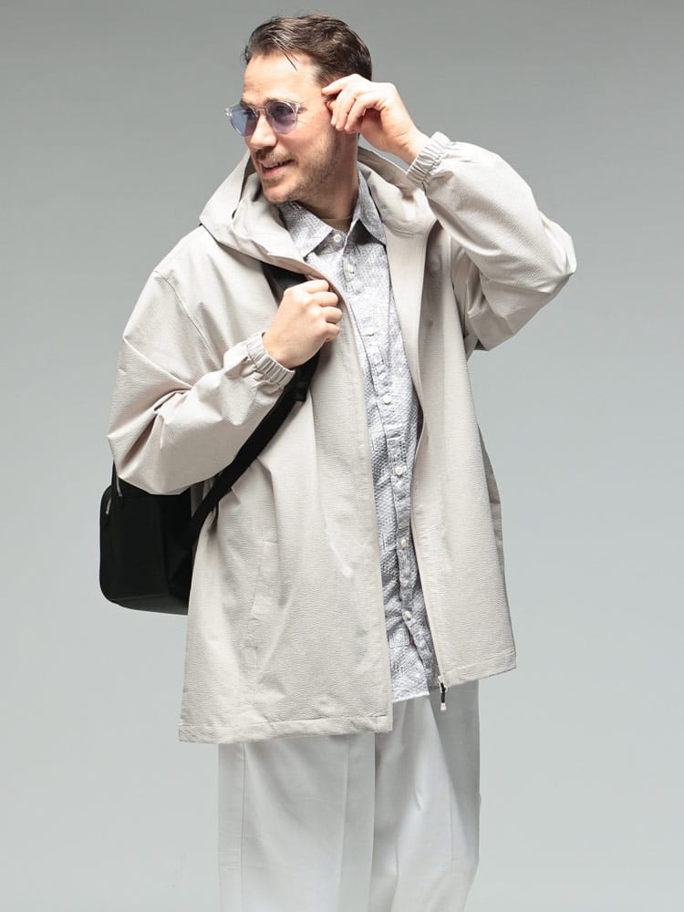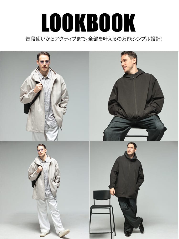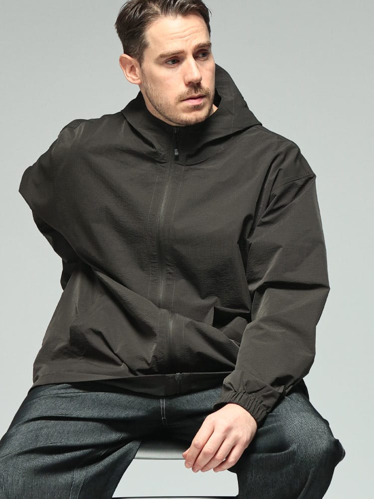 B&T CLUBの「サーパスウェーブ ブルゾン」は、大柄な男性の日常をより快適にする、機能美に優れた一着です。最大の特徴は、波打つような凹凸感が肌離れを良くするサーパスウェーブ生地。ポリエステル100%の軽量素材に、ストレッチ、ドライ、抗菌防臭といった夏場やアクティブなシーンに嬉しい機能が凝縮されています。さらにUV対策も備わっており、春先の強い日差しからも肌を守ります。フルジップ仕様のパーカーデザインは着回しやすく、羽織るだけでスタイルが完成。軽やかでシワになりにくいため、外出時の携帯にも便利です。