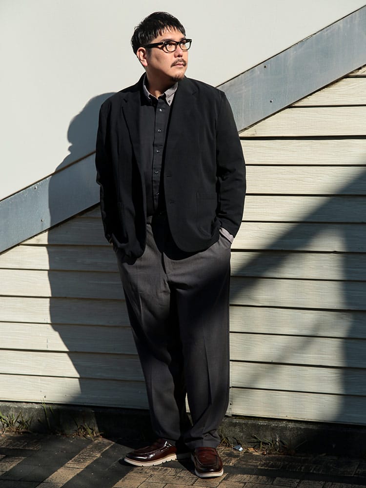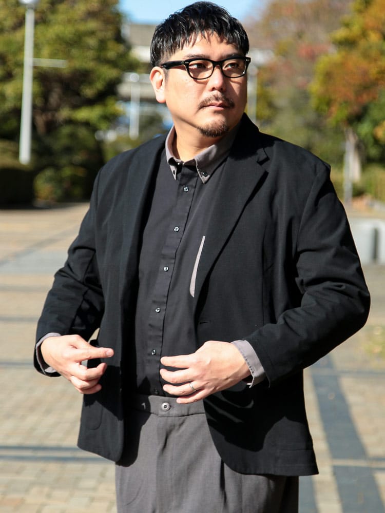 このジャケットは、仕事の日も休日も、どんなシーンでも気軽に羽織れることを考えて作っています。