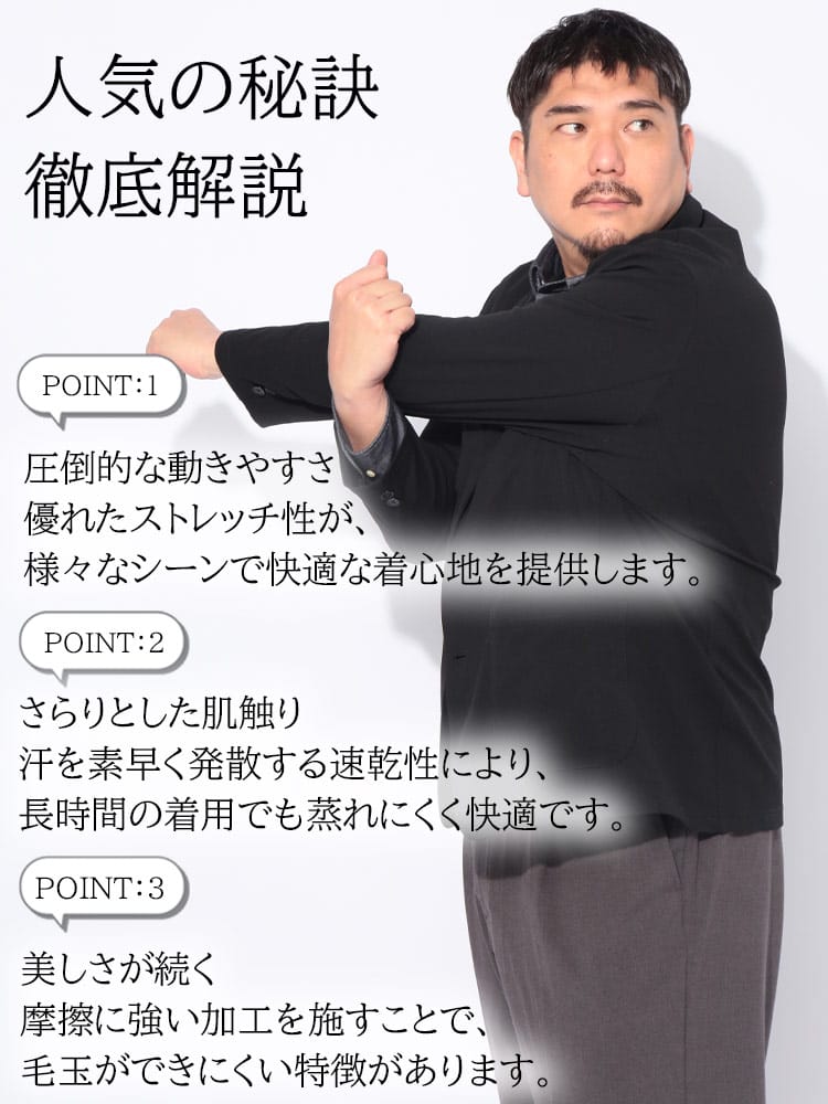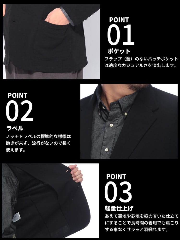 仕様 :外側ポケット数×2つ / ストレッチ素材 / 速乾 / アンチピリング / シングル2つボタン / 裏地無し