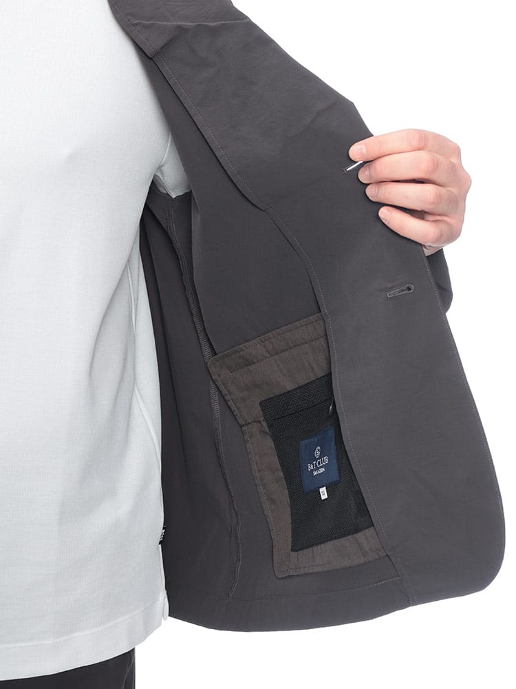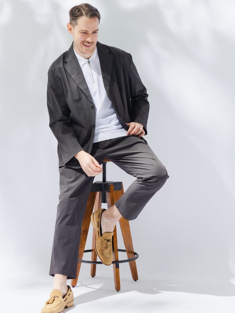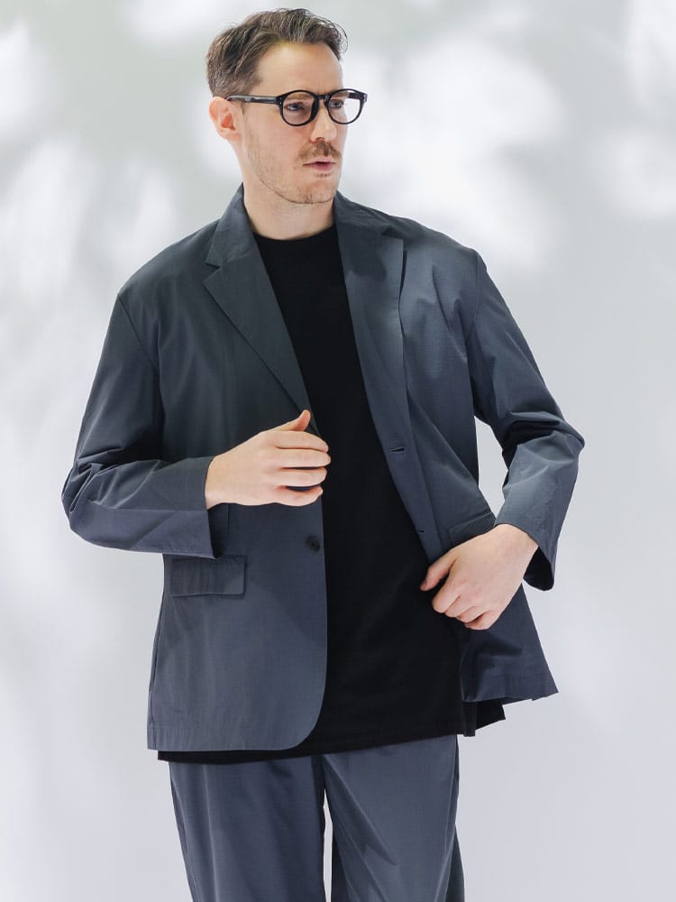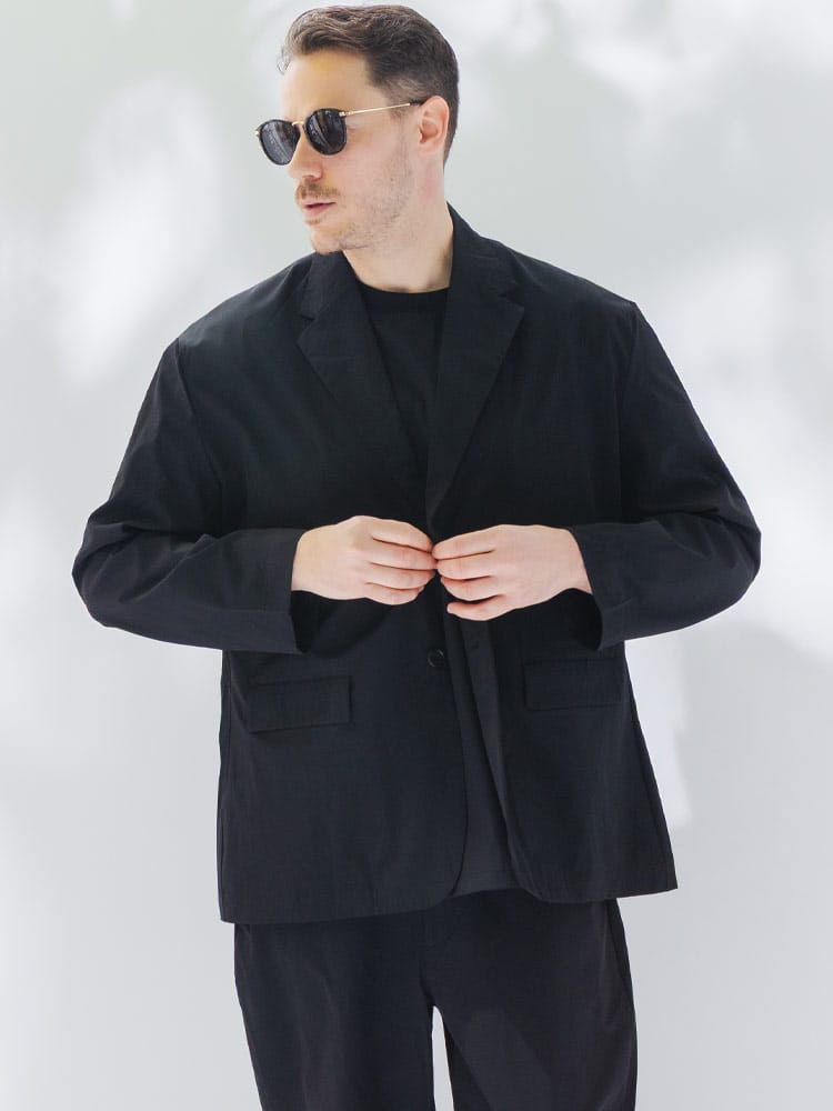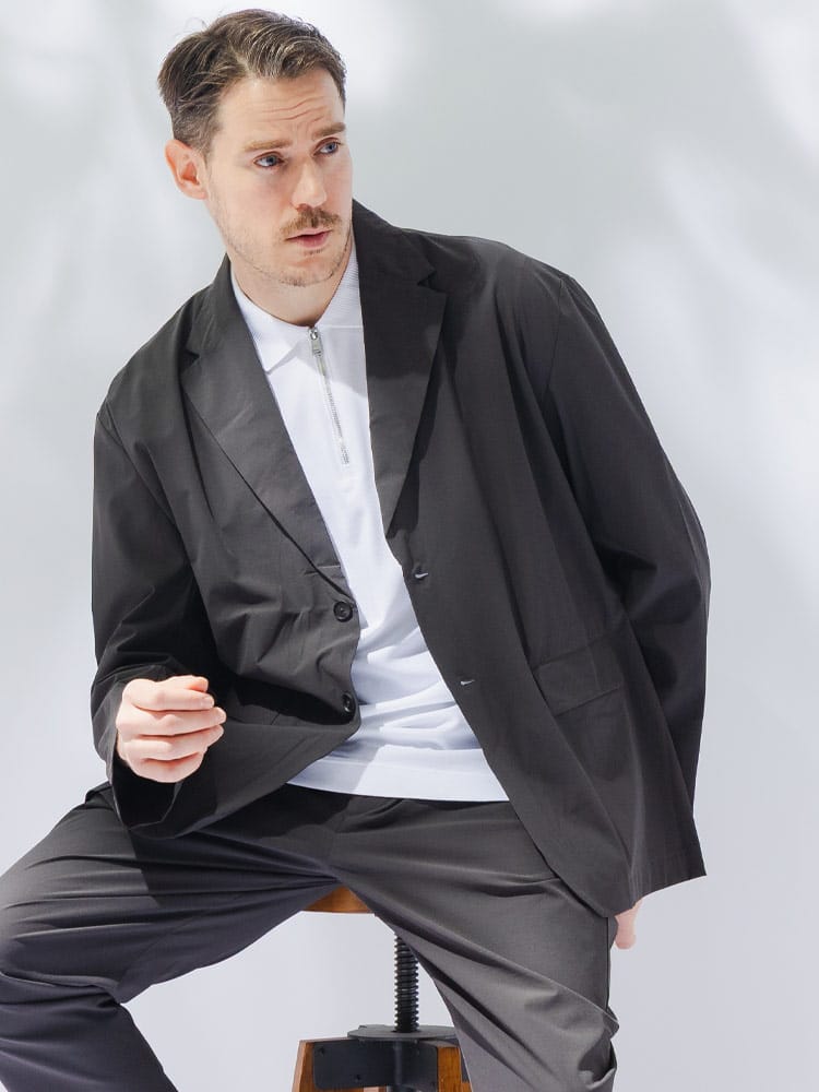 B&T CLUBから、過酷な暑さの中でもスマートさを失わないAIRYFLOW テーラードジャケット。最大の特徴は、ナイロンとポリウレタンを混紡した高機能素材による、驚異的な軽さとストレッチ性です。裏地のない仕立てで通気性が良く、さらに接触冷感、吸水速乾、UVカットといった夏に欠かせない機能がフル装備されています。汗ばむシーンでもひんやりとした肌触りが続き、常にドライで清潔感のある着こなしをキープします。ビジネスから休日まで幅広く活躍するシングルデザインは、大きいサイズ設計ならではのゆとりがあり、窮屈さを感じさせない最高の着心地を実現。内ポケットを含む3つのポケットを備え、実用性も抜群です。シワになりにくいため、長時間の移動や持ち運びにも最適な、大人のための機能派アウターです。