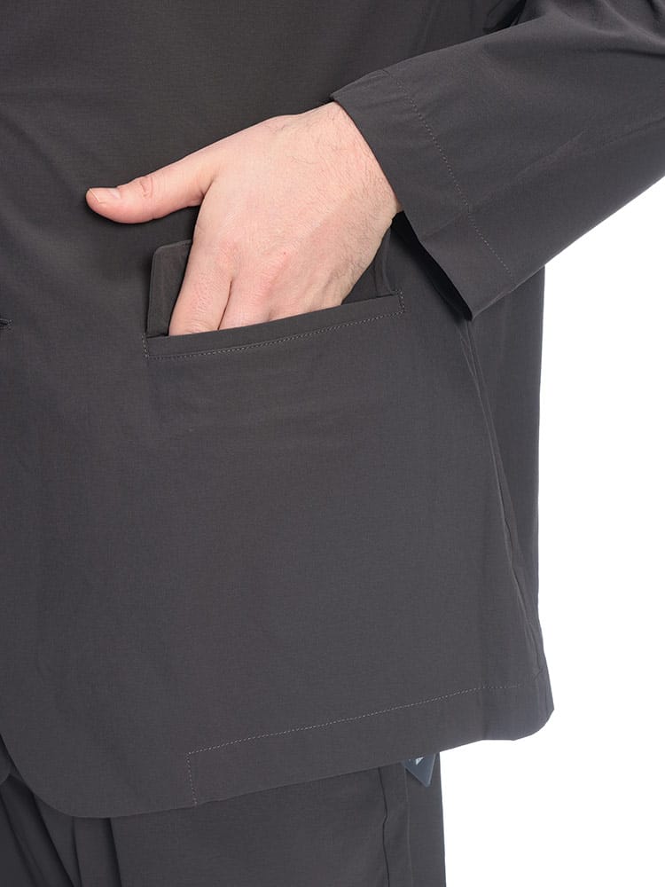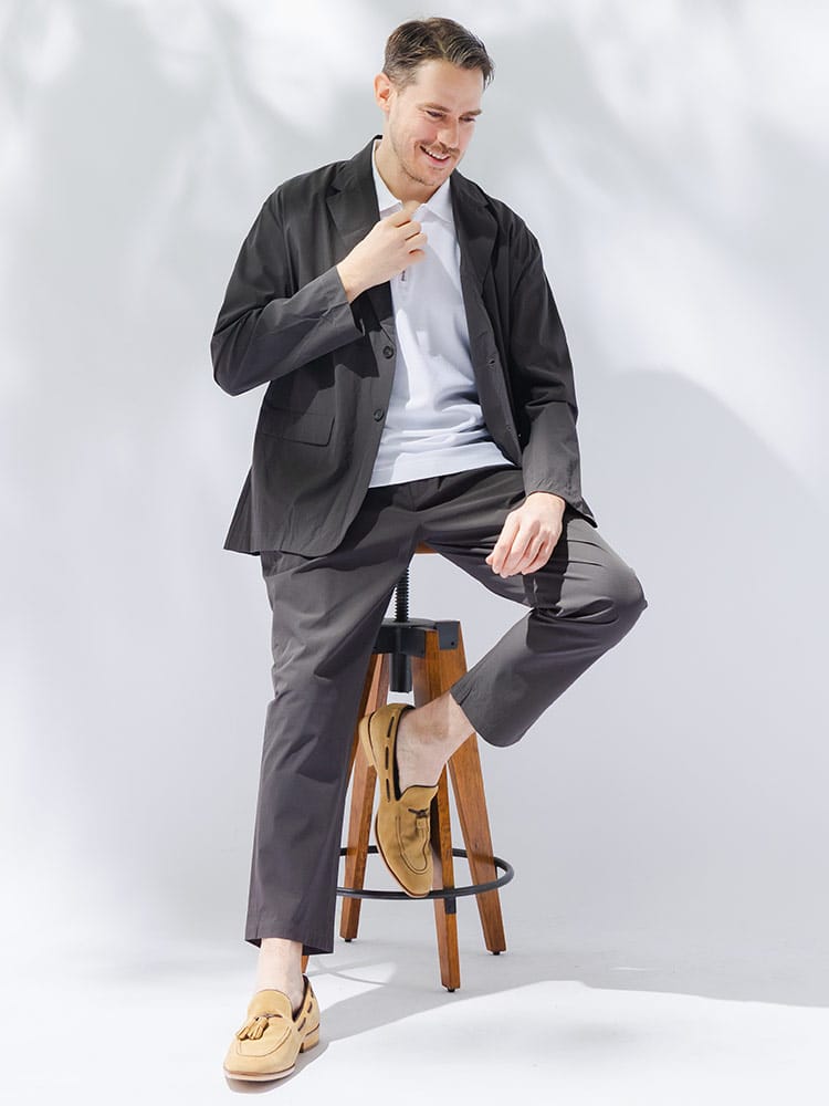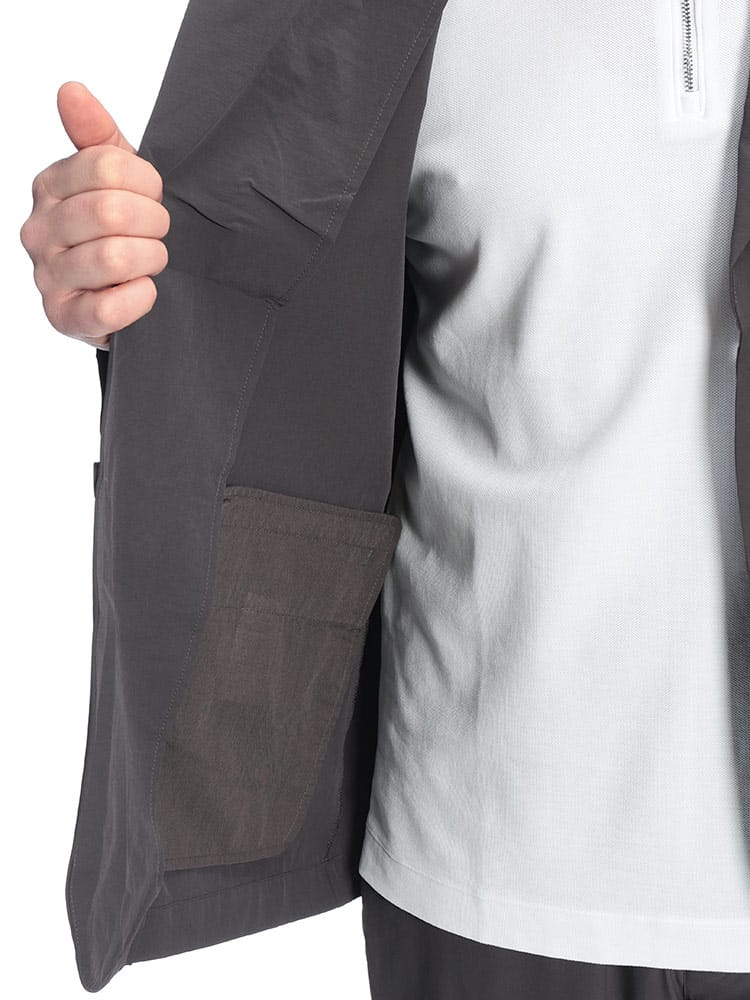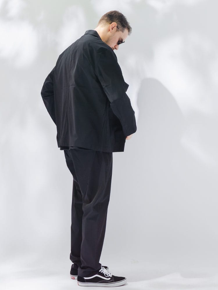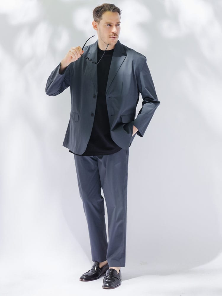 B&T CLUBから、過酷な暑さの中でもスマートさを失わないAIRYFLOW テーラードジャケット。最大の特徴は、ナイロンとポリウレタンを混紡した高機能素材による、驚異的な軽さとストレッチ性です。裏地のない仕立てで通気性が良く、さらに接触冷感、吸水速乾、UVカットといった夏に欠かせない機能がフル装備されています。汗ばむシーンでもひんやりとした肌触りが続き、常にドライで清潔感のある着こなしをキープします。ビジネスから休日まで幅広く活躍するシングルデザインは、大きいサイズ設計ならではのゆとりがあり、窮屈さを感じさせない最高の着心地を実現。内ポケットを含む3つのポケットを備え、実用性も抜群です。シワになりにくいため、長時間の移動や持ち運びにも最適な、大人のための機能派アウターです。