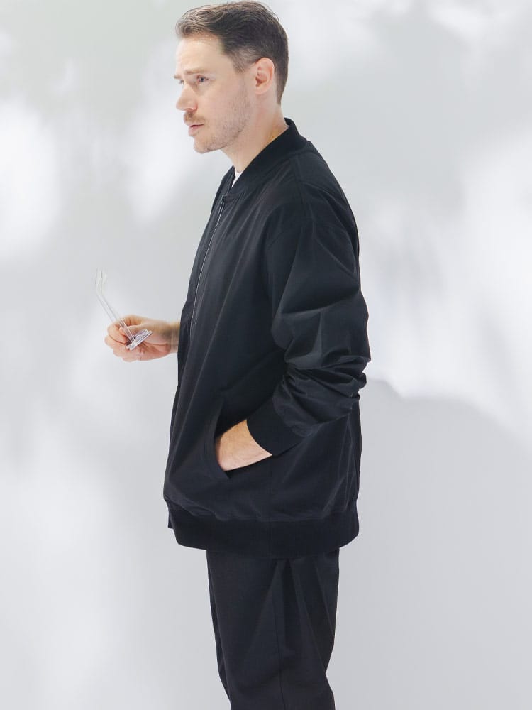 B&T CLUBから、驚くほどの軽さと機能性を両立したAIRYFLOW フルジップブルゾン。最大の特徴は、ナイロンベースの高機能素材が生み出す、風を纏うようなエアリーな着心地です。ストレッチ性に優れ、体の動きを妨げないだけでなく、接触冷感や吸水速乾(ドライ)、UV対策といった、春夏の外出を快適にする機能が凝縮されています。さらに抗菌防臭加工も施されており、汗ばむ季節でも清潔感をキープできるのが嬉しいポイントです。シンプルで洗練されたフルジップデザインは、Tシャツの上に羽織るだけで都会的なスポーツミックススタイルを完成させます。大きいサイズ設計ならではのゆとりあるシルエットながら、リブ仕様が全体の印象をスマートに引き締めます。シワになりにくく軽量なため、気温差のある日の持ち運びにも最適な、大人のための万能アウターです。