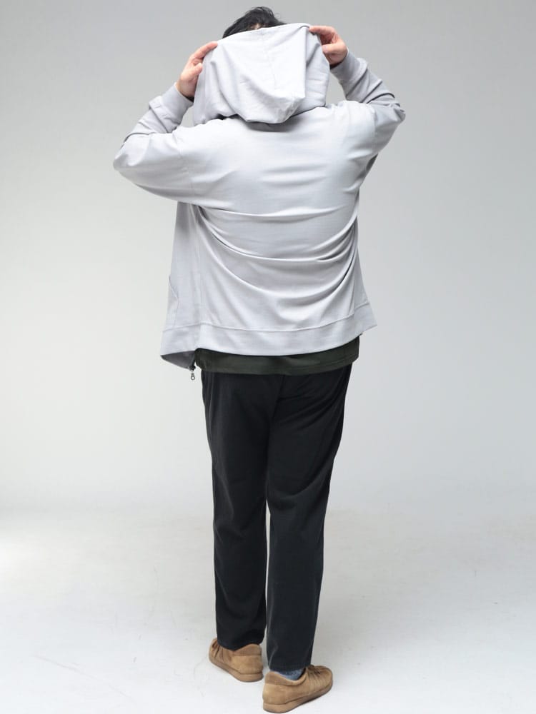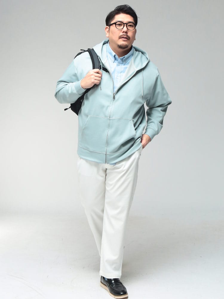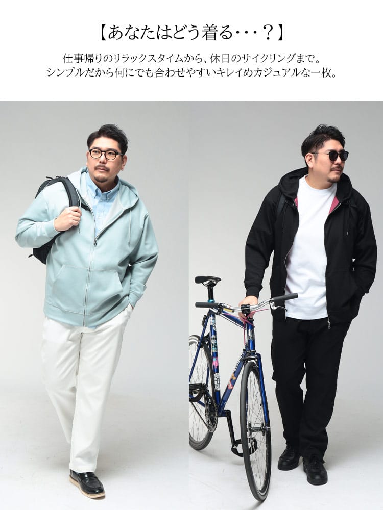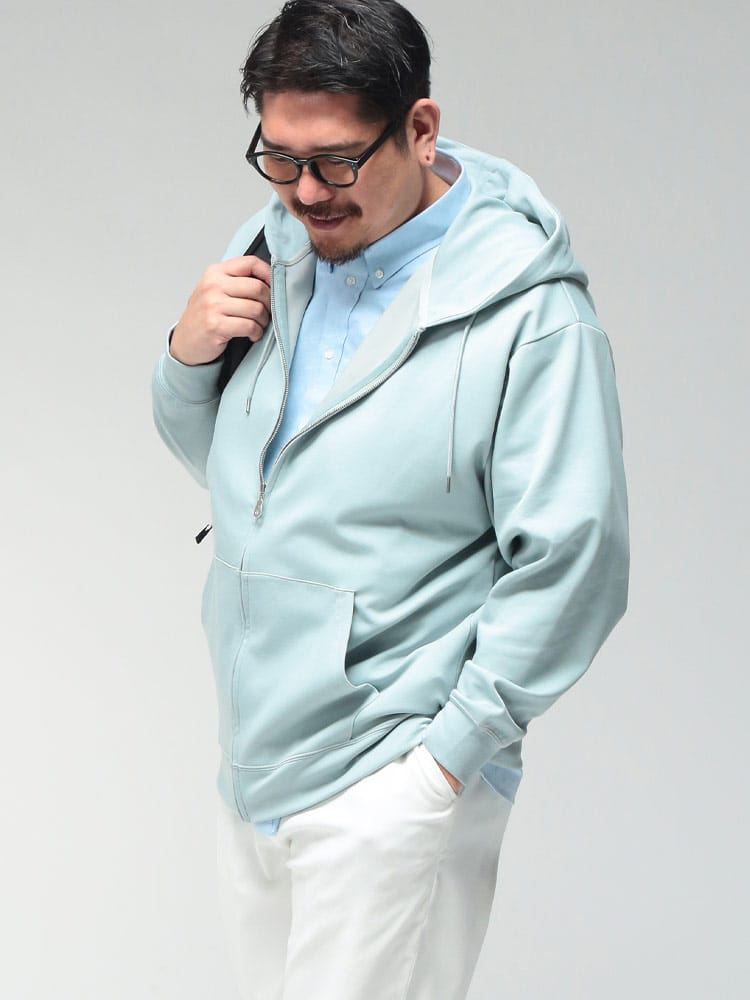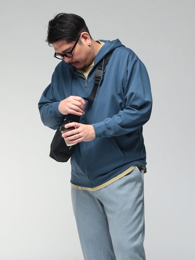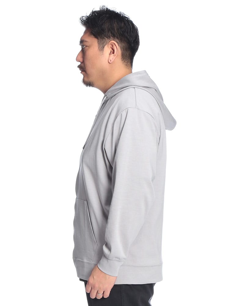 羽織る瞬間に違いがわかる、B&T CLUBの「ふわかる」Wフェイスポンチ・フルジップパーカー。最大の特徴は、ボリューム感のある見た目からは想像できないほどの超軽量設計です。空気を蓄えるダブルフェイス構造の生地が、包み込まれるようなソフトな肌触りと軽快な着心地を両立。ポリウレタンを贅沢に配合することで、大きいサイズの方でもストレスを感じない驚異のストレッチ性を実現しました。ハリのある素材感は型崩れしにくく、フードのシルエットを美しくキープ。温度調節がしやすいフルジップ仕様に利便性の高いサイドポケットを備え、ワンマイルウェアからアクティブシーンまで幅広く活躍する、毎日手に取りたくなる至福の一着です。