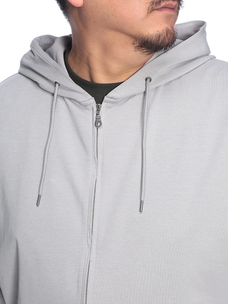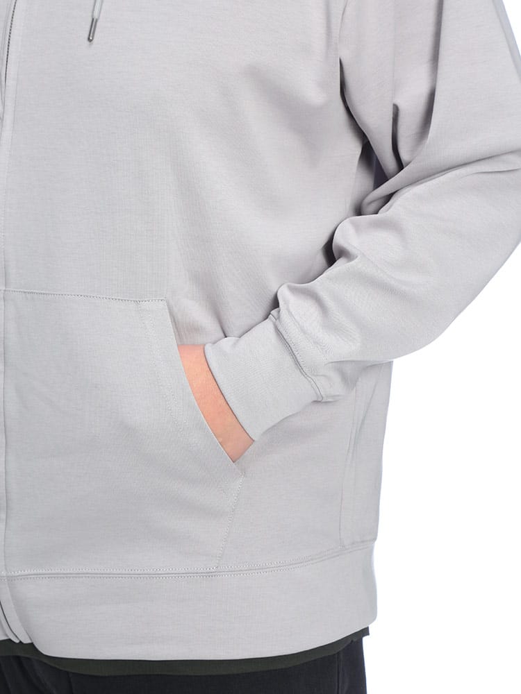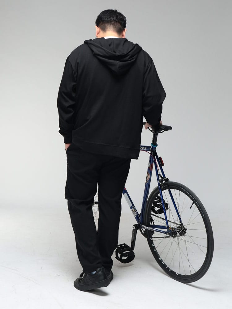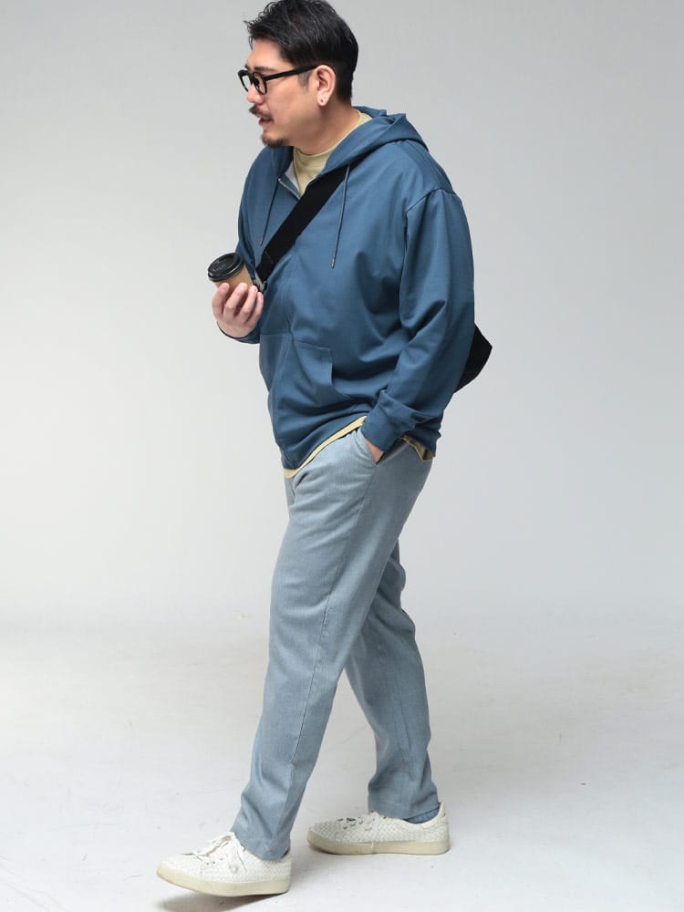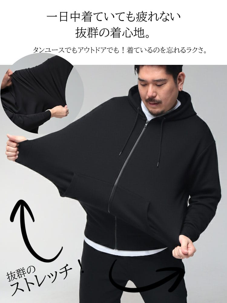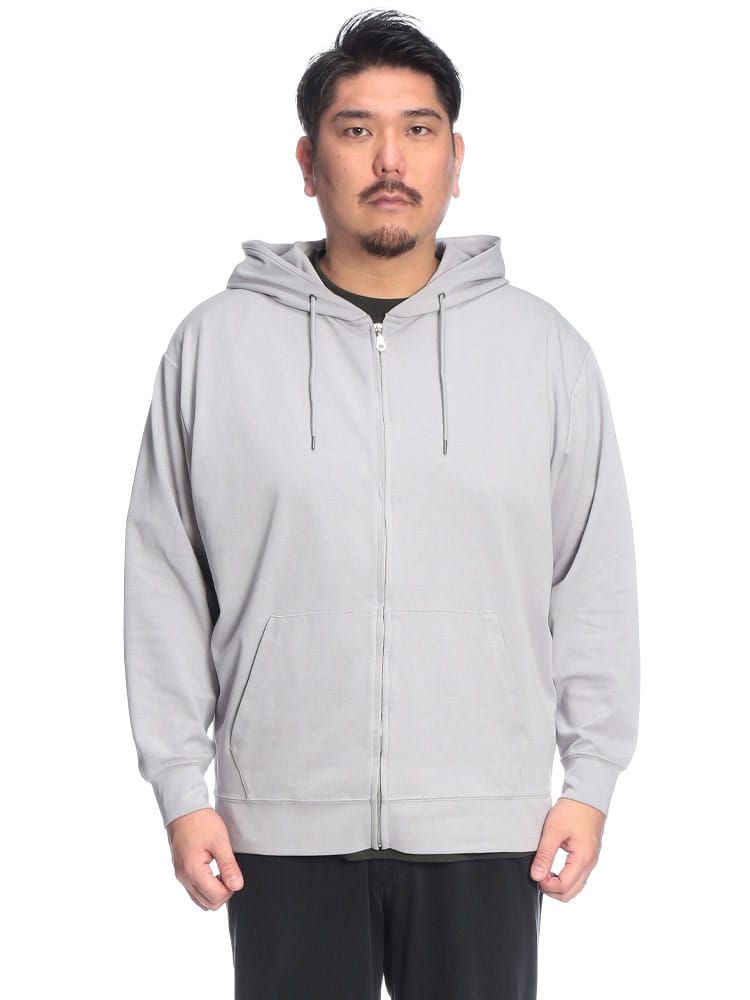 羽織る瞬間に違いがわかる、B&T CLUBの「ふわかる」Wフェイスポンチ・フルジップパーカー。最大の特徴は、ボリューム感のある見た目からは想像できないほどの超軽量設計です。空気を蓄えるダブルフェイス構造の生地が、包み込まれるようなソフトな肌触りと軽快な着心地を両立。ポリウレタンを贅沢に配合することで、大きいサイズの方でもストレスを感じない驚異のストレッチ性を実現しました。ハリのある素材感は型崩れしにくく、フードのシルエットを美しくキープ。温度調節がしやすいフルジップ仕様に利便性の高いサイドポケットを備え、ワンマイルウェアからアクティブシーンまで幅広く活躍する、毎日手に取りたくなる至福の一着です。
