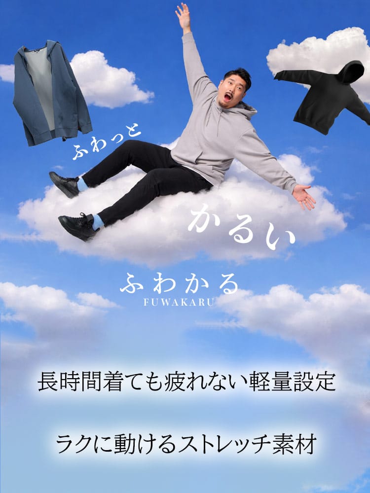 長時間着ても疲れない軽量さとラクに動けるストレッチ素材が魅力の、ふわかるシリーズ。