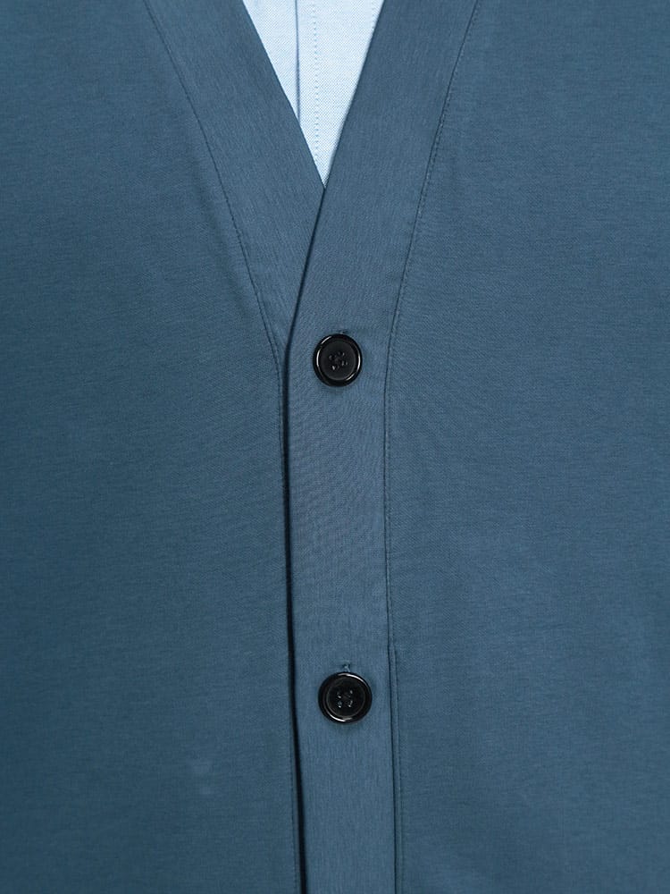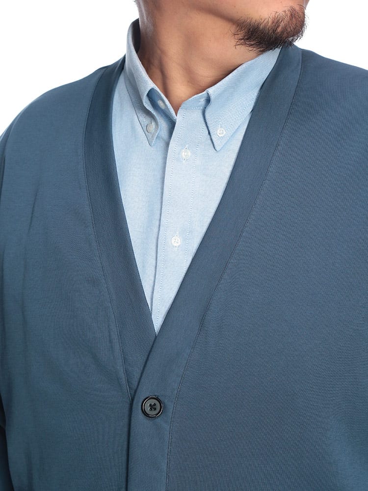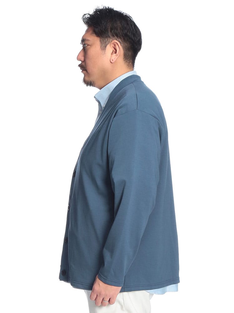 驚きの軽さと品格を両立した、B&T CLUBの「ふわかる」WフェイスポンチVネックカーディガン。空気を編み込んだようなダブルフェイス構造により、重厚感のある見た目に反して、肩の凝らない超軽量な着心地を実現しました。綿混の柔らかな風合いにポリウレタンを12%配合した極上のストレッチ性が、大きいサイズの方の動きを妨げず、スマートなシルエットをキープします。スッキリとしたVネックラインは、Tシャツからシャツまでインナーを選ばず、オンオフ兼用の羽織りとして最適。シワになりにくいポンチ素材特有のハリ感が、清潔感のある大人カジュアルを演出します。両サイドのポケットも完備した、日常の利便性と快適さを追求した逸品です。