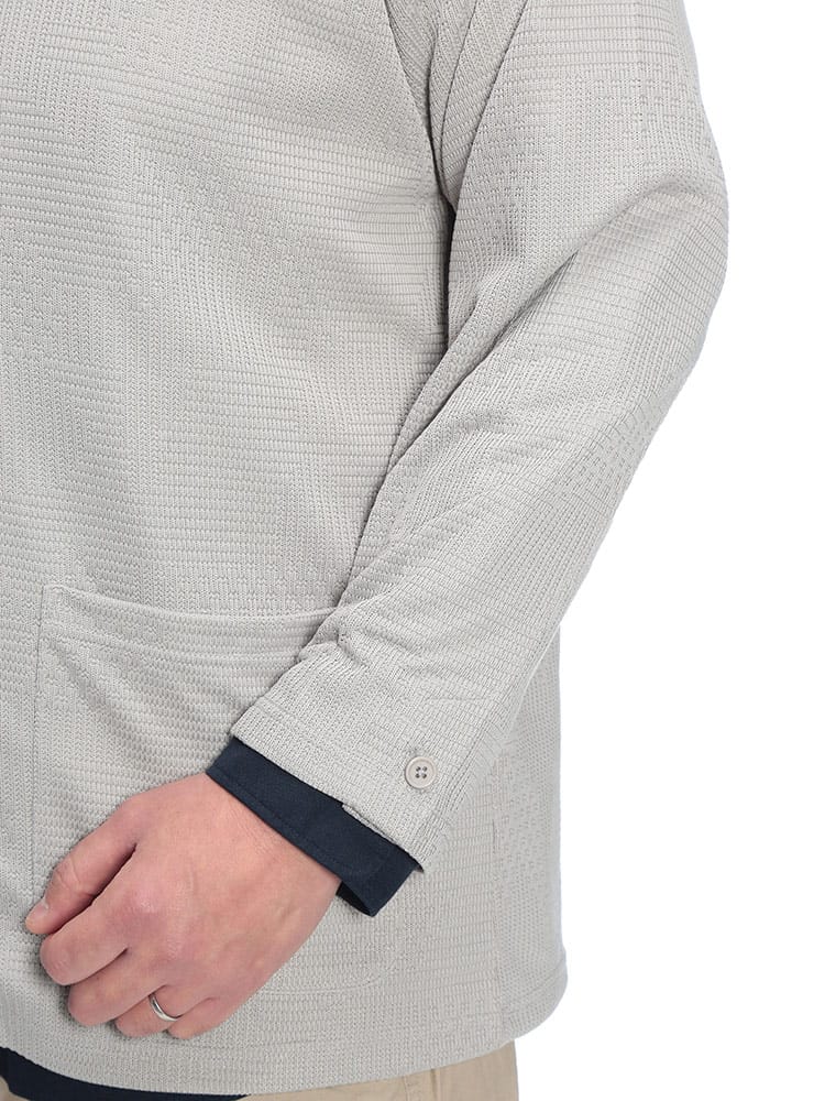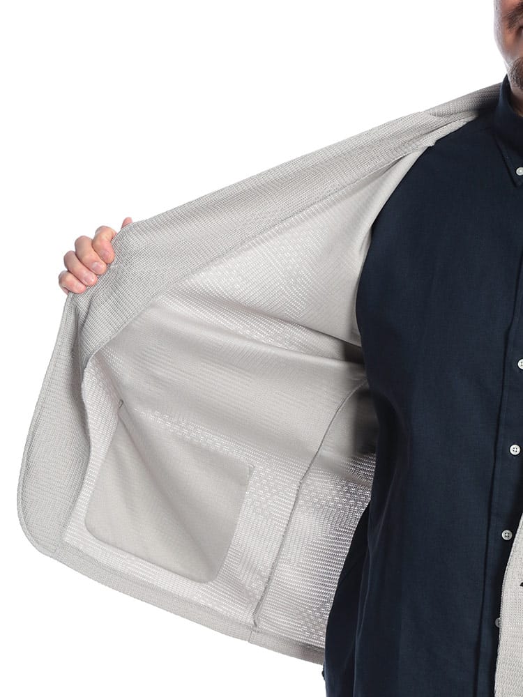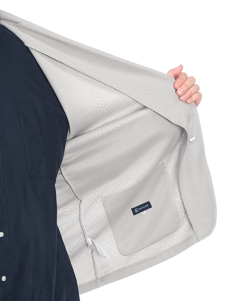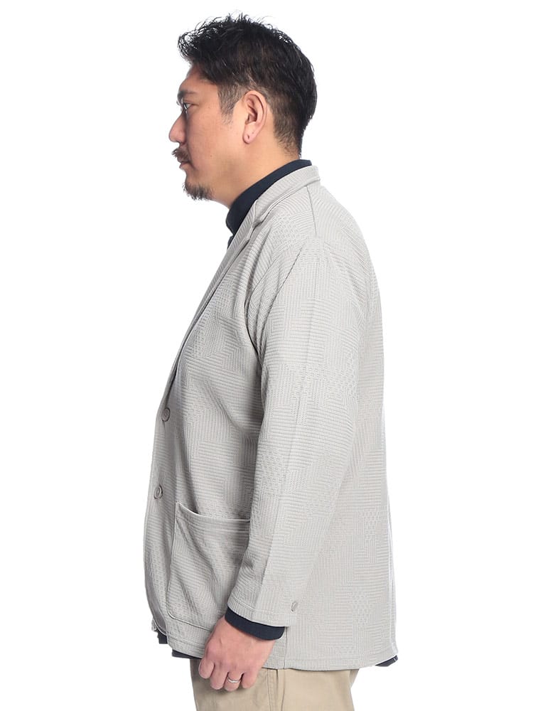 大人の品格を格上げする、B&T CLUBのランダムジャガード・テーラードジャケット。立体感のあるジャガード織りが豊かな表情を生み出し、無地にはないこなれ感と高級感を演出します。ニットのような柔らかな肌触りとストレッチ性で、大きいサイズの方でも窮屈感のないリラクシーな着心地を実現。裏地を省いた軽やかな仕立ては、カーディガン感覚で気軽に羽織れるのが魅力です。シングル2つボタンの端正なシルエットが、春夏のカジュアルアップからオフィススタイルまで幅広く対応。シワになりにくいポリエステル素材を使用し、出先での着脱もスマートに。清潔感と動きやすさを両立した、休日のお出かけを格上げする一着です。