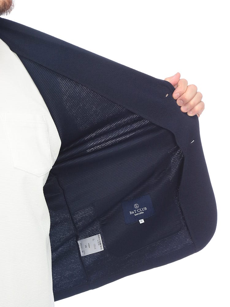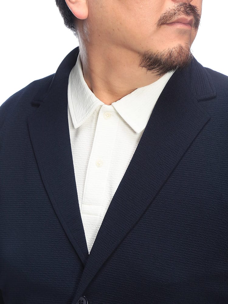驚くほど軽やかでリラックス感溢れる「快ラクWEAR」シリーズのシングルテーラードジャケットが登場しました。ポコポコとした表情豊かなDRYリップル生地を採用し、肌離れが良くベタつきを抑えたドライな着心地を実現。ジャージのような優れたストレッチ性を備えた大きいサイズ設計なので、動きやすく肩肘張らないラフなスタイルを楽しめます。裏地無しの軽量仕立てにより、カーディガン感覚でサッと羽織れるのが魅力。シングル2つボタンの端正なルックスを保ちつつ、自宅でのお手入れが簡単なイージーケア仕様なのも嬉しいポイントです。Tシャツやデニムと合わせた大人の休日コーデを、一気に清潔感のある印象へ格上げしてくれる頼れる一着です。