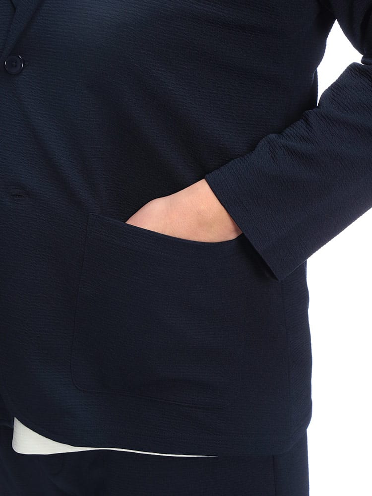 仕様 :外側ポケット数×2つ / シングル2つボタン / 裏地無し / ストレッチ / ドライ / イージーケア