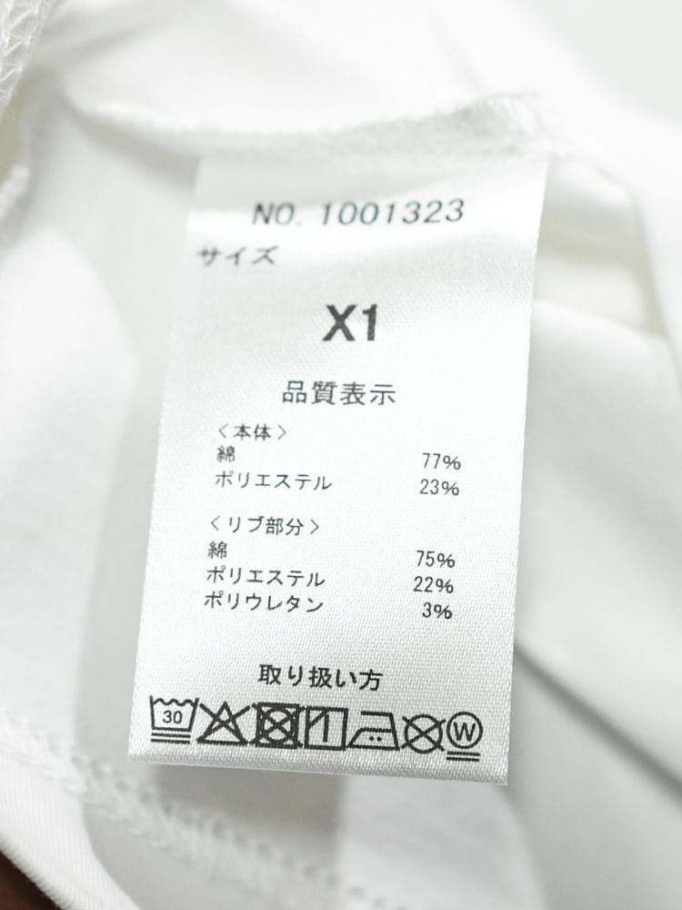 素材 :[本体]綿77% ポリエステル23% [リブ部分]綿75% ポリエステル22% ポリウレタン3%