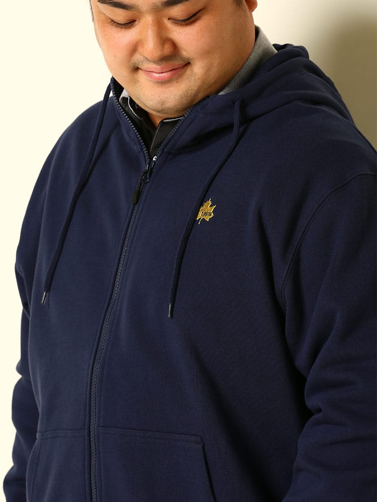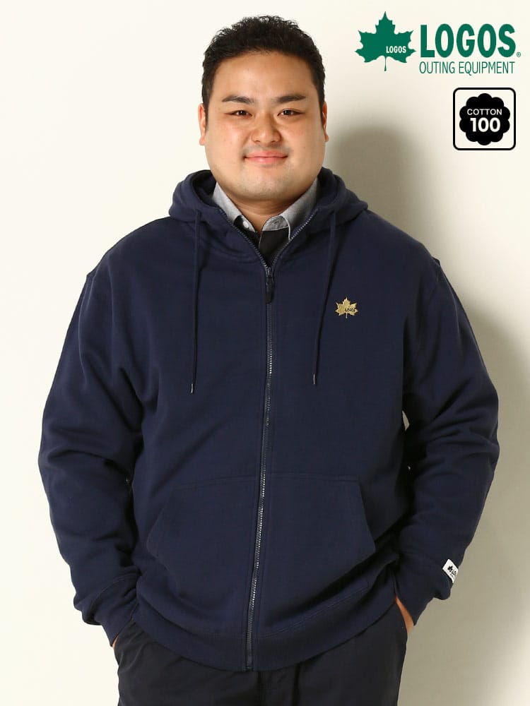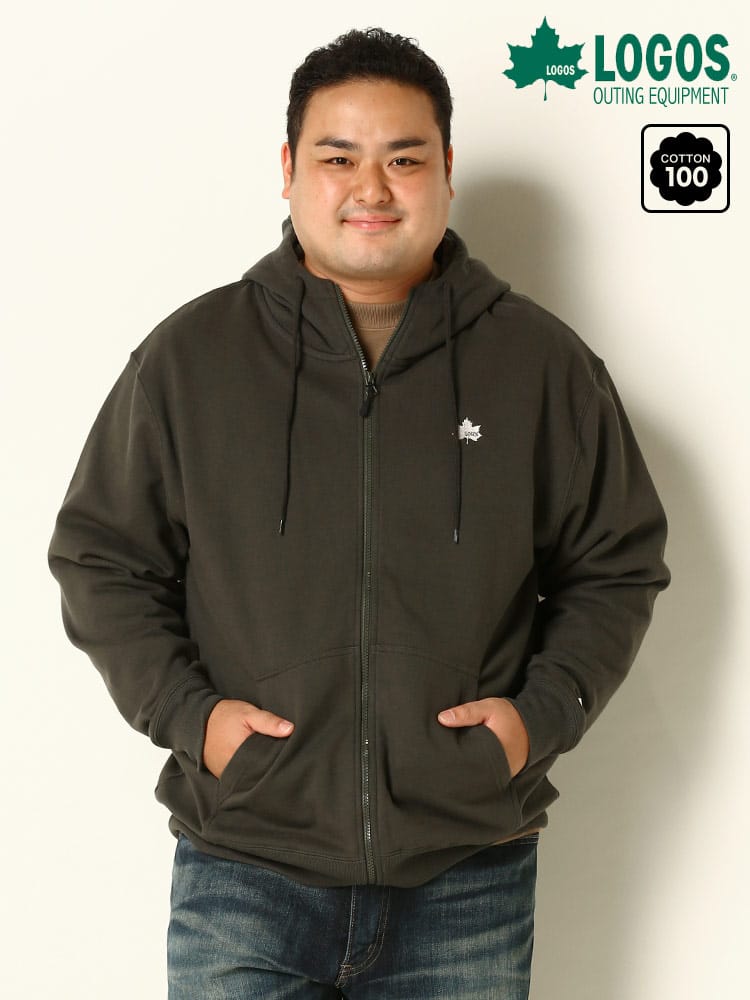 LOGOSのフード フルジップ 長袖 パーカー。シンプルなデザインに左胸のロゴプリントがポイント。左袖にタグ付き。フロントはシングルジップ。裏地は裏毛になっており、サラッとした肌触りです。スタンダードなシルエットでどんなボトムスともマッチする一着。