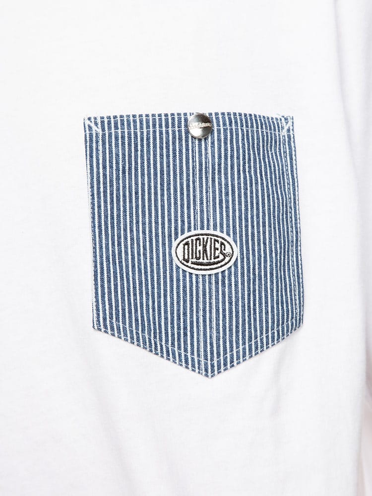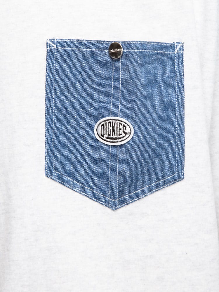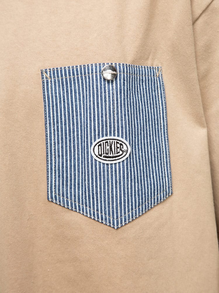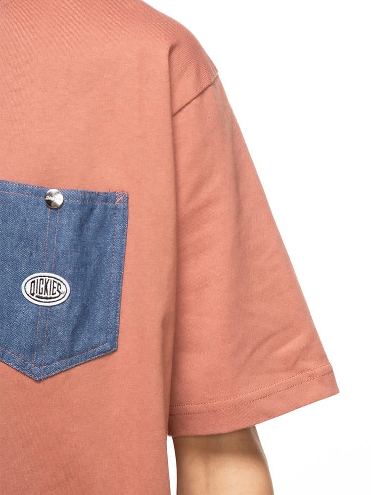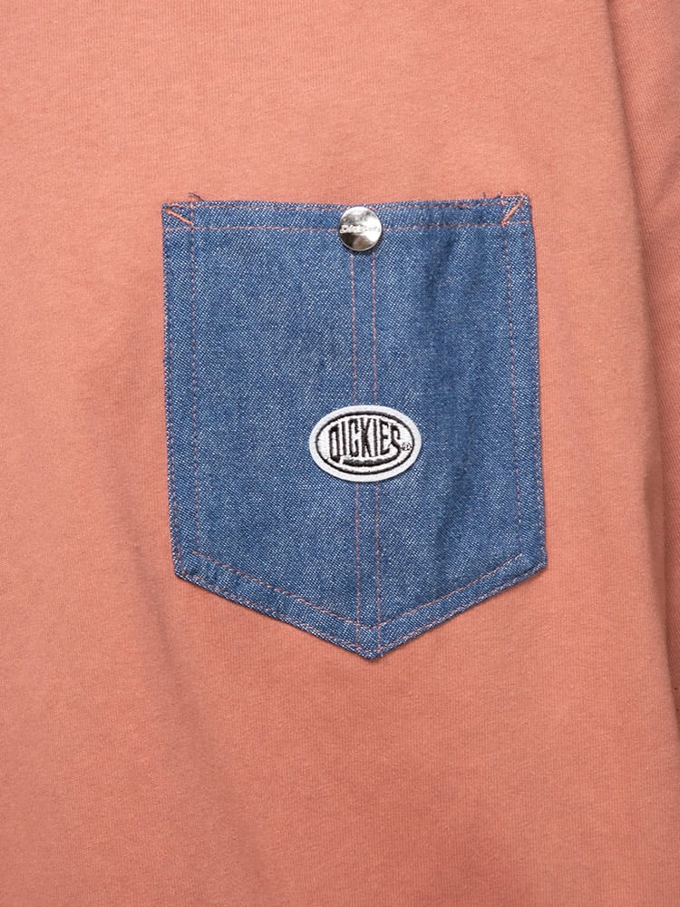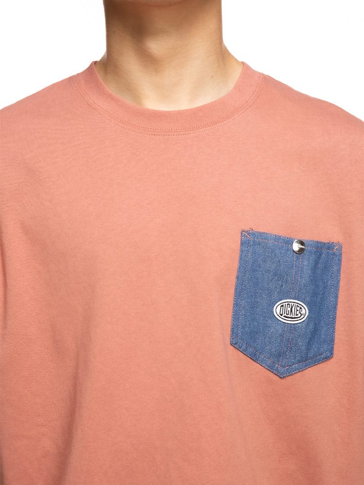 左胸の布帛ポケットがポイントになったDickiesのクルーネック 半袖 Tシャツ。無地デザインに左胸のポケットとブランドロゴ、メタルパーツがアクセントになったアイテム。首元はベーシックなクルーネックデザイン。生地にはしっかりとしたコットン生地を使用し、着心地抜群の一枚。フロント左裾にブランドタグ付き。
