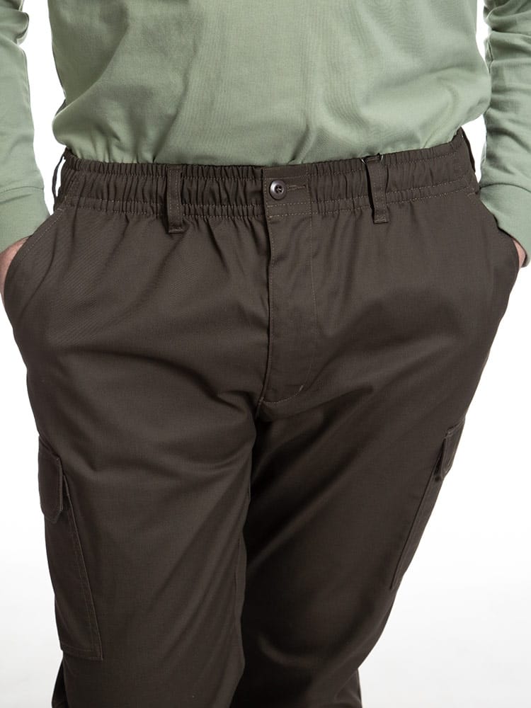 仕様 :外側ポケット数×6つ / ジップフライ / ウエスト調節ゴム