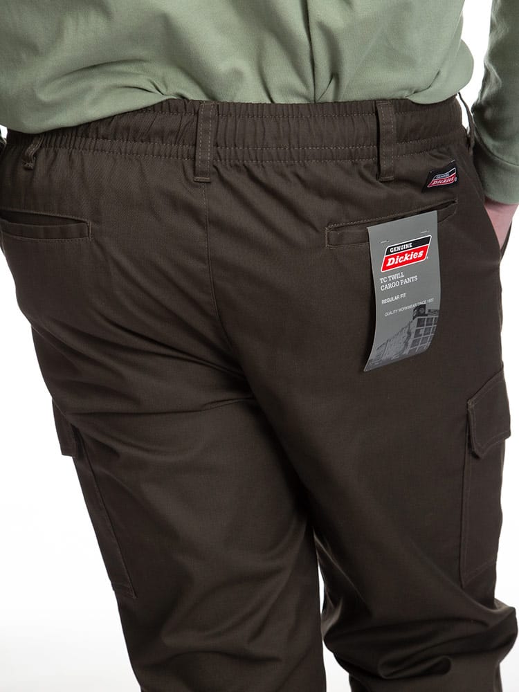 ツイル生地を使用したDickiesのジップフライ カーゴ イージーパンツ。無地デザインでどんなスタイルにも合わせやすいアイテムです。ポケットデザインがポイント。ウエストはゴムとドローコード付きでサイズ調整出来ます。バック右ポケットにブランドタグ付き。カジュアルスタイルにおすすめです。