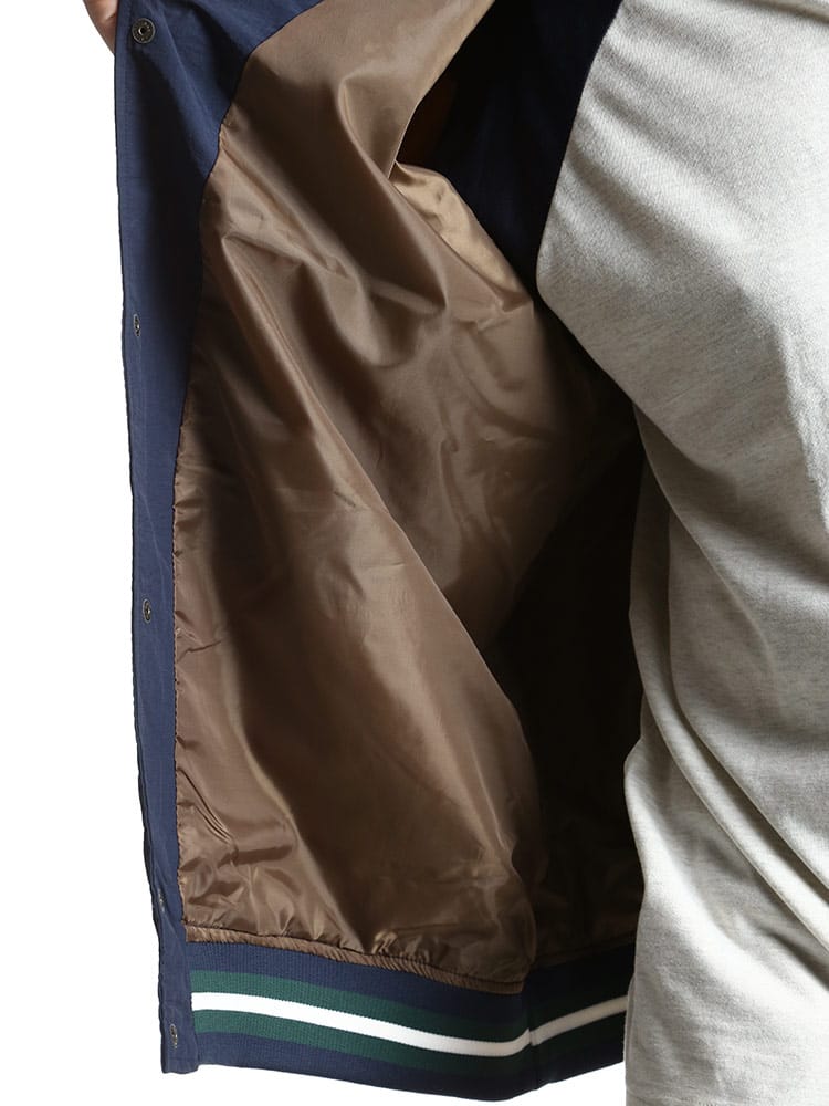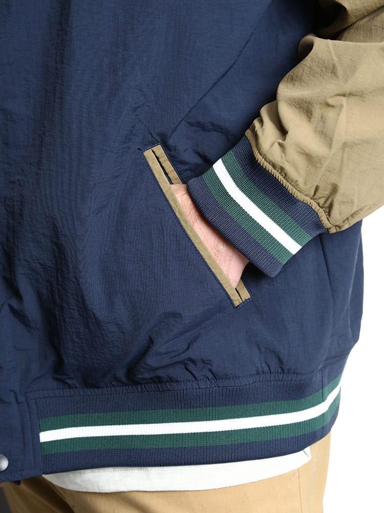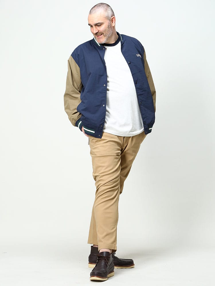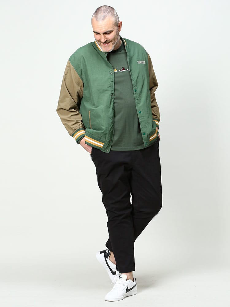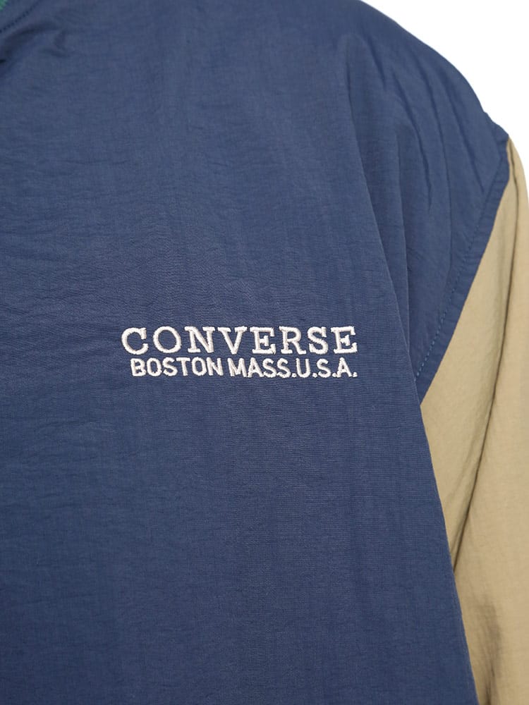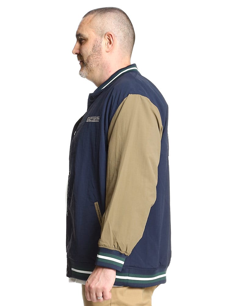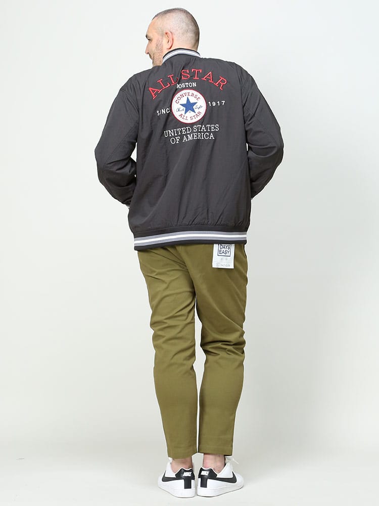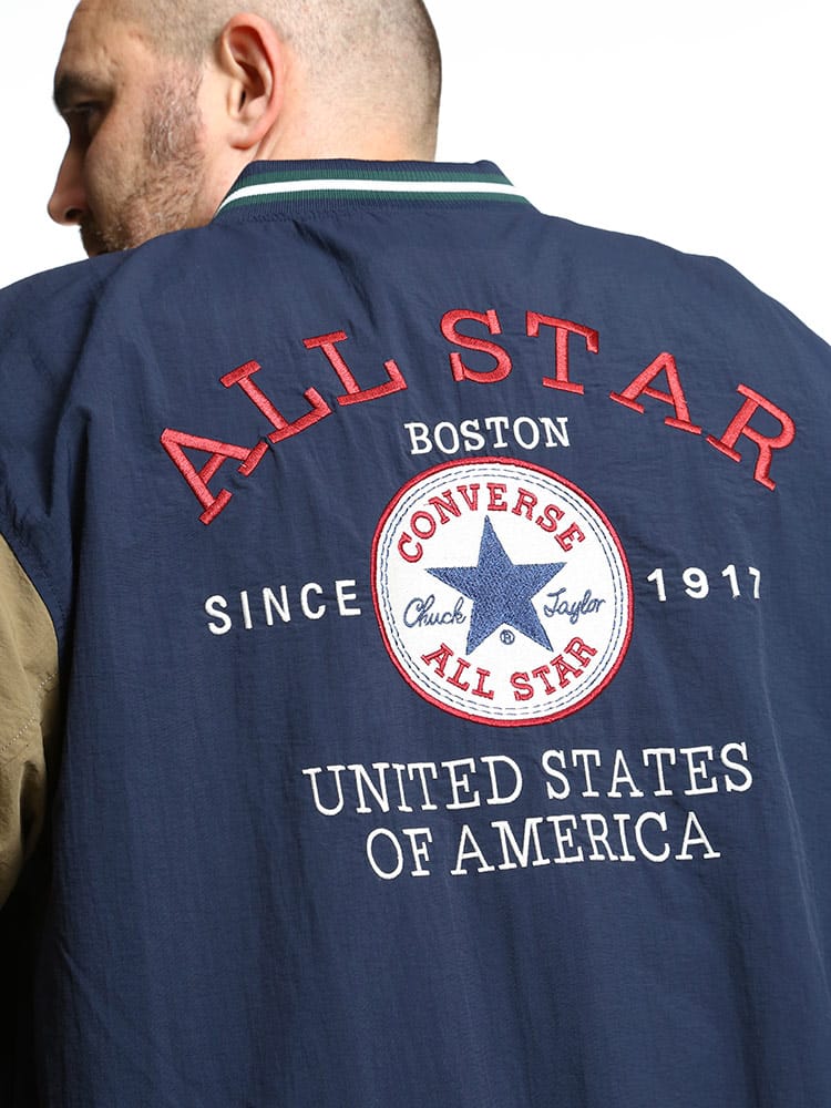 CONVERSEの撥水 ナイロンワッシャー スタジャンです。ボディには撥水加工が施されているので突然の雨でも安心の一着。背中にはコンバースの象徴的なオールスターロゴがダイナミックに刺繍されたデザインとなって非常にインパクトのあるビジュアルとなっているスタジアムジャンパー。