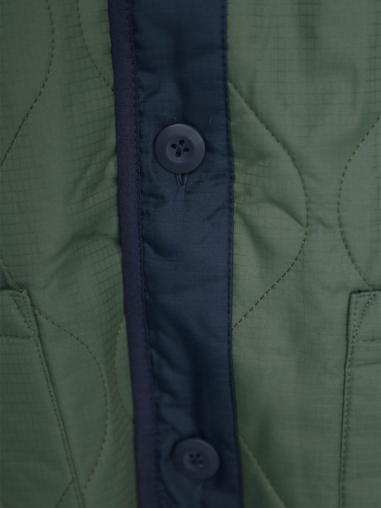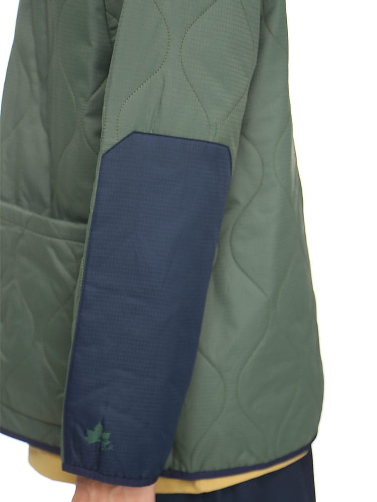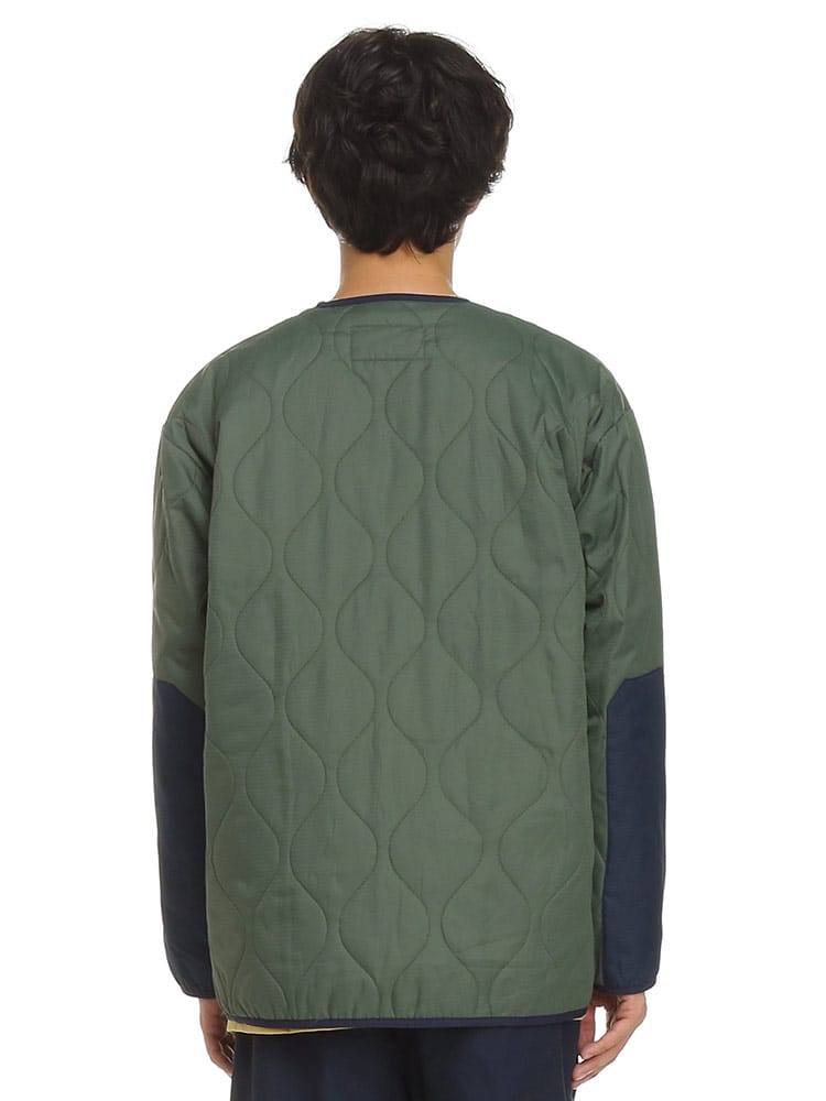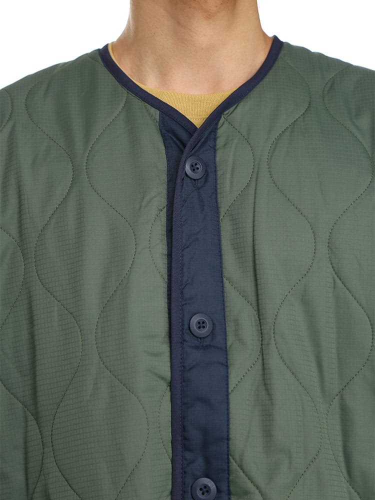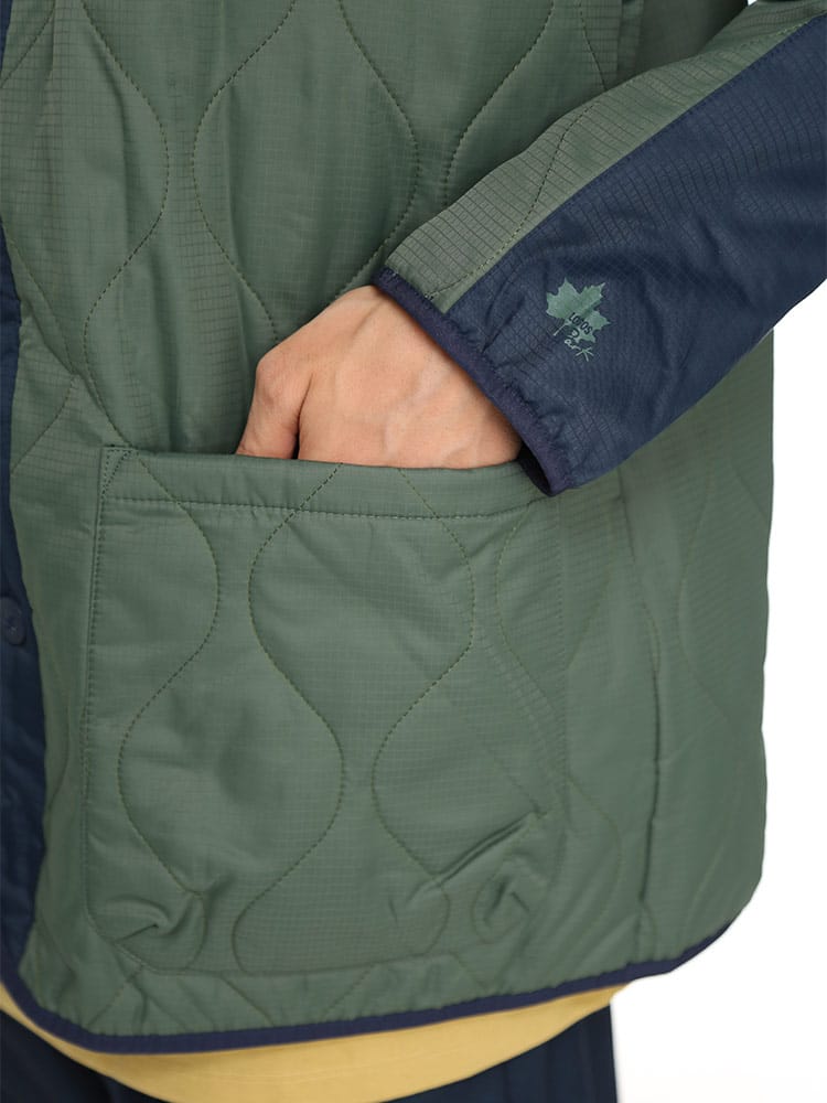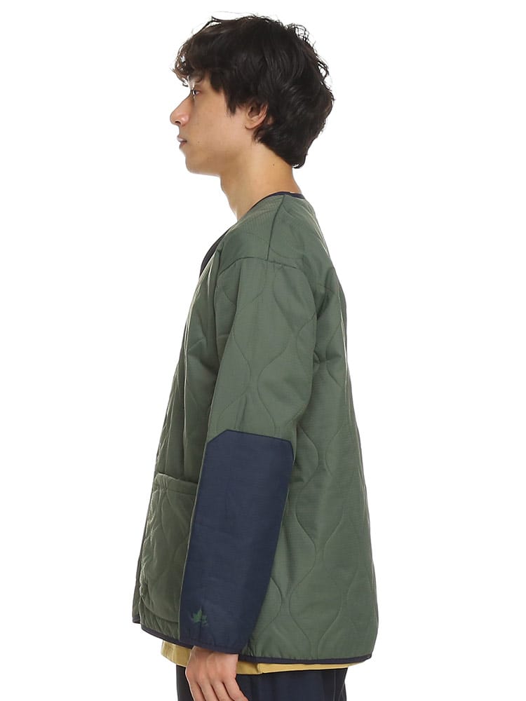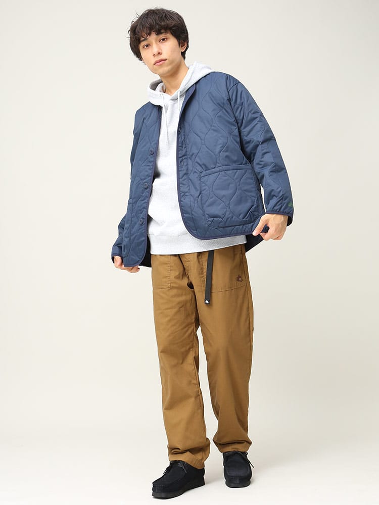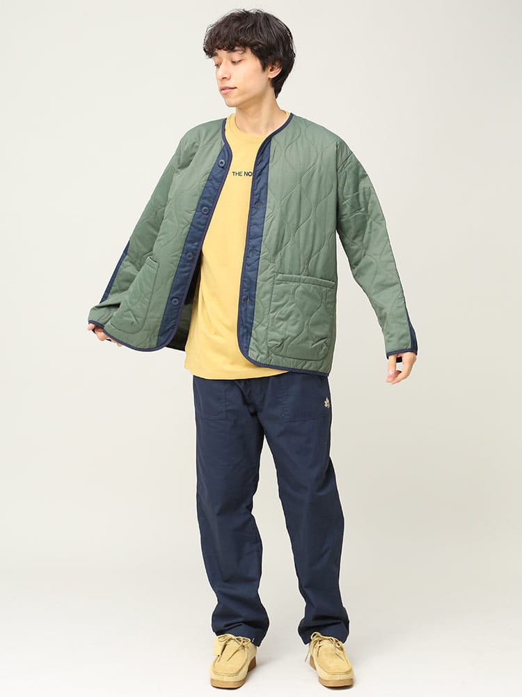 アウトドアアイテムのLOGOS Parkから、ノーカラーキルトカーディガンです。特徴的な曲線キルティングで、トップスとしてはもちろん、コートなどのインナーとしても使える一着。ダウンに匹敵するフィルパワーと発熱効果で高い保温性を発揮する「ボタニカルヒート」素材を使用しています。また表地は撥水加工が施されているので急な雨などでも安心。