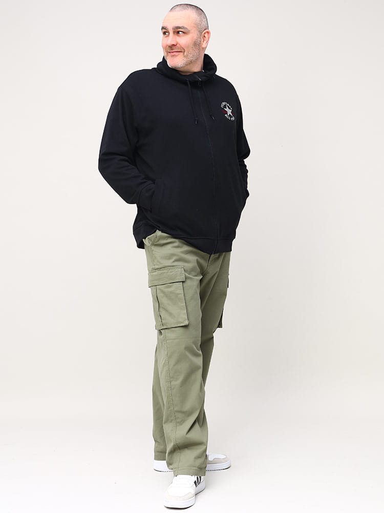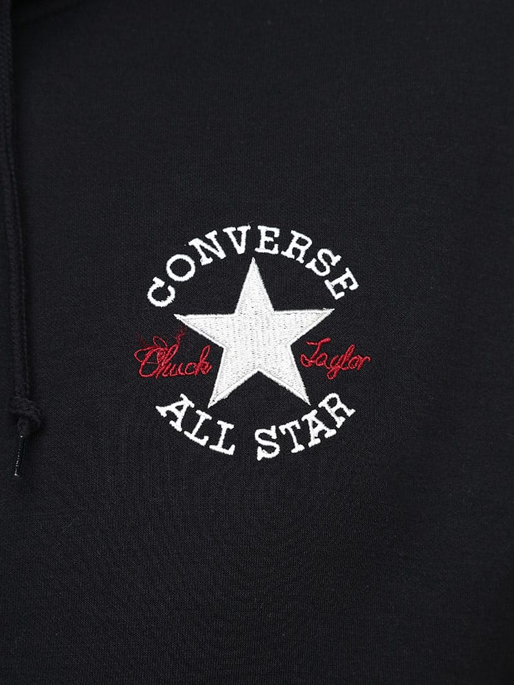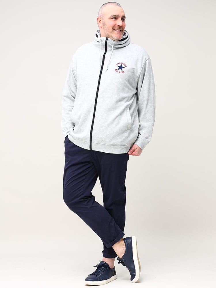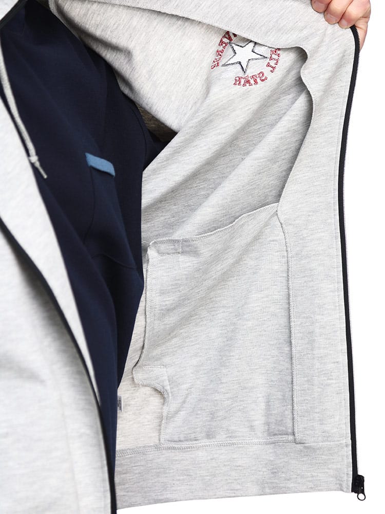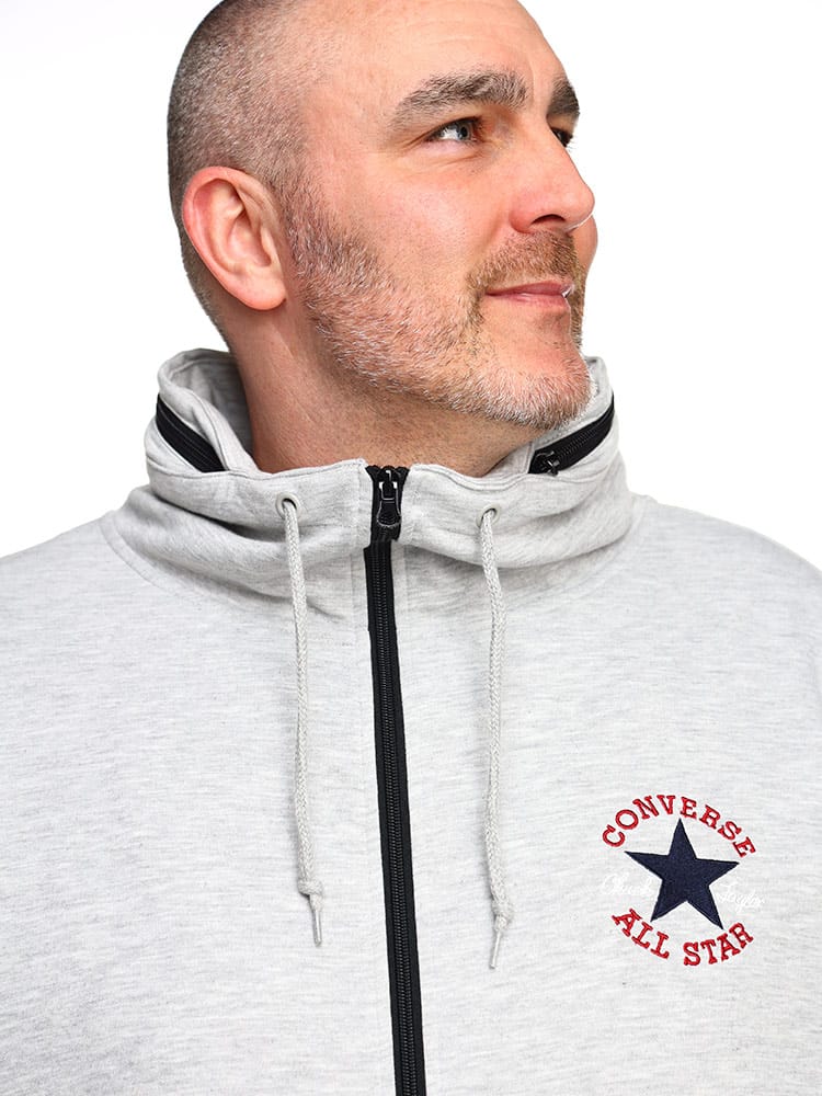 ボリュームネックがポイントになったCONVERSEの胸ロゴ フルジップ パーカー。左胸にワンスターとロゴを組み合わせたワンポイント刺繍。ボリュームネックでジップにフードが収納されています。袖、裾はリブデザイン。2つのポケット完備しています。スポーツシーンからストリート、アウトドアと幅広いコーディネートを楽しめる一着です。