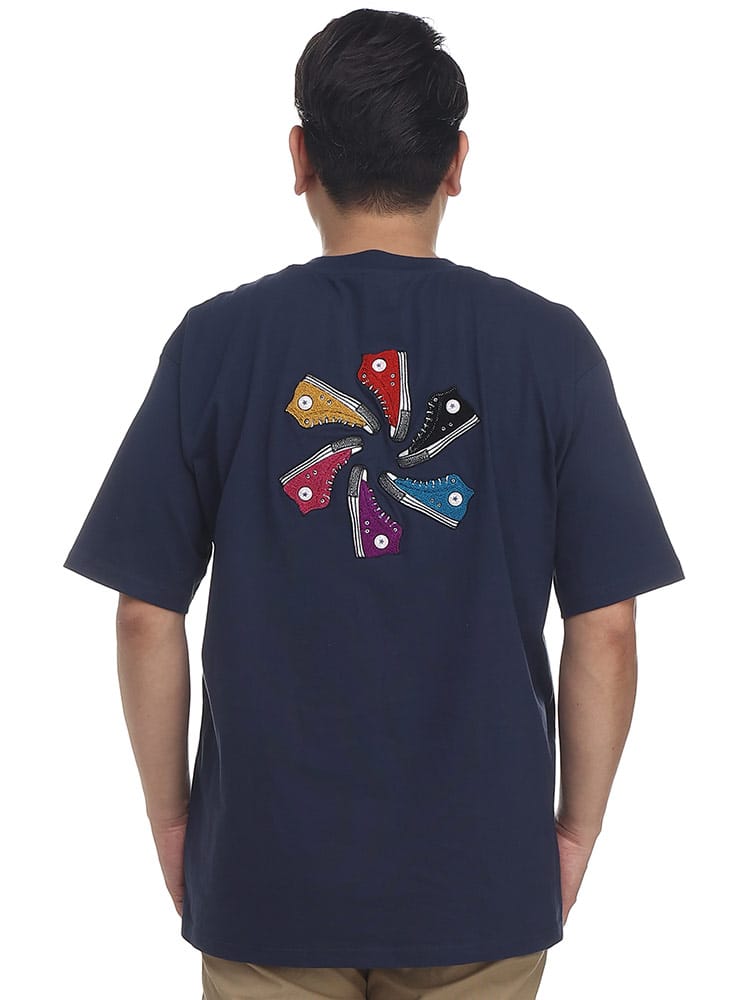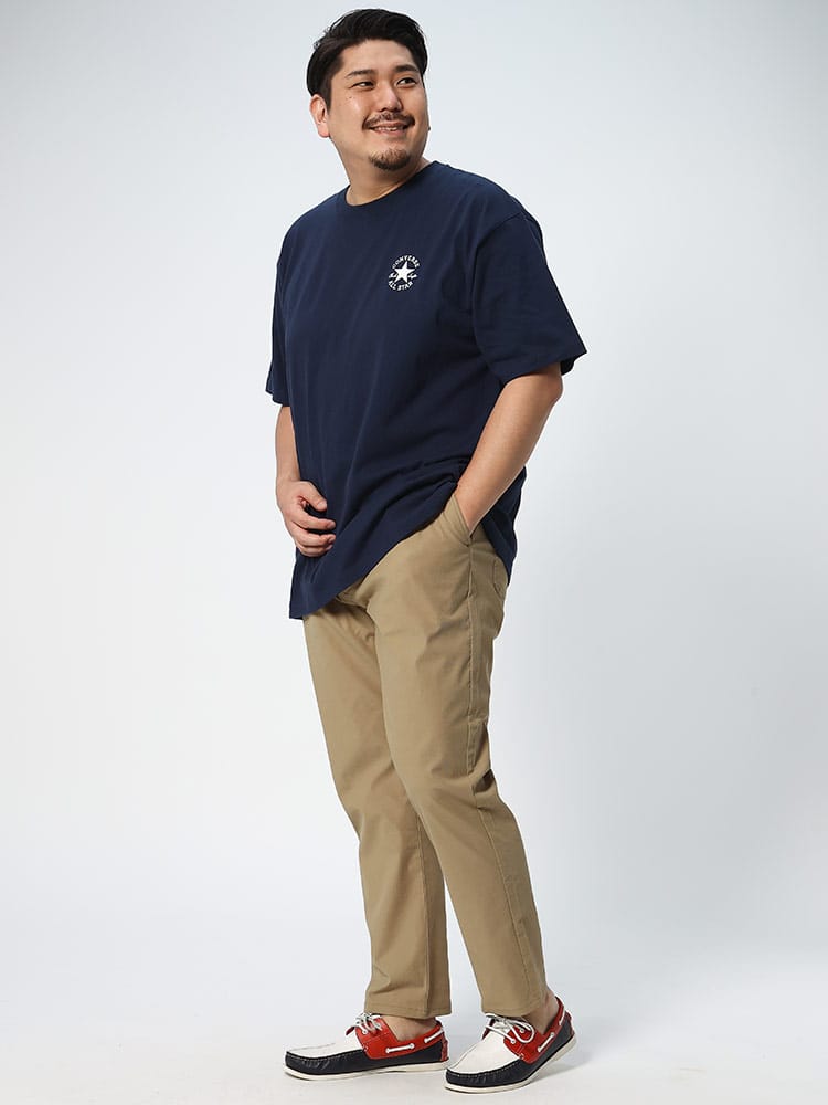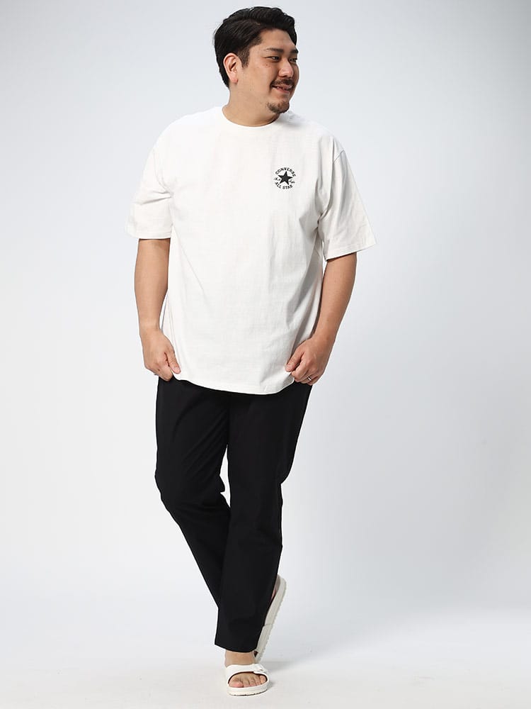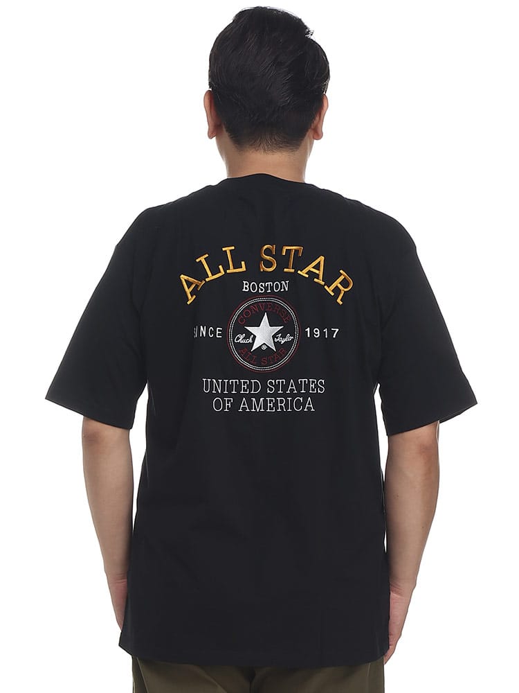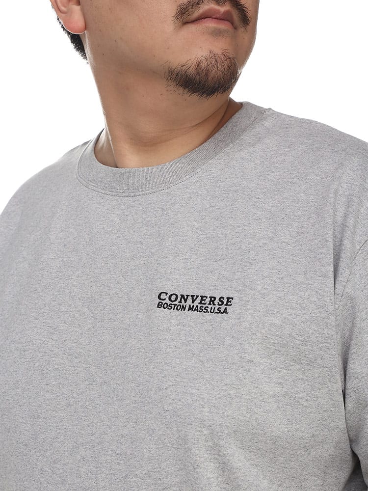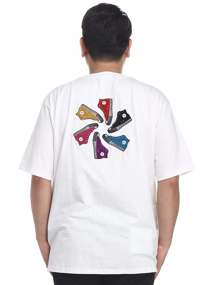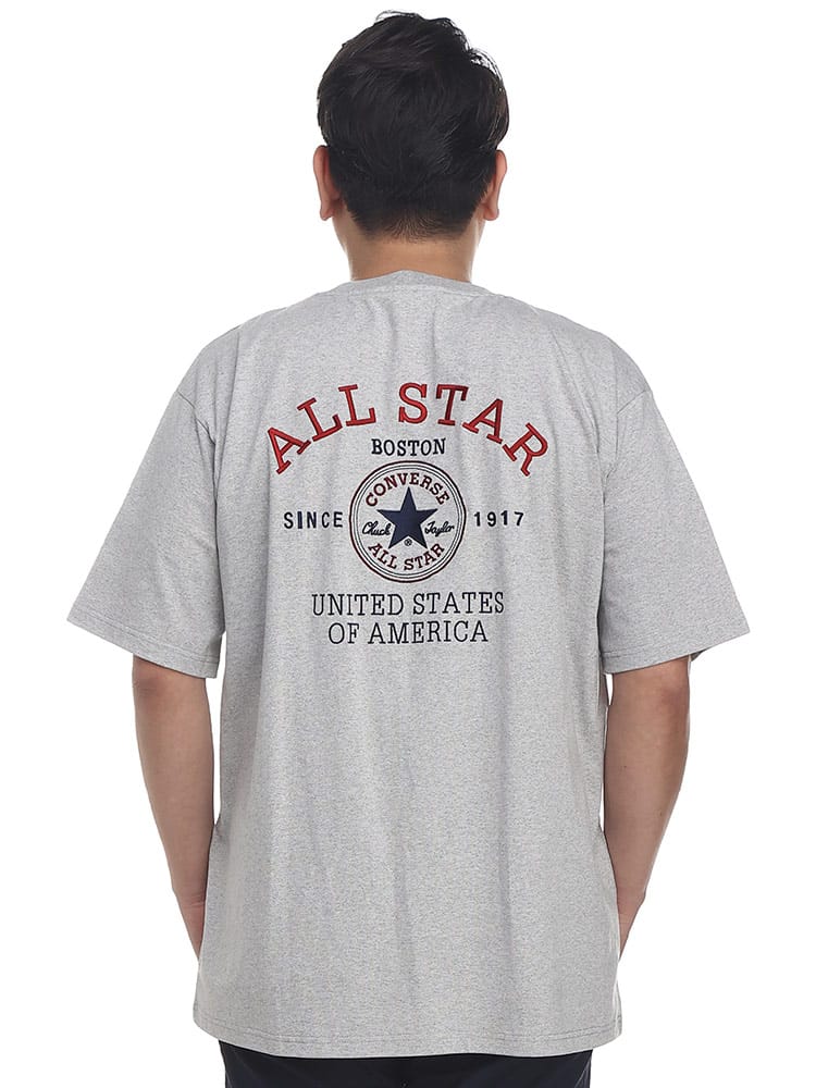 フロントの胸元にブランド刺?をワンポイントで施し、バックにヴィンテージ感感じるアメカジ風のロゴ刺繍を施したデザインと胸元にオールスターのアイコン、バックにカラフルでパイル生地で仕上げたスニーカーを並べた2種類の遊び心感じるデザインTシャツ。肩幅を大き目にとり、ややゆったりとしたサイズ感を採用た旬なシルエット。シンプルなデザインなのでどんなパンツとの相性良く着回し力抜群です。