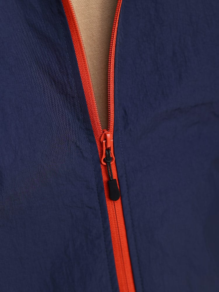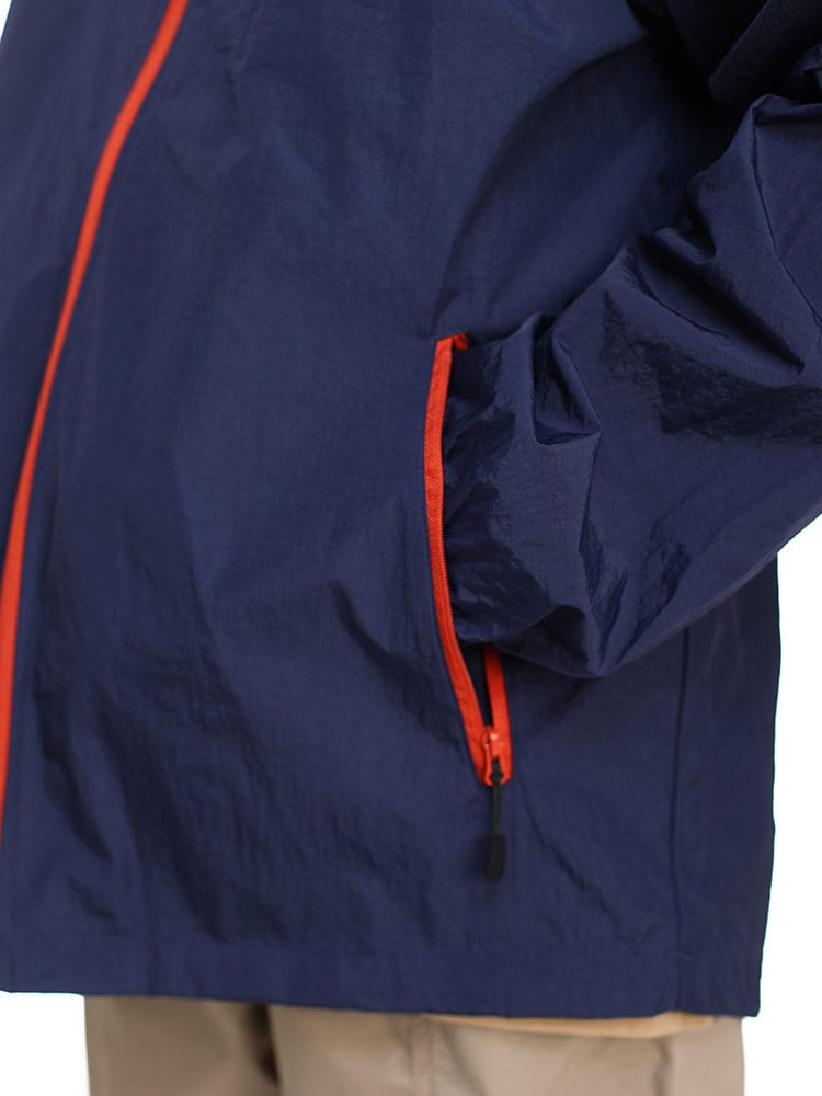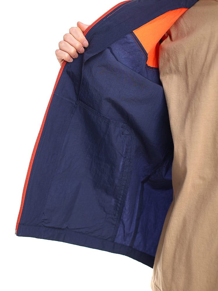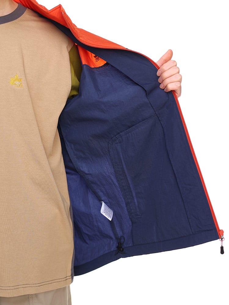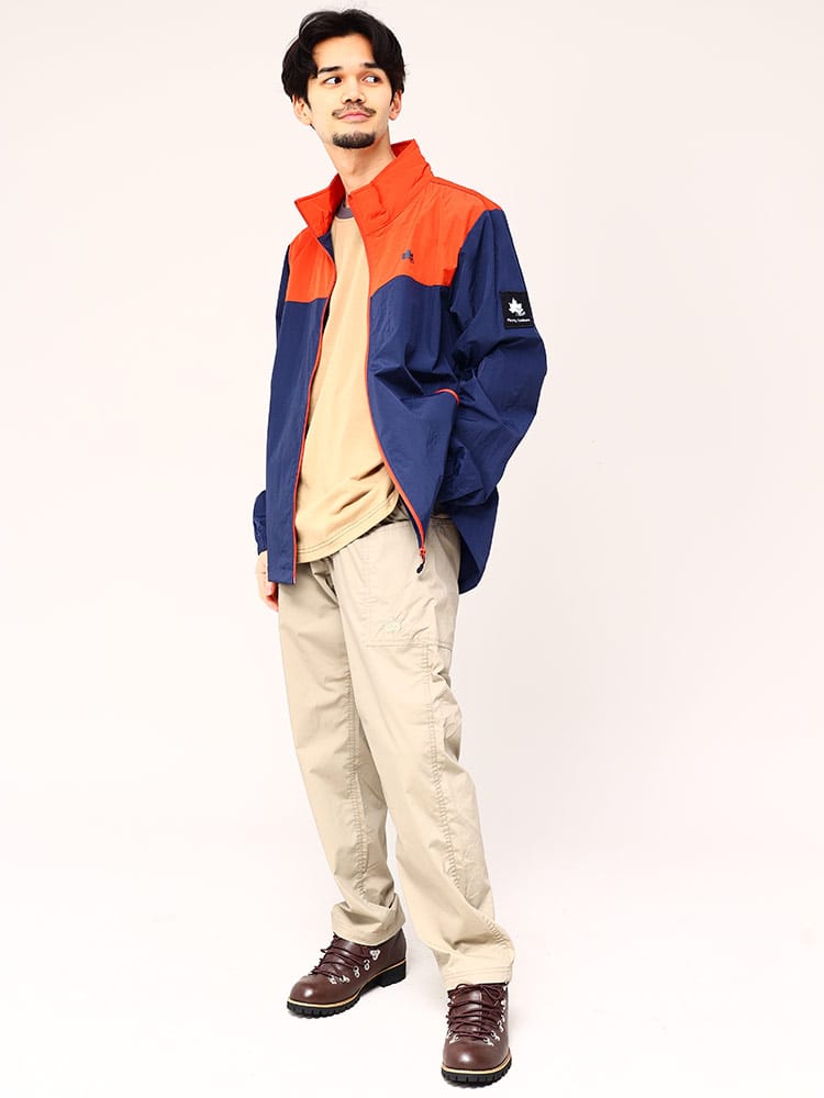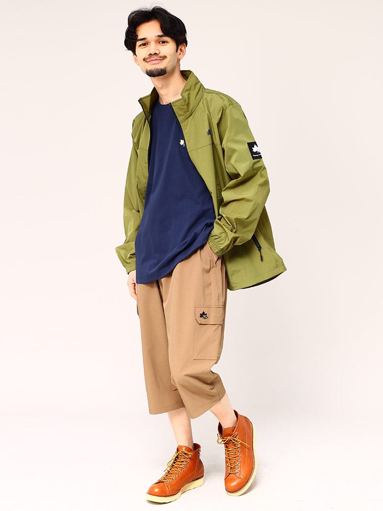 軽くて丈夫な撥水効果のあるナイロン素材を使用、動きやすく着心地の良い着用感。裏メッシュで通気性も良く、これからいの時期に活躍できサラッと羽織れます。左胸のメープルリーフミニロゴがシンプルで、使いやすく幅広く活躍できるアイテムです。胸切り替えの左胸にワンポイントロゴ+左袖にミニBOXロゴが映えるデザイン。普段使いはもちろんですが、登山、ハイキング、ウォーキング、キャンプなどの羽織りアウターとして活躍できるアイテムです。