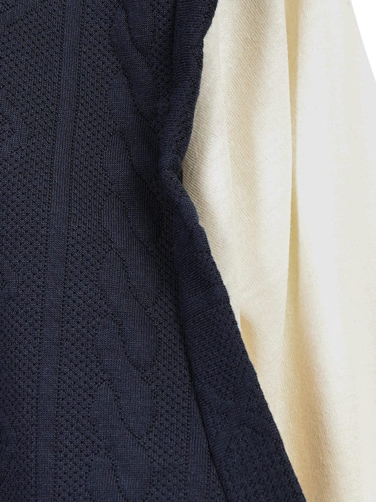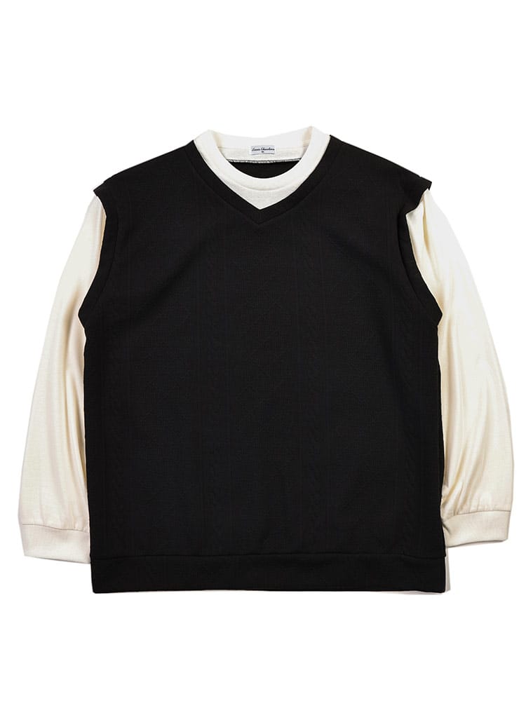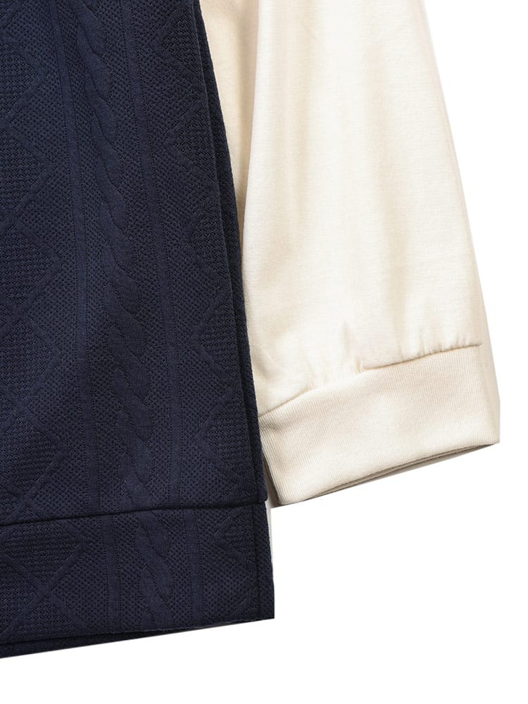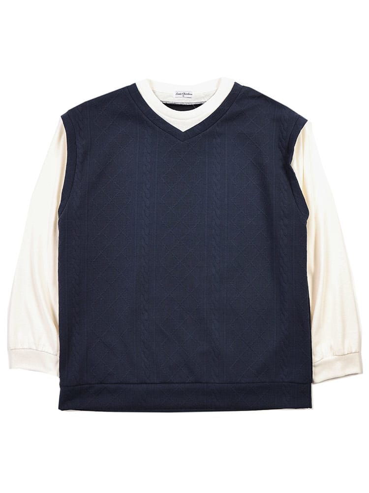 フェイクレイヤードベスト長袖Tシャツは、重ね着風のスタイリッシュなデザインが特徴です。このアイテムは、モノトーンカラーを基調としており、どんなコーディネートにも合わせやすいです。アラン編み風の柄が施されたベスト部分は、視覚的に奥行きを持たせ、上品な雰囲気を演出します。一方、長袖Tシャツ部分はシンプルで快適な素材を使用しており、1枚でおしゃれに決まります。フェイクレイヤードデザインにより、手軽にレイヤードスタイルを楽しむことができ、忙しい日常でも手軽にスタイリッシュな装いを実現します。
