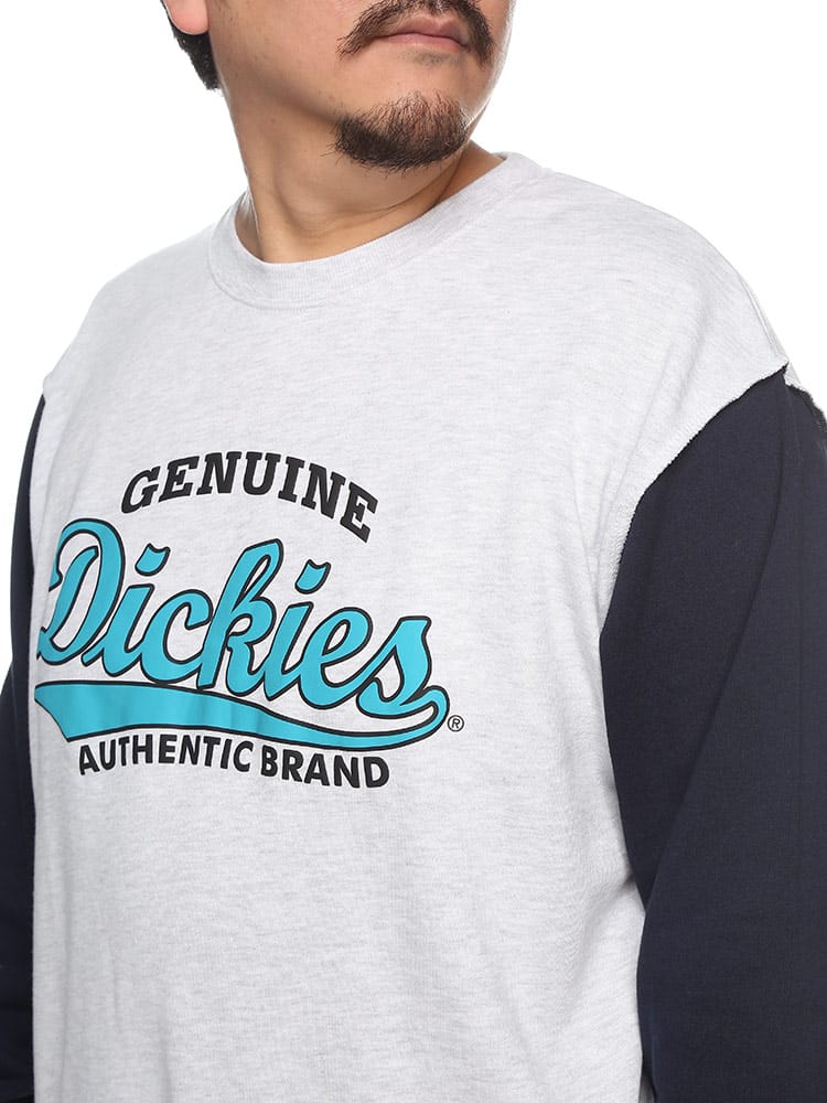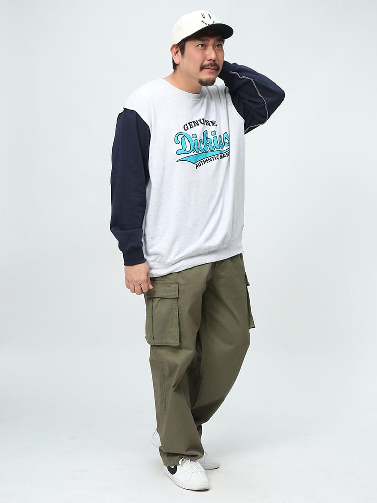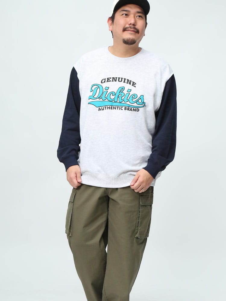GENUINE DICKIESの裏毛裏使い切替BIGロゴプリントクルーネックトレーナーは、スタイリッシュで快適なアパレルアイテムです。裏毛生地は柔らかく、暖かさと快適さを提供し、寒い季節に最適です。裏使い切替デザインは洗練された外観を持ち、ビッグロゴプリントが個性を引き立てます。クルーネック仕様はカジュアルで着やすく、様々なスタイルに合わせやすい特長です。このトレーナーは、ファッションと機能性を融合させた、DICKIESならではの品質とデザインを提供しています。