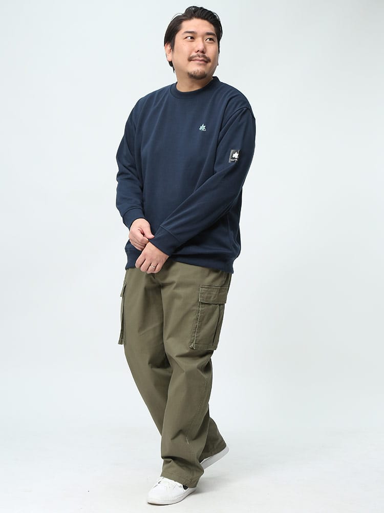 LOGOS Parkのクルーネックトレーナーは、裏毛素材を採用しているため柔らかくとても肌触りのよいアイテムです。胸部分にはワンポイントの刺繍が施されており、さりげないアクセントを加えています。この刺繍は、トレーナーのミニマリスティックなスタイルを引き立てカジュアルな日常着としてはもちろん上品な印象を与えます。活躍の機会は多多くあると思います。