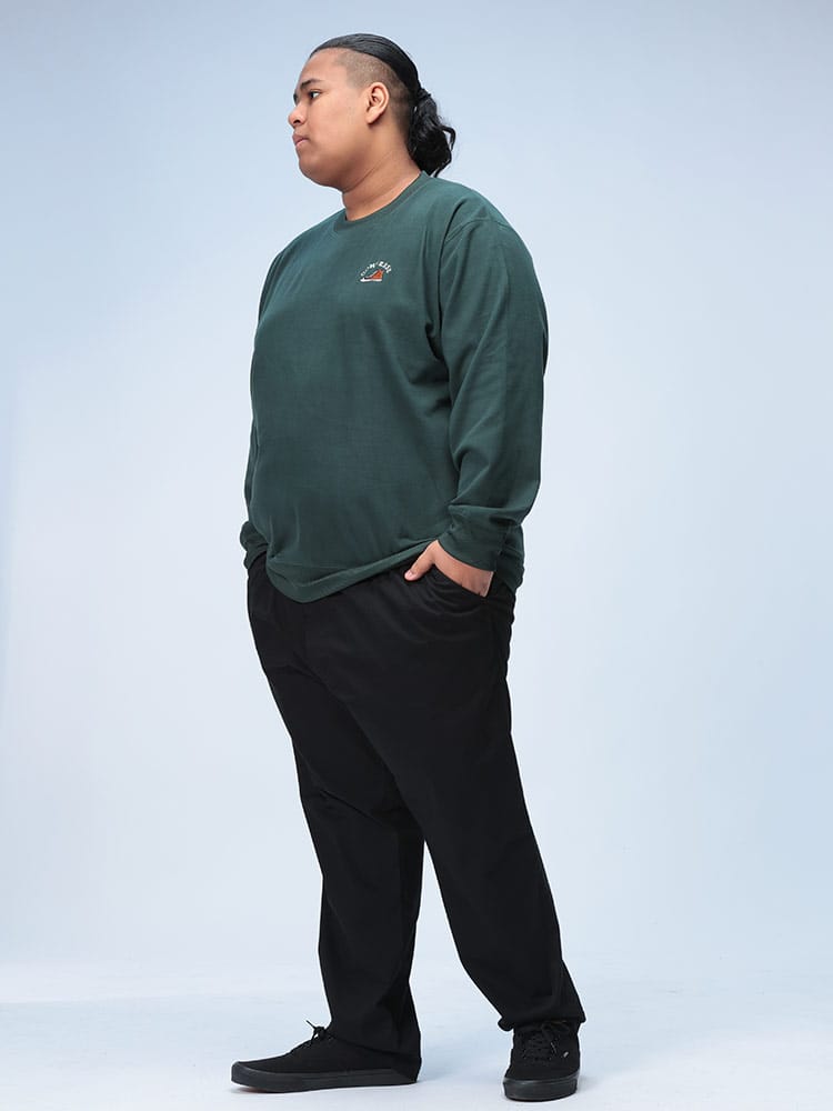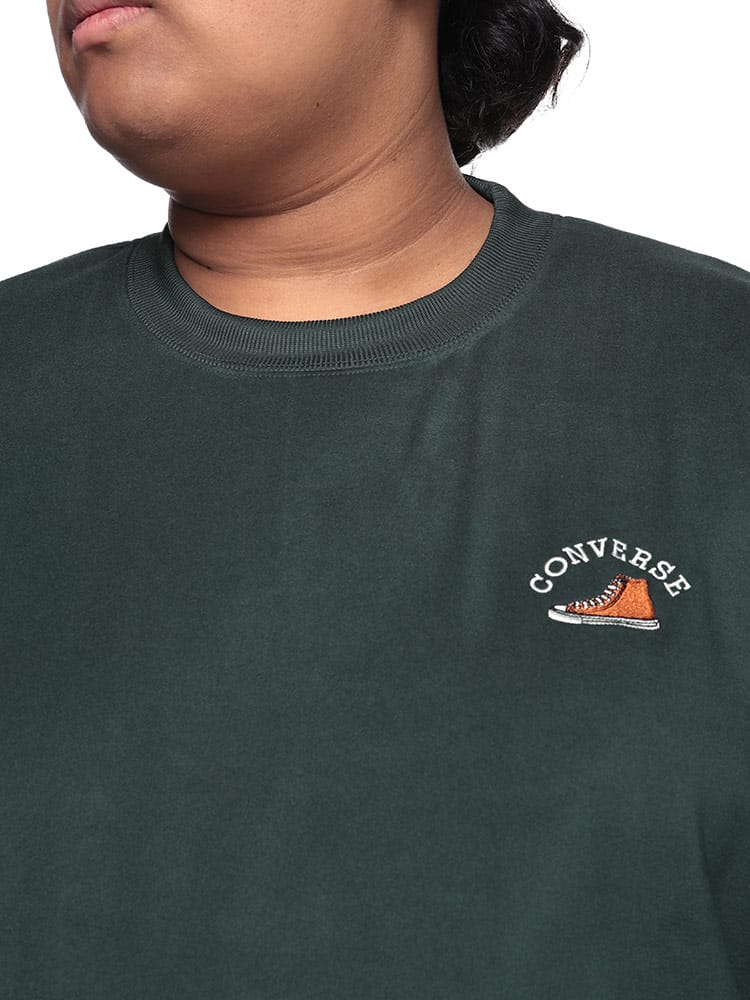 コンバースのロゴが可愛い、着心地抜群のストレッチトレーナー。まるでスニーカーのようなもちもちとした肌触りが特徴です。大きいサイズ展開なので、ゆったりとリラックスして着用できます。伸縮性抜群の素材で、どんな動きにもぴったりフィット。スニーカーの刺繍がアクセントになって、カジュアルなスタイルにぴったり。一枚でもレイヤードスタイルにも◎。寒い冬も暖かく過ごせる、ヘビロテ間違いなしの一枚です。