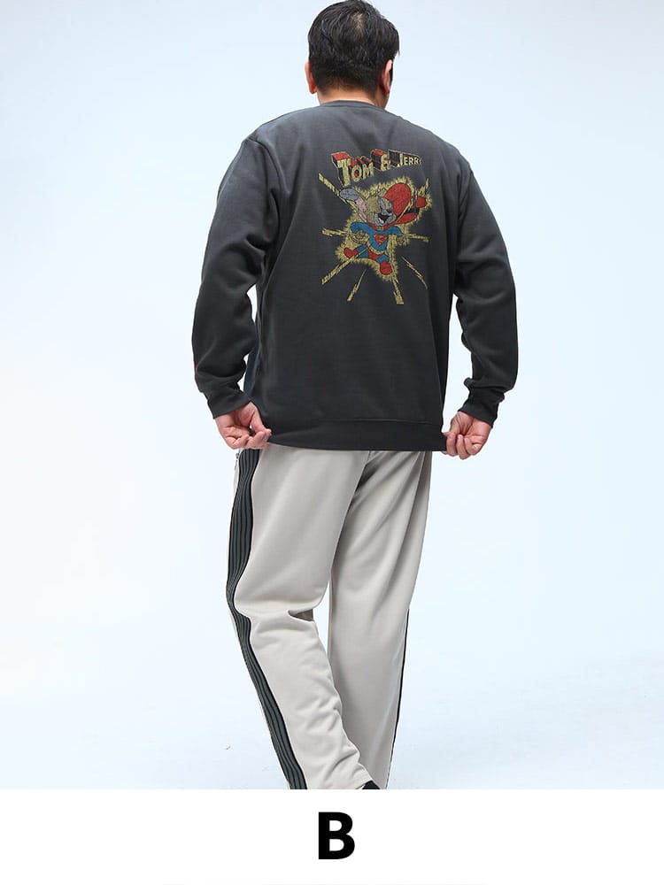 トムとジェリーのコミカルなイラストが目を引く、遊び心満載のトレーナーです。