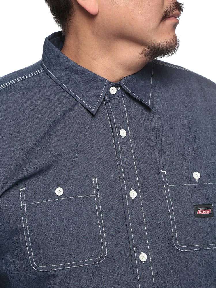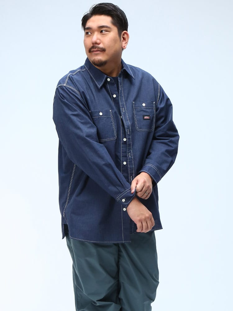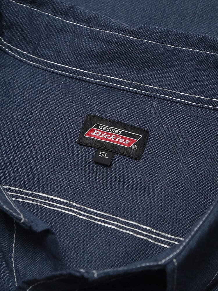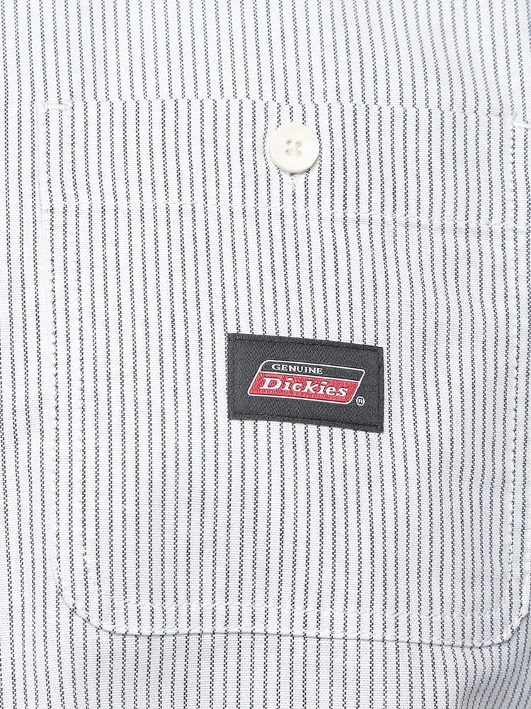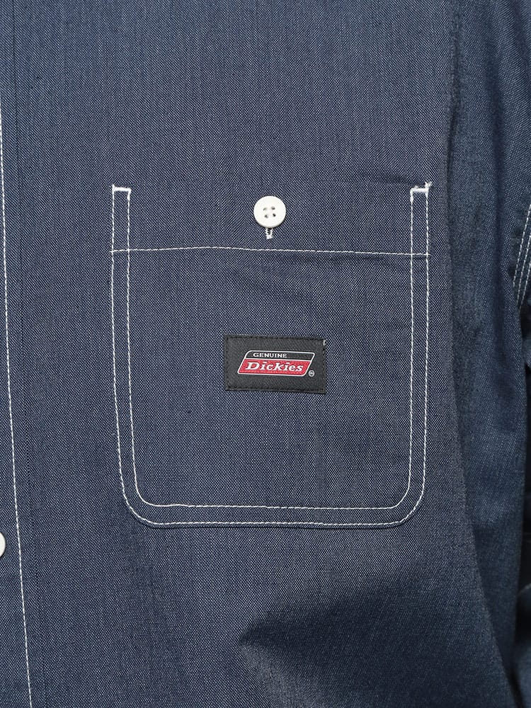 左胸にはDickiesのロゴパッチがワンポイントで入り、ワークウェアらしい無骨なデザインが魅力。