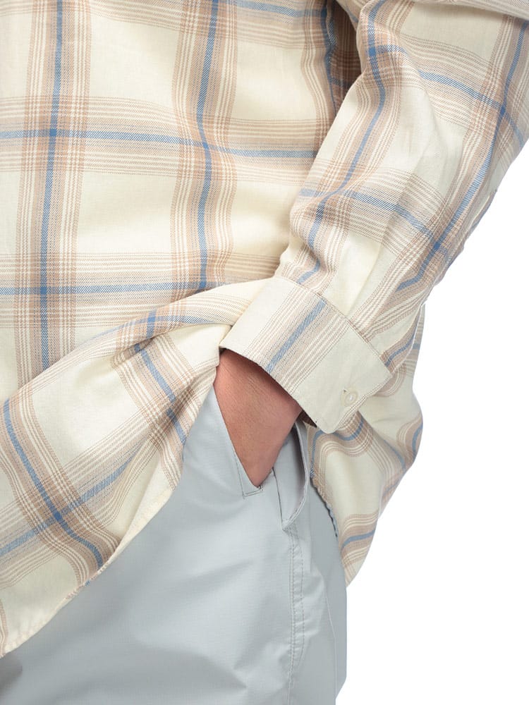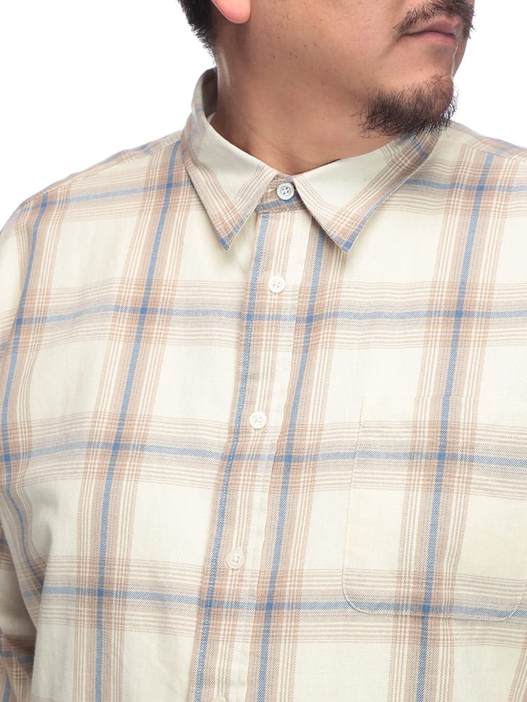 ふんわりとした色合いのオンブレチェック柄が特徴で、さりげなくおしゃれな雰囲気を演出します。