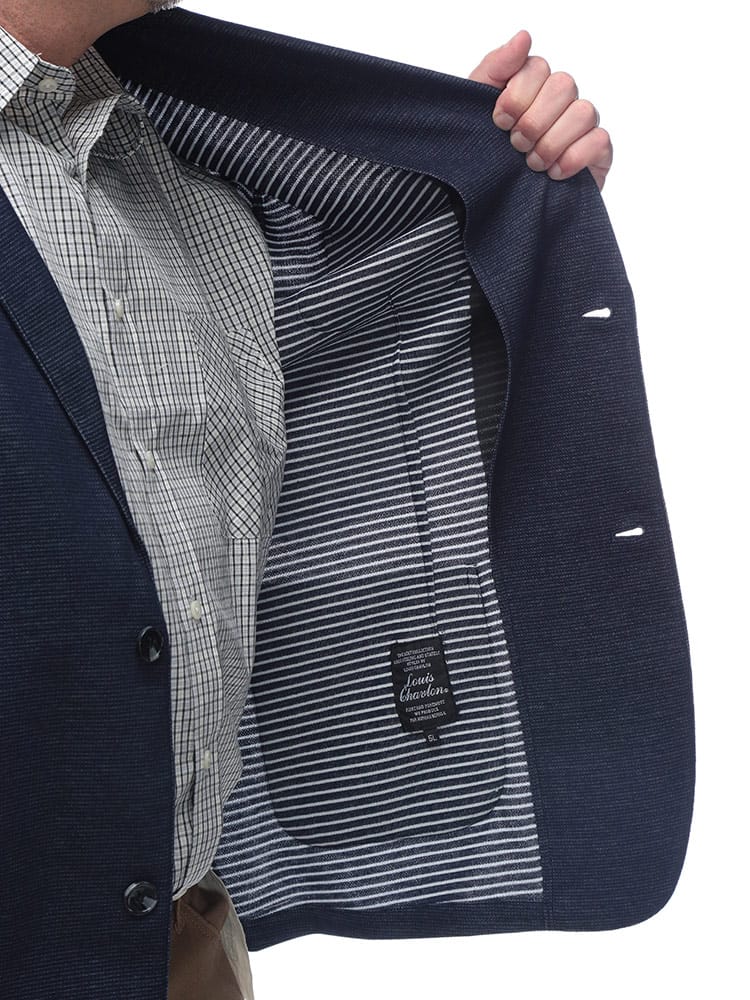 上品な見た目と快適な着心地を両立した、LOUIS CHAVLONのシングルカットジャケット。カットソー素材で仕立てることで、ジャケット特有の堅苦しさを払拭。伸縮性に優れた柔らかな生地感が、ストレスフリーな着心地を実現します。かっちりしすぎず、ラフに着こなせるため、デイリーユースに最適です。さらに、ちらりと覗く裏地のボーダー柄が、さりげない遊び心をプラス。袖をまくってボーダー柄を見せれば、こなれ感のある着こなしが完成します。秋のワードローブに欠かせない、洗練された大人のカジュアルスタイルを演出する一着です。パンツを選ばない汎用性の高さも魅力。スマートな着こなしが楽しめます。