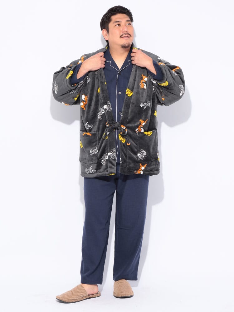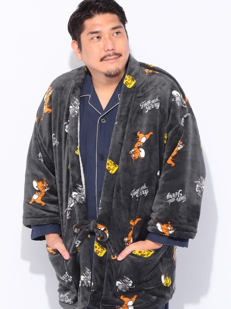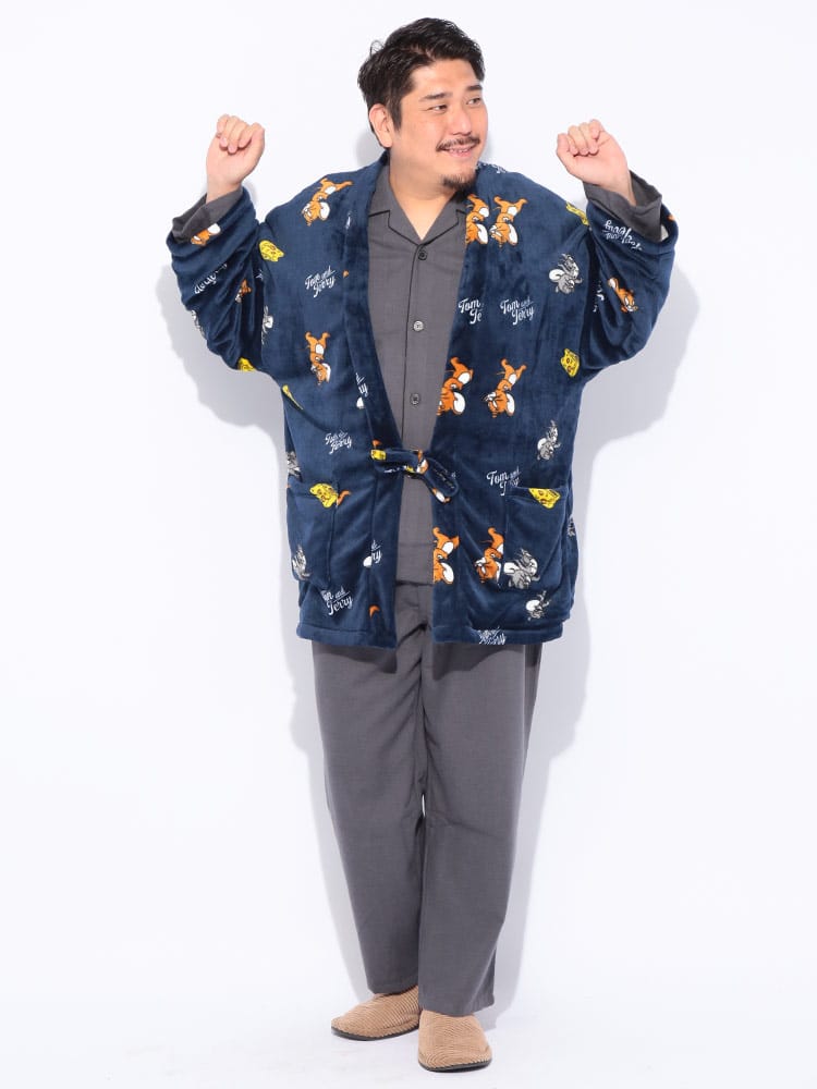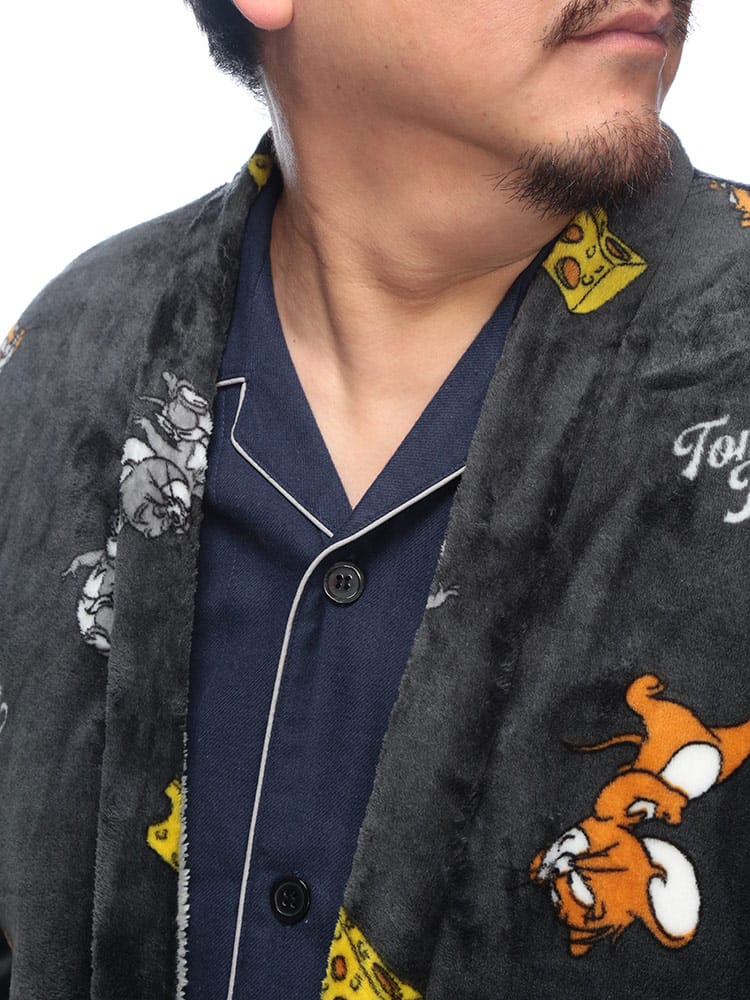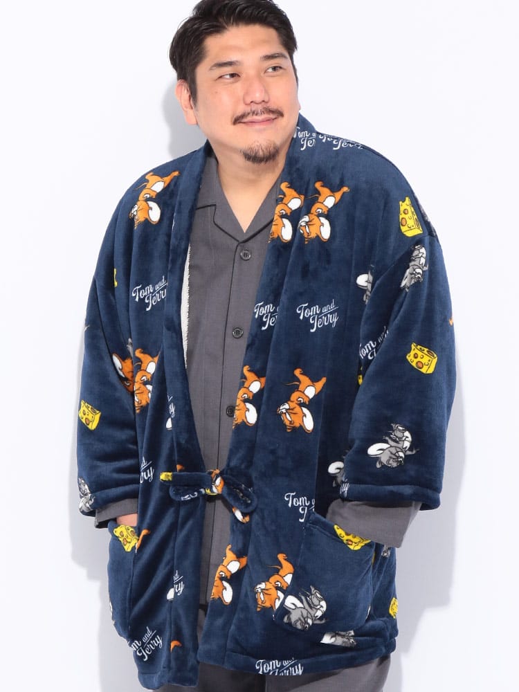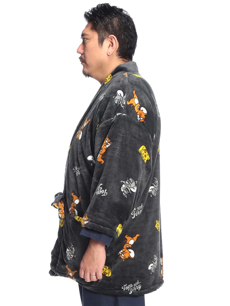 人気キャラクタートムとジェリーの楽しげな総柄をデザインした、遊び心あふれる裏ボア半纏。ふんわりと柔らかな裏ボア素材が、まるで毛布に包まれているような抜群の温もりと着心地を提供します。冷え込む季節の部屋着や防寒着として最適。かわいらしいデザインで、おうち時間を楽しく、暖かく過ごしたい方にぴったりのアイテムです。