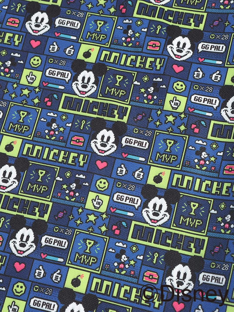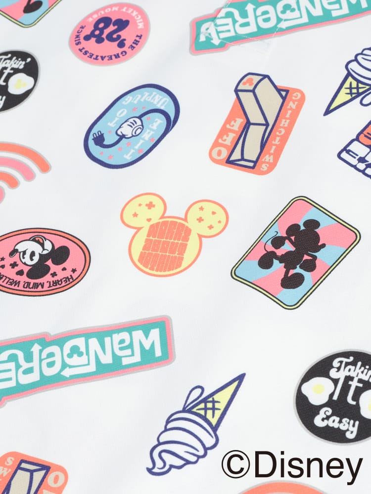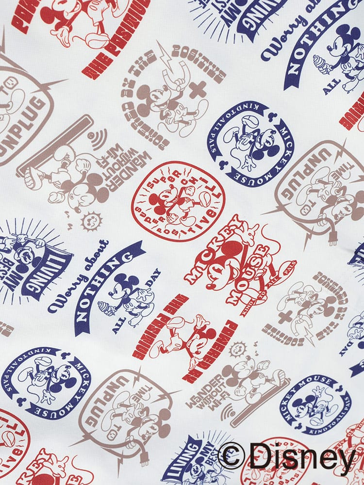 ・総柄グラフィック: 『ミッキーマウス』のデザインや、ヴィンテージ感のあるロゴを全面に配した、遊び心あふれるデザイン。