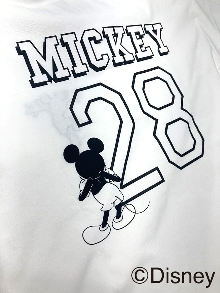 ・バックナンバリング: 胸元にワンポイント、背中には「MICKEY 28」のナンバリングを大胆にプリント。