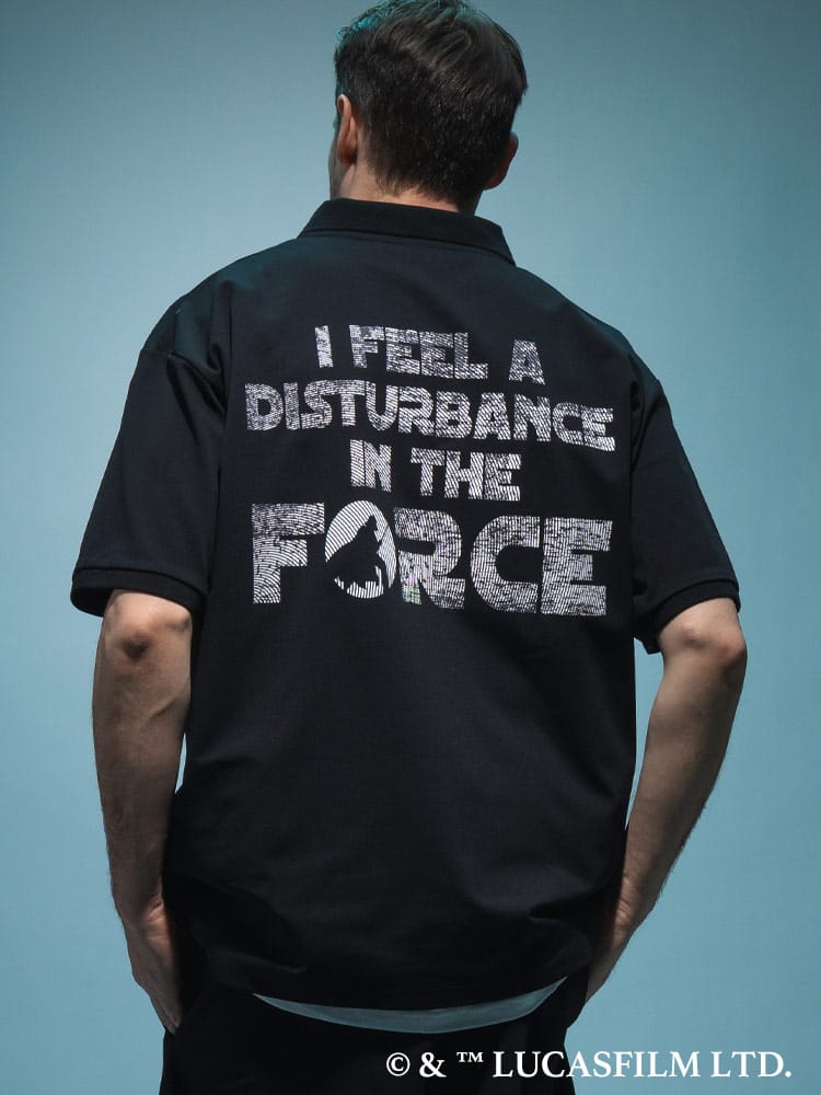 フロントの左胸には『STAR WARS』のロゴが刺繍され、バックには映画の台詞「I FEEL A DISTURBANCE IN THE FORCE」をプリント。