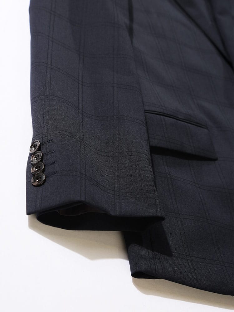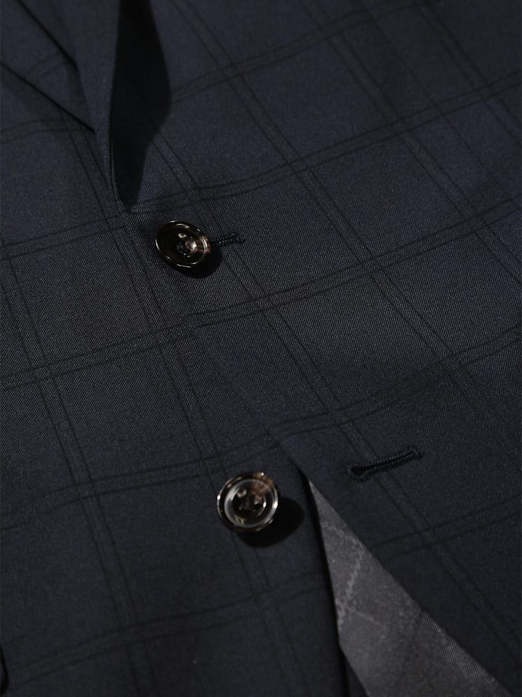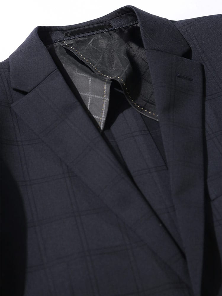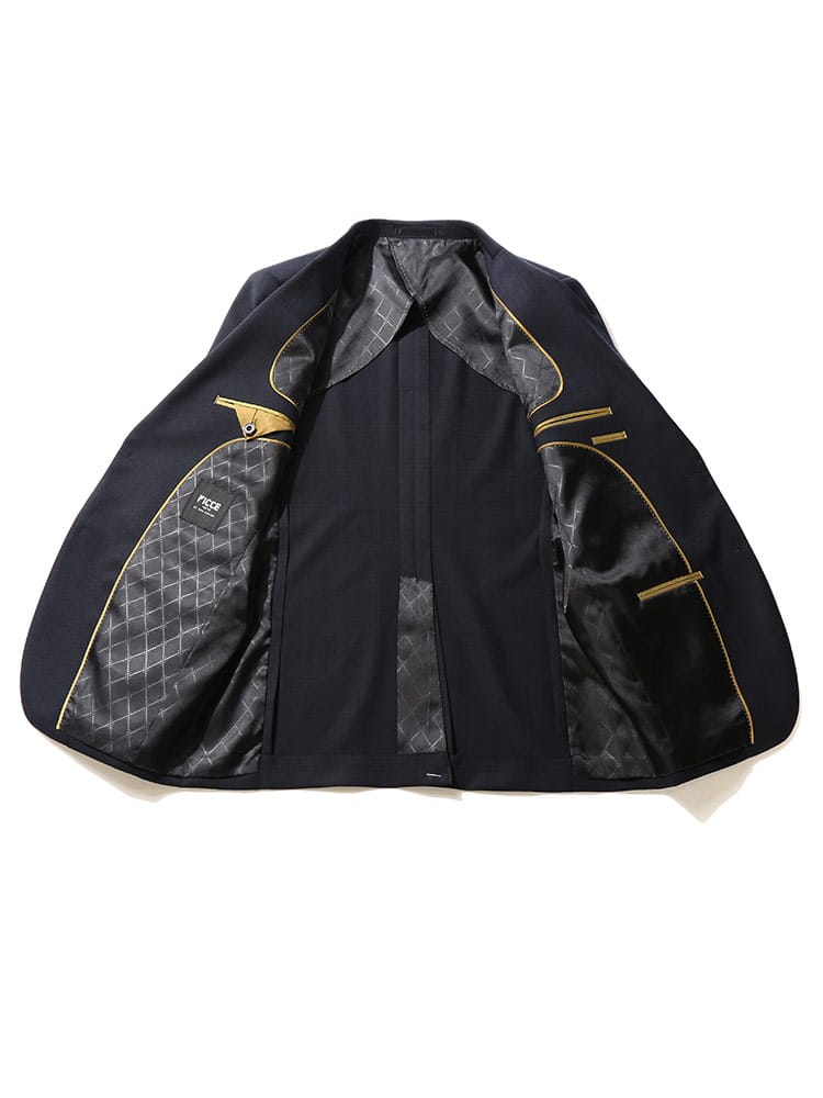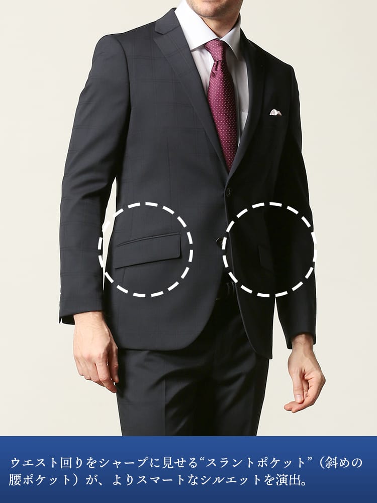 仕様 :外側ポケット数×9つ / 内側ポケット数×4つ / シングル2つボタン / セッパタイプ / 額縁あり / 背抜き / センターベント / ジップフライ / ノータック / ローライズパンツ / 抗ウイルス加工ポケット裏地