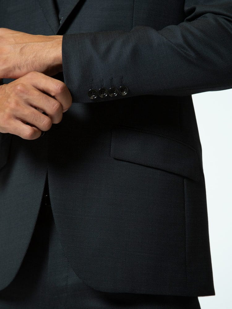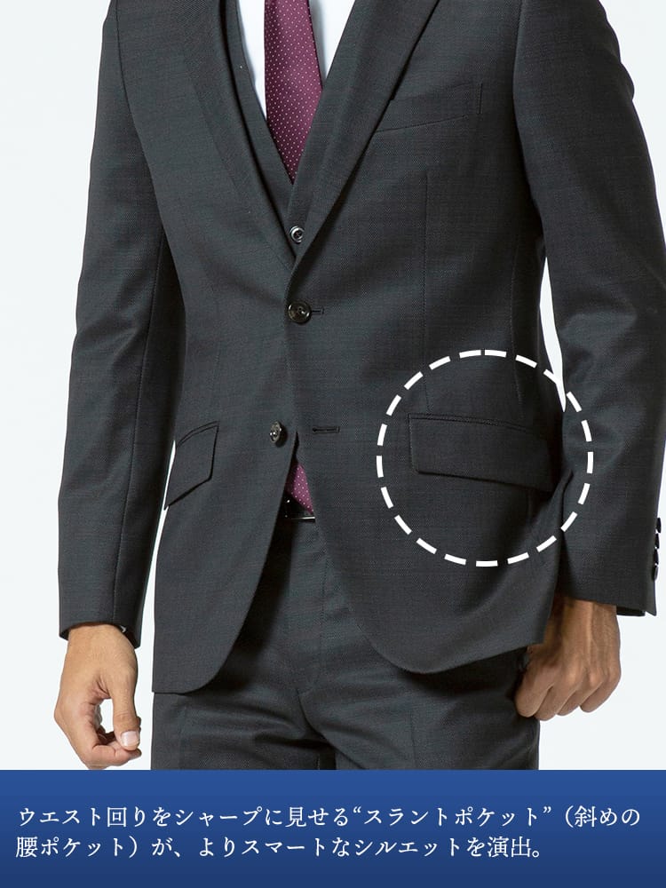 仕様 :ジャケット外側ポケット数×3つ / 内側ポケット数×4つ / シングル2つボタン / 総裏 / セッパタイプ / 額縁あり / センターベント / ベスト外側ポケット×2つ / パンツ外側ポケット数×4つ / ジップフライ / ノータック / 抗ウイルス / ローライズパンツ